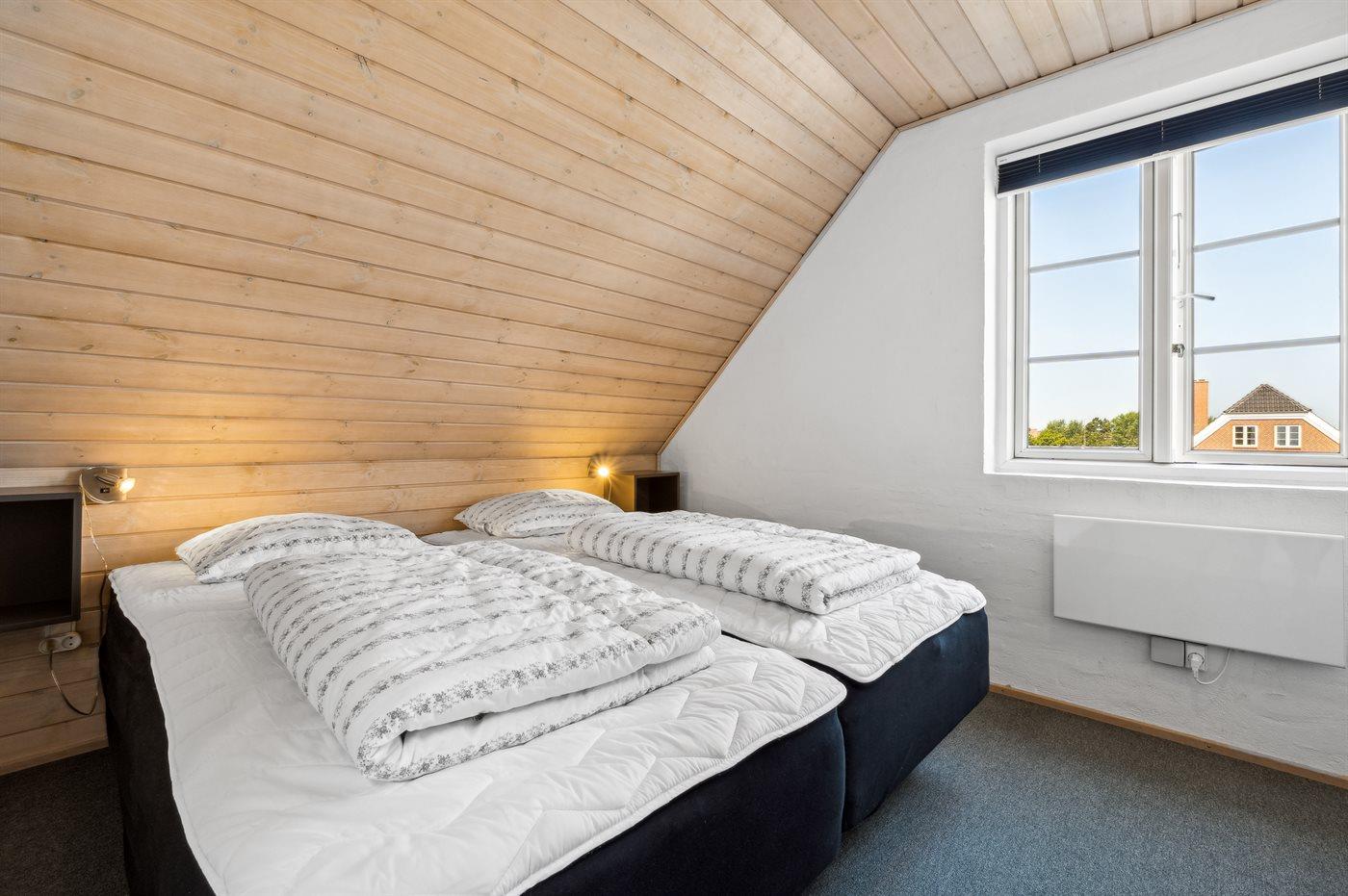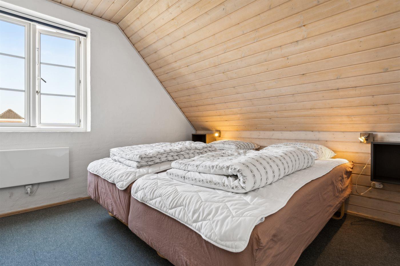 Herudover er der på førstesalen 3 værelser med 2 sovepladser (boksmadrasser) i hver. Der er også en tremmeseng til et mindre barn. Værelserne på førstesalen opvarmes med elradiatorer.