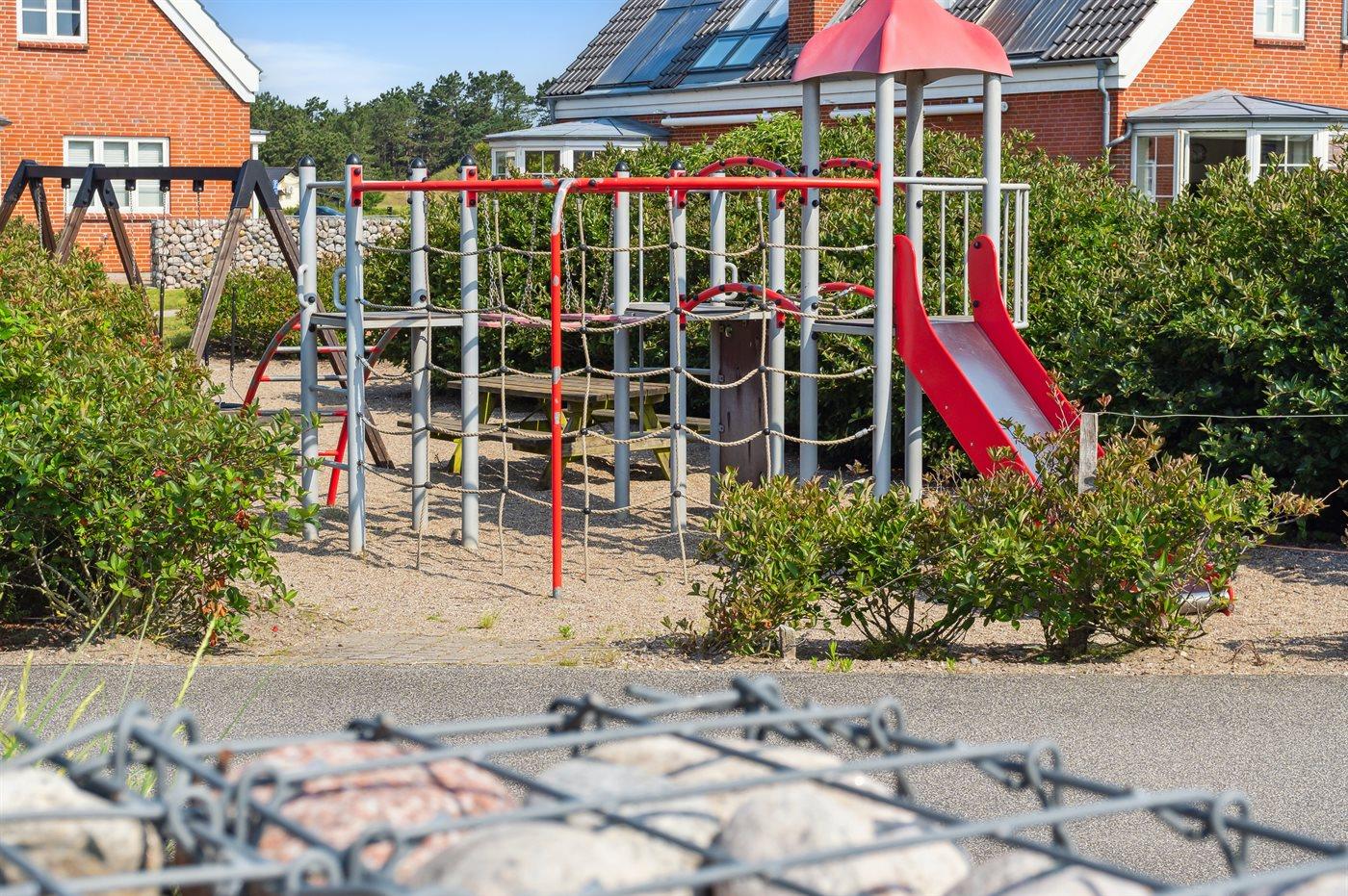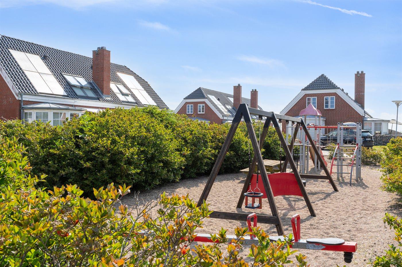 Fælles legeplads til børnene er lige ved siden af huset.