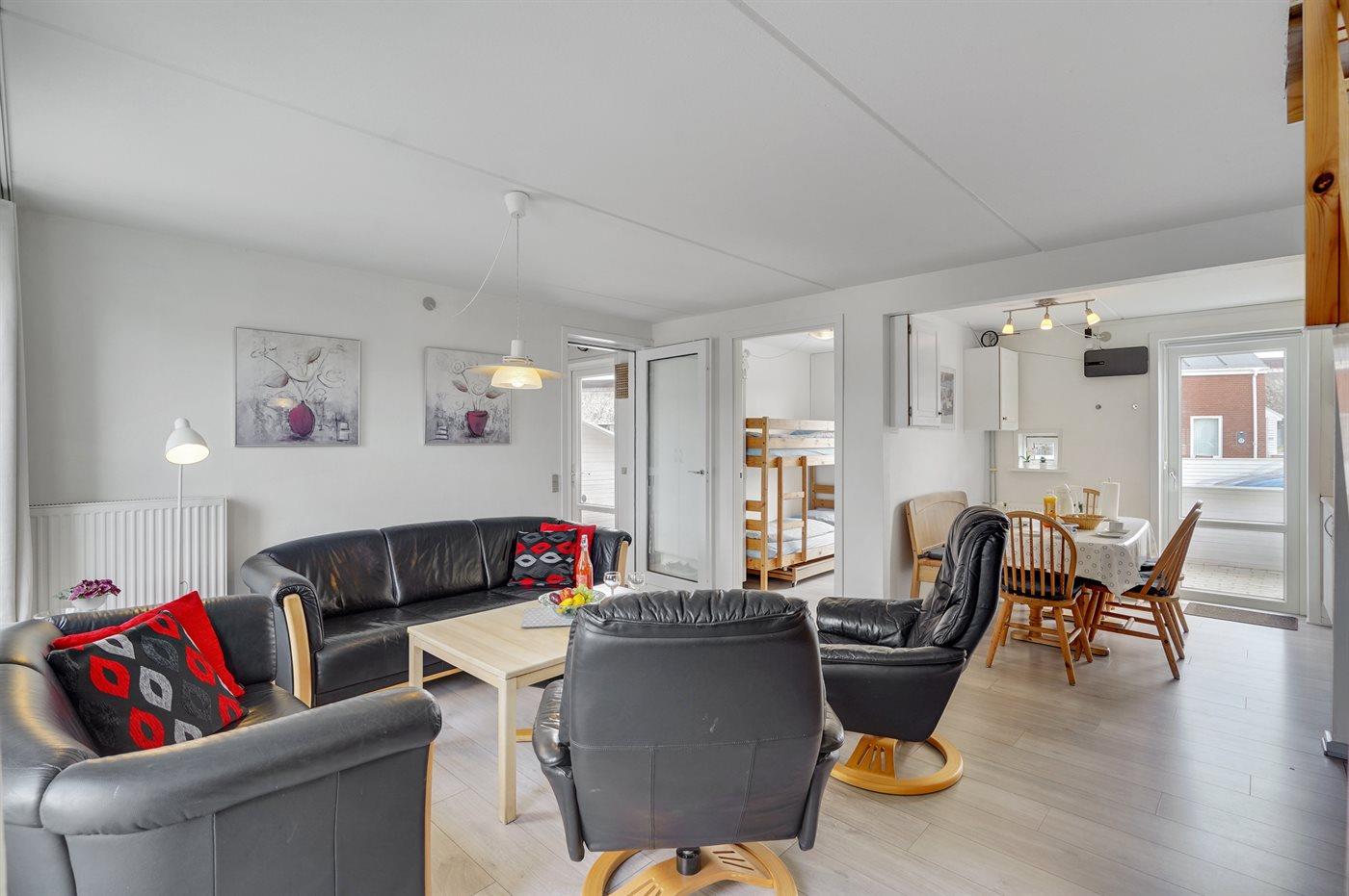 Der er i alt 3 soveværelser. Sovepladserne fordeler sig på: 4 sovepladser i dobbeltsenge. 2 sovepladser i køjeseng. Derudover er der 1 stk. barneseng.