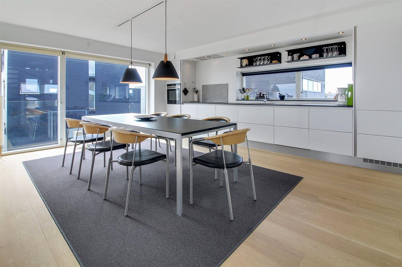 Køkkenet er udstyret med 1 køleskab. Der er 4 induktionskogeplader, varmluftovn, mikrobølgeovn samt opvaskemaskine.