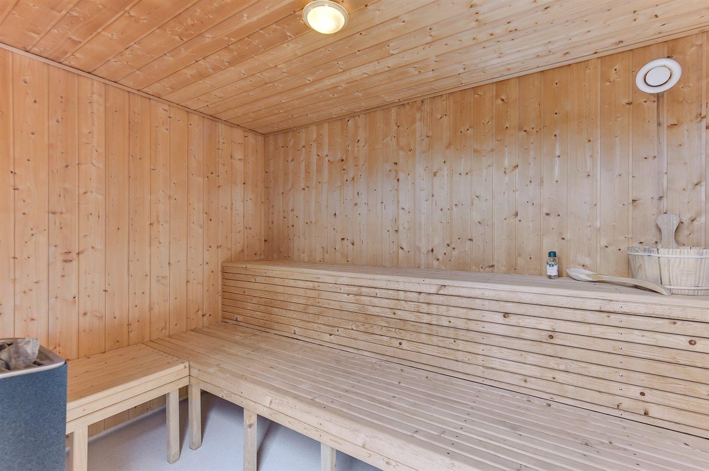 Til huset hører en delvist afskærmet/overdækket tagterrasse, hvorfra der er adgang til en sauna samt en højisoleret, 6-pers. udendørs spa og en udebruser – begge dele kan benyttes året rundt. Desuden er huset opført som et helårshus, og er dermed velegnet for ophold på alle årstider. Opvarmning sker med fjernvarme.
