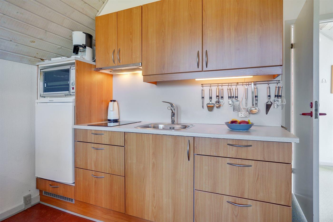 Køkkenet er udstyret med 1 køleskab. Der er 2 keramiske kogeplader, varmluftovn, mikrobølgeovn.