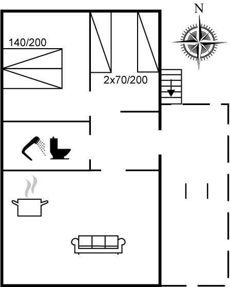 Der er i alt 2 soveværelser. Sovepladserne fordeler sig på: 2 sovepladser i dobbeltseng. 2 sovepladser i enkeltsenge.
