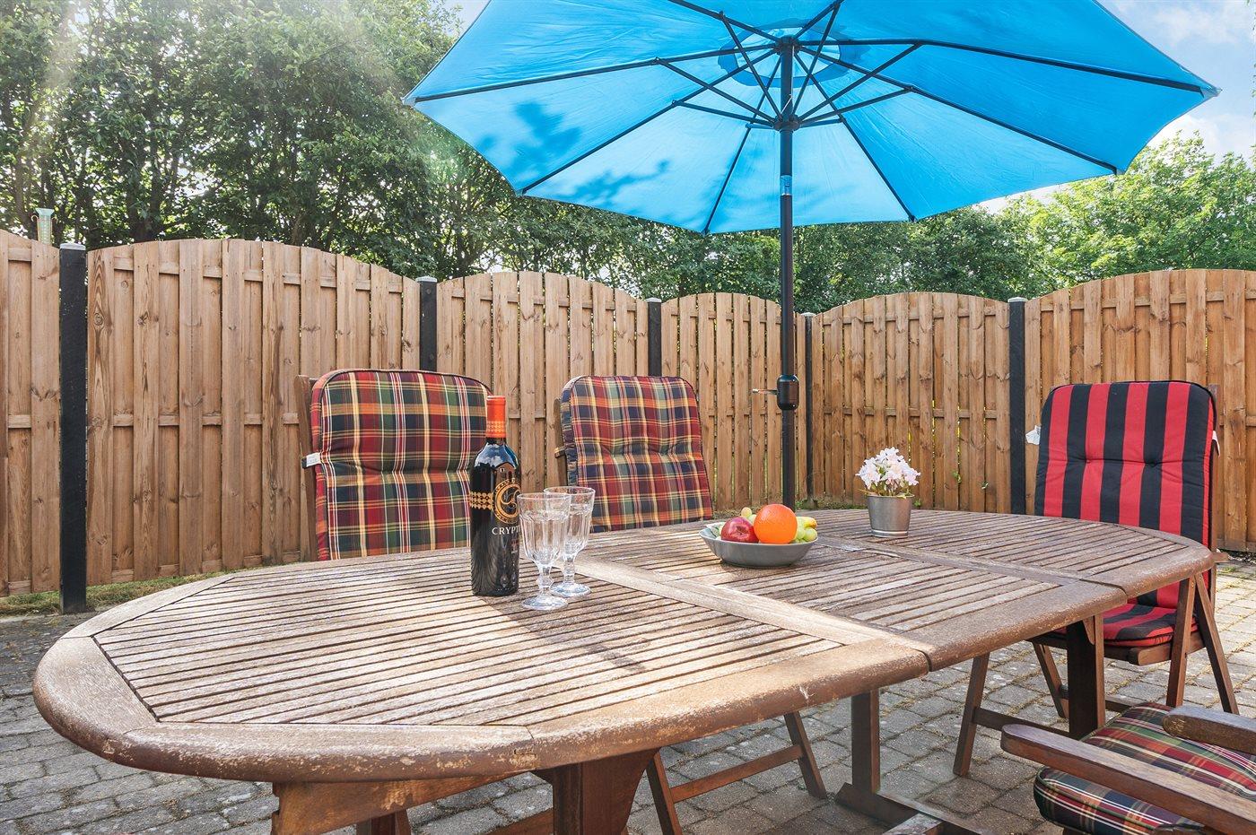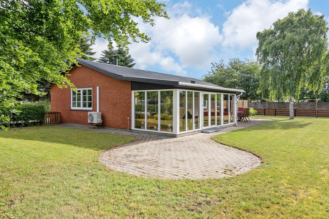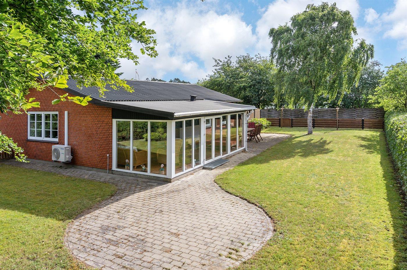 Ikke langt fra stranden og havnen ligger dette dejlige sommerhus. Huset ligger på en flot, lukket grund – perfekt til familier med små børn og husdyr. Bemærk, at de 2 sovepladser på sofaen befinder sig i udestuen.