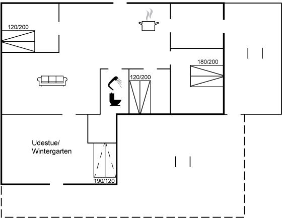 Der er i alt 3 soveværelser. Sovepladserne fordeler sig på: 6 sovepladser i enkeltsenge. 2 sovepladser i sovesofa (dobbelt). Derudover er der 1 stk. barneseng.