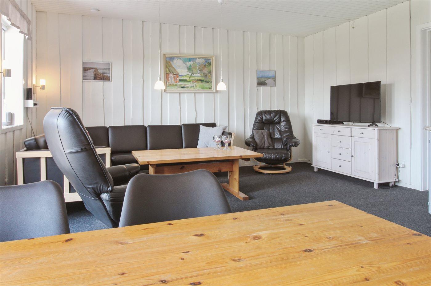Til lejligheden hører en delvis overdækket og afskærmet terrasse med havemøbler og grill. Fra stuen og terrassen er der havudsigt, hvor man bl.a. kan se færgen til Sild. Indvendig er væggene beklædt med træ. Badeværelse er med bruseniche. Køkkenet er bl.a. udstyret med mikrobølgeovn, opvaskemaskine og fryser. I opholdsstuen, hvorfra der er adgang til husets terrasse, finder I stereoanlæg med CD-afspiller, DVD-afspiller og 40” TV. X-box med tilhørende spil. Desuden er der gratis, trådløs internetforbindelse til rådighed. Sovepladserne fordeler sig på 2 værelser; 1 med dobbeltseng og 1 med køjeseng og 1 enkeltseng.