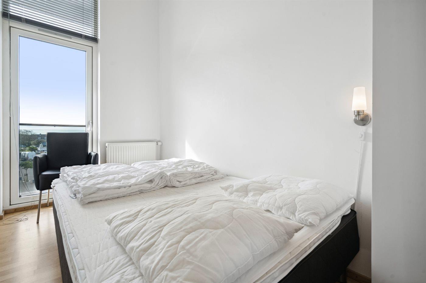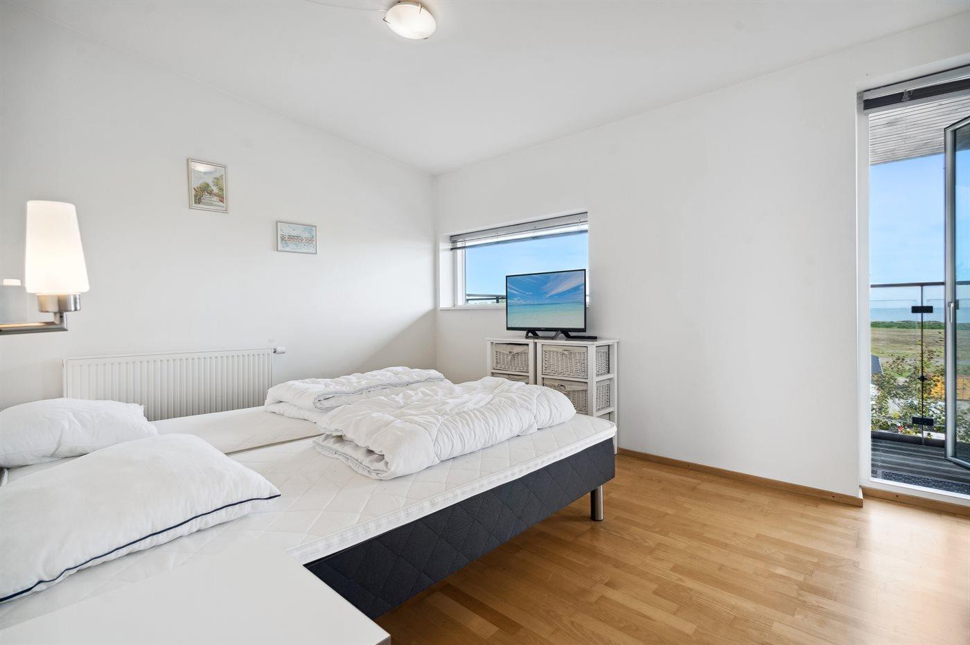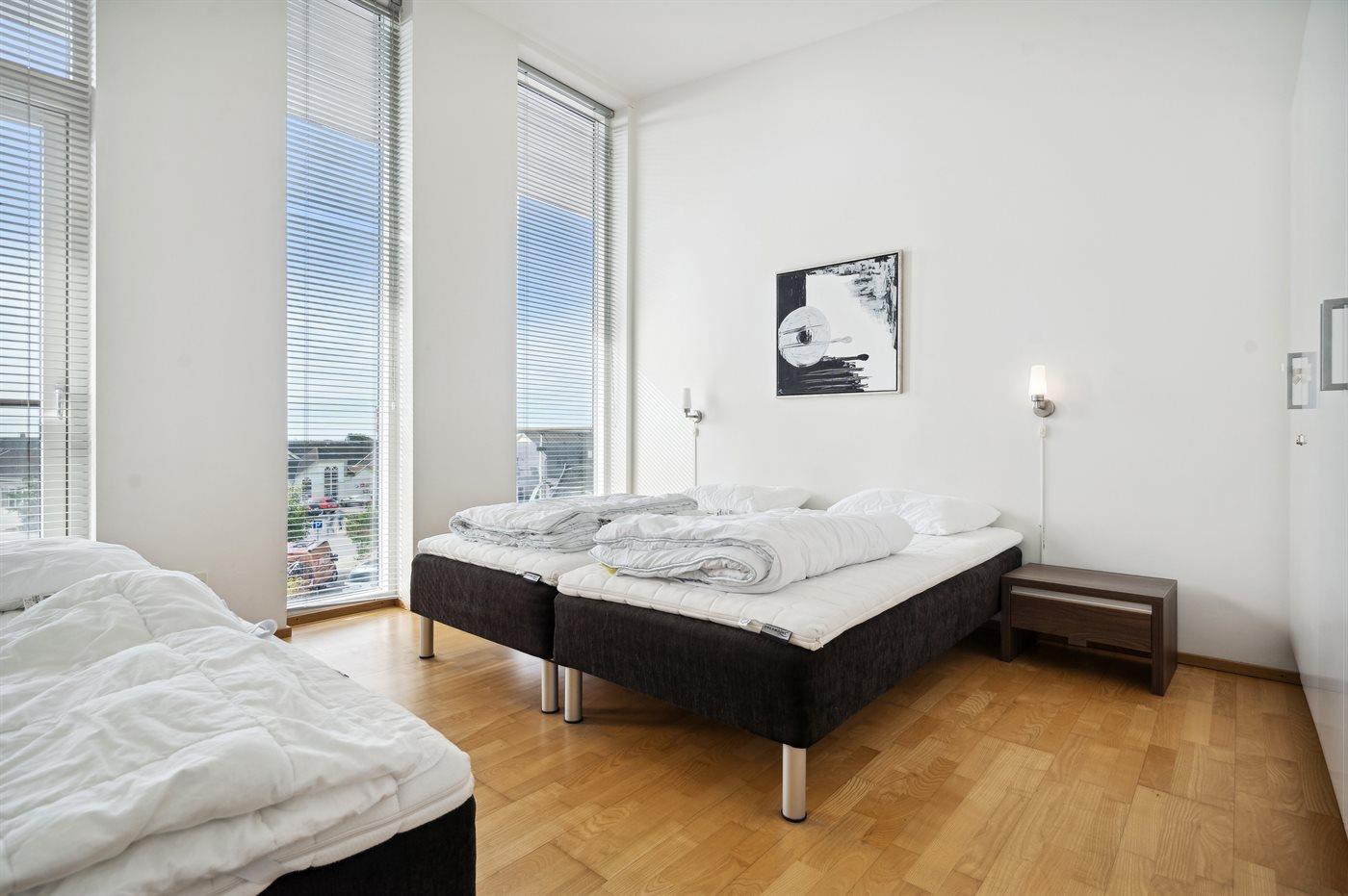 Der er i alt 3 soveværelser. Sovepladserne fordeler sig på: 6 sovepladser i dobbeltsenge. 1 soveplads i enkeltseng. Derudover er der 1 stk. barneseng.