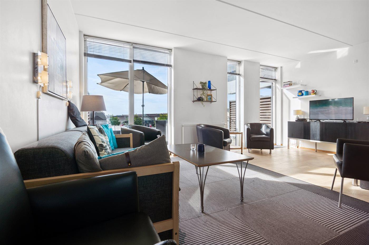 En flot indrettet og velholdt ferielejlighed med en fantastisk udsigt over vandet.