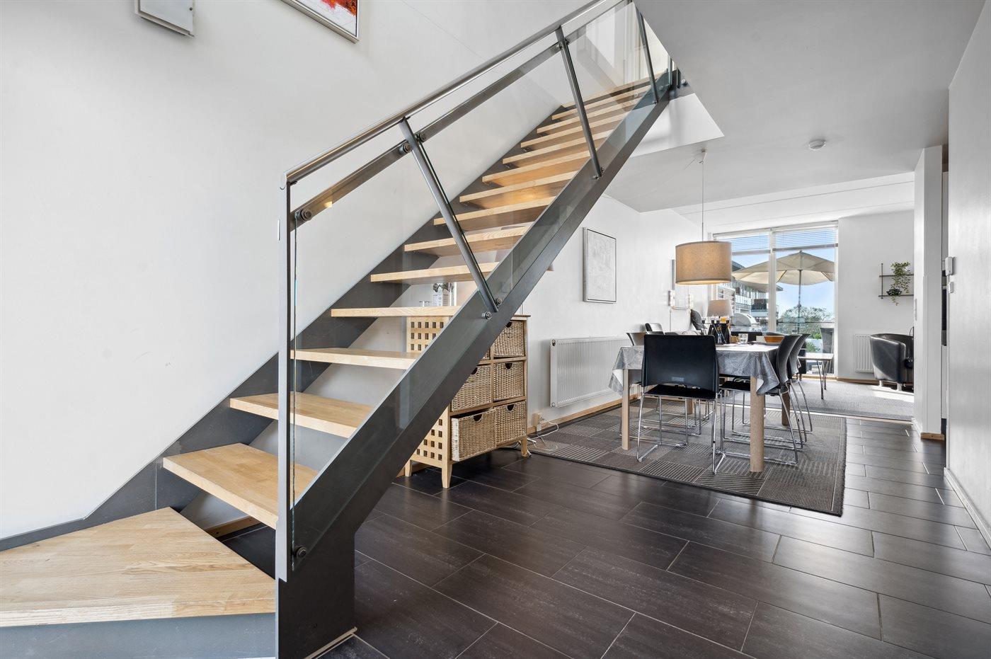 Der er 2 badeværelser med bruseniche og 2 toiletter. Der er gulvvarme på 2 badeværelser.