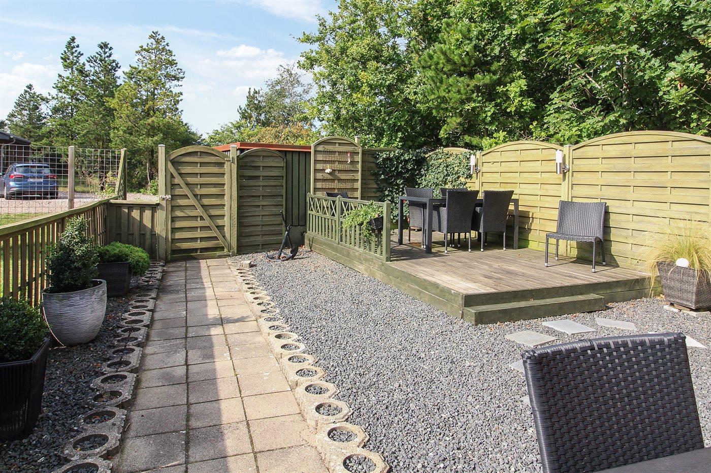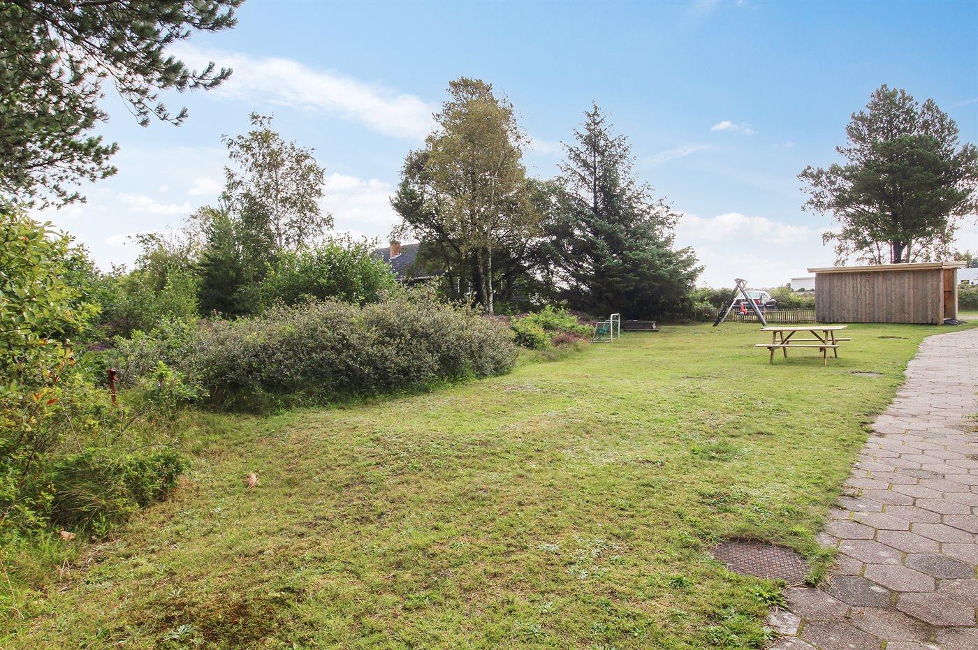 Ferieboligen er beliggende på en 506 m² stor naturgrund. Der er 3900 m til havet. Der er 300 m til Vadehavet. Nærmeste forretning er beliggende i en afstand af 1000 m. Til ferieboligen hører 40 m² terrasseareal. Der er redskabsrum. Gynge. Sandkasse. Parkering ved ferieboligen.