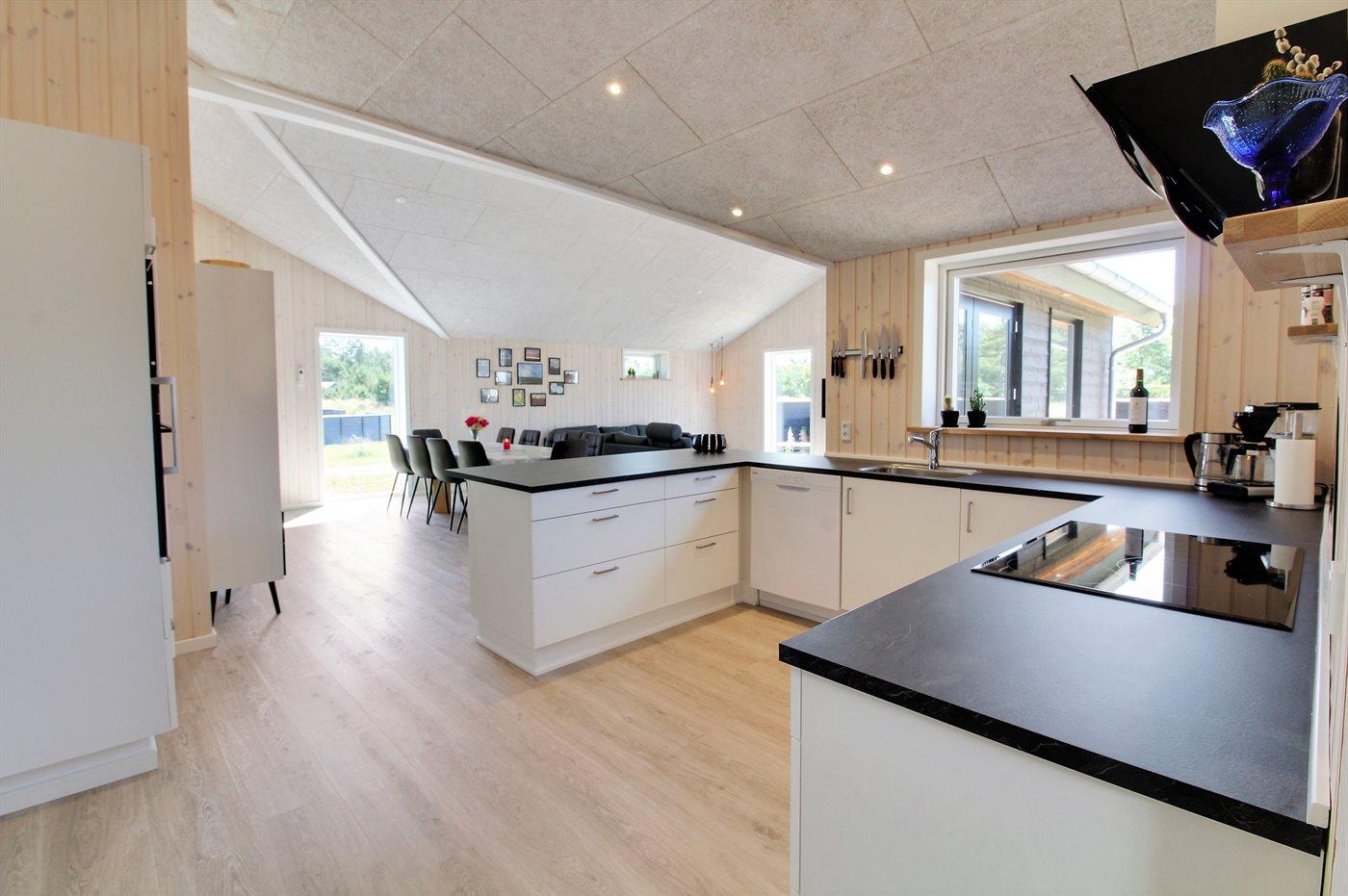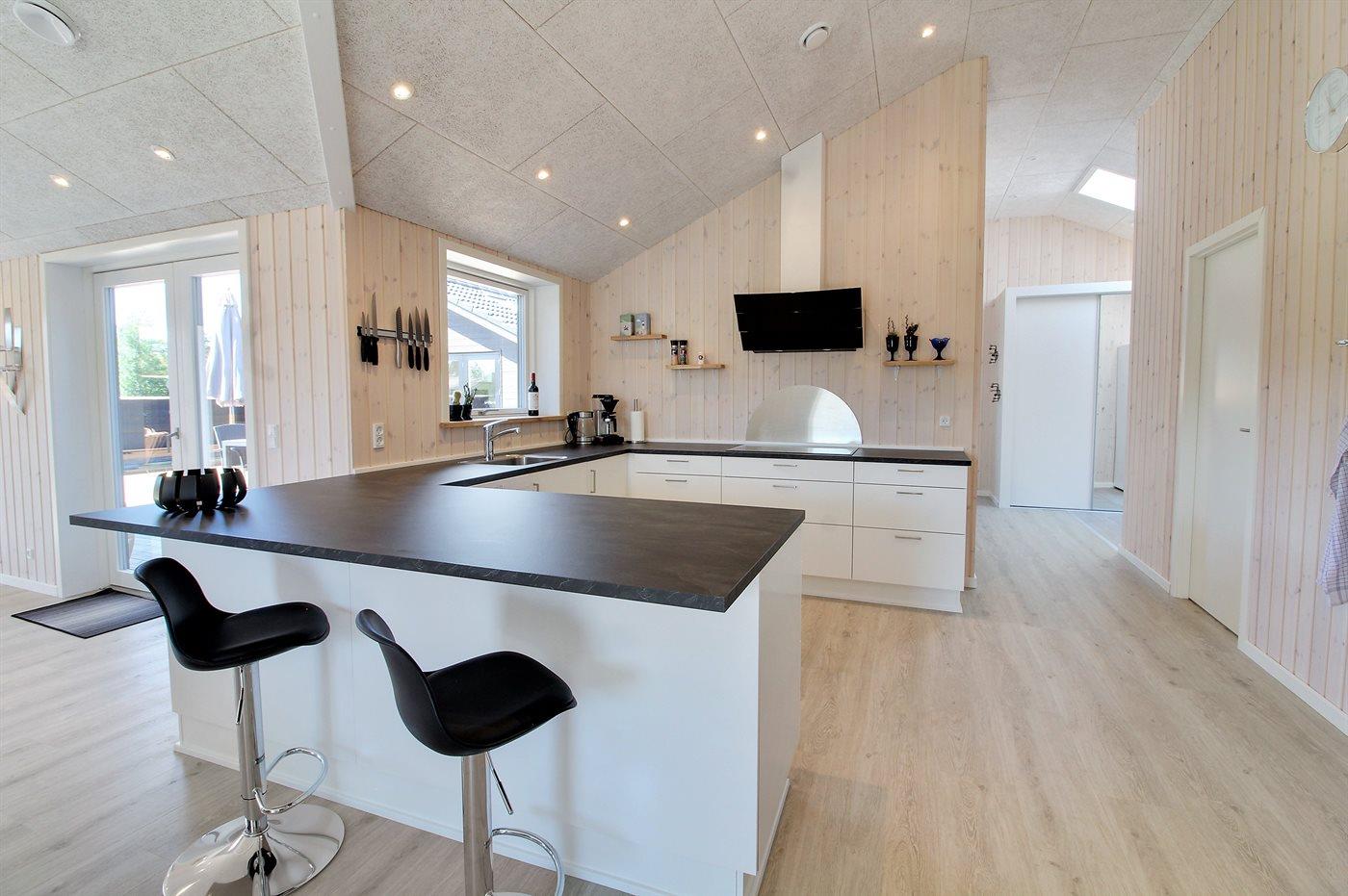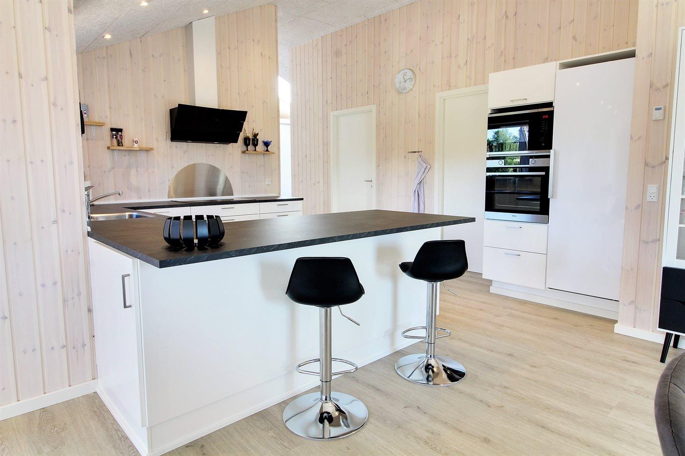 Køkkenet er udstyret med 1 køleskab. Der er 4 induktionskogeplader, varmluftovn, mikrobølgeovn samt opvaskemaskine.