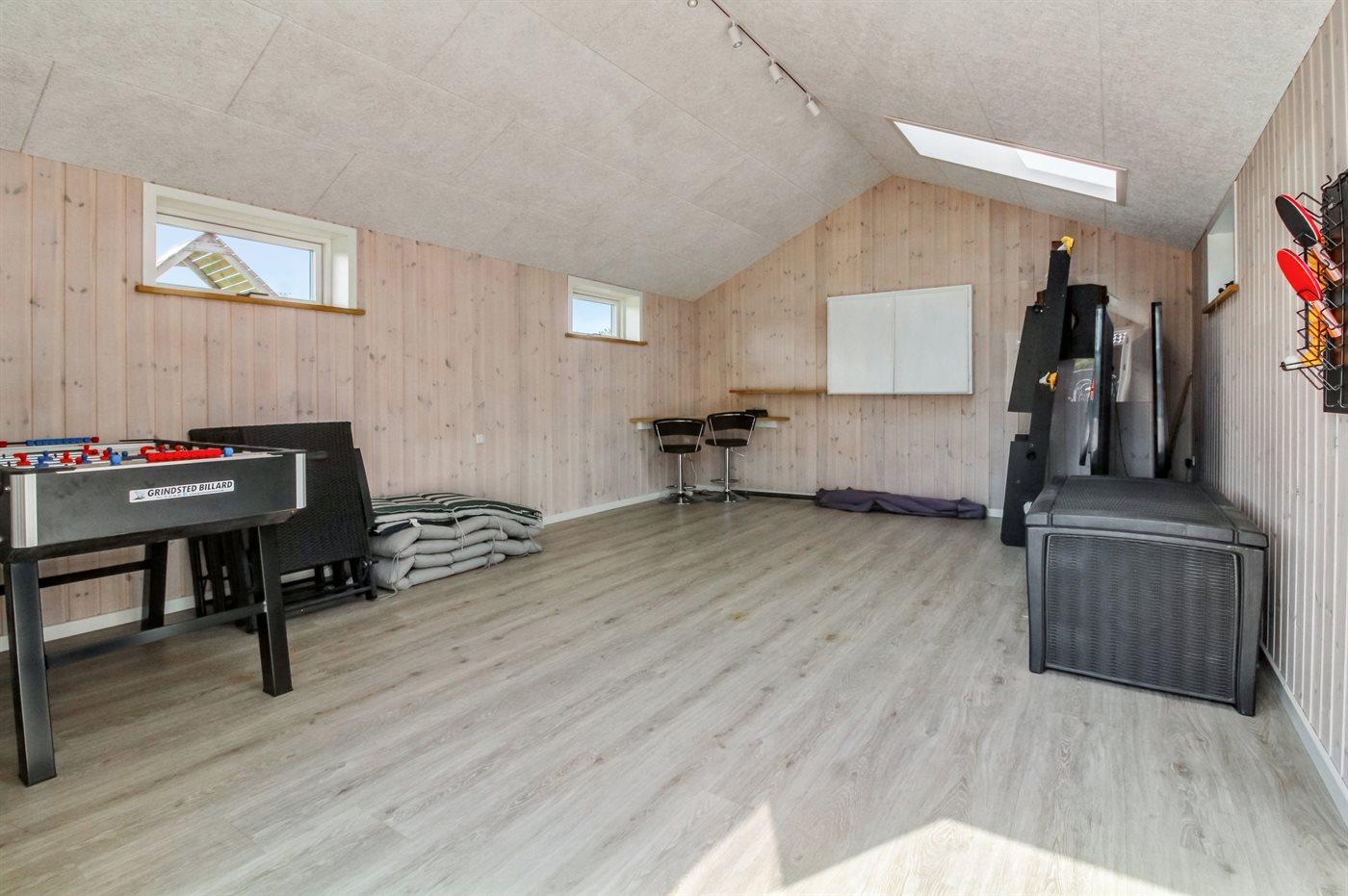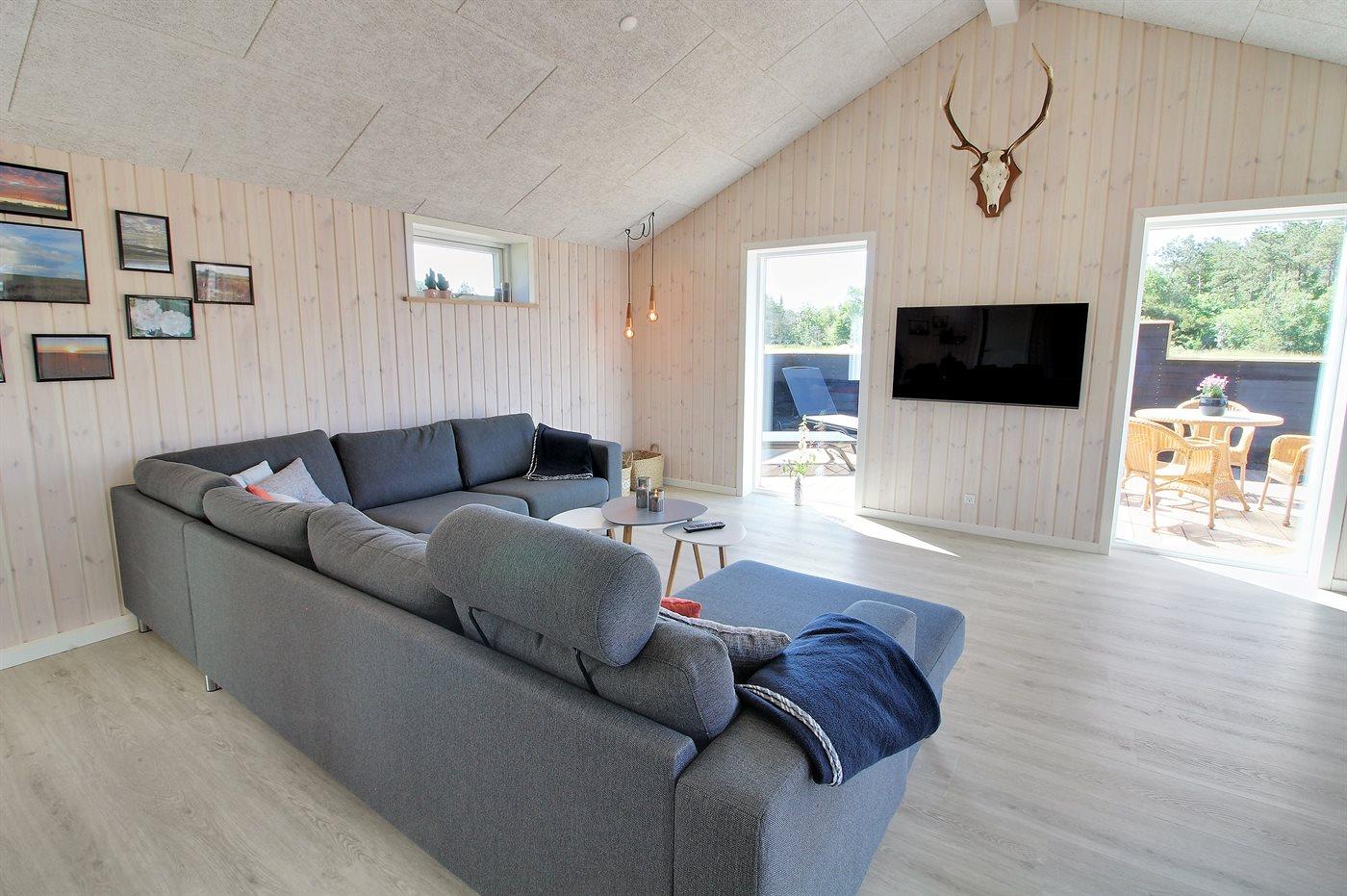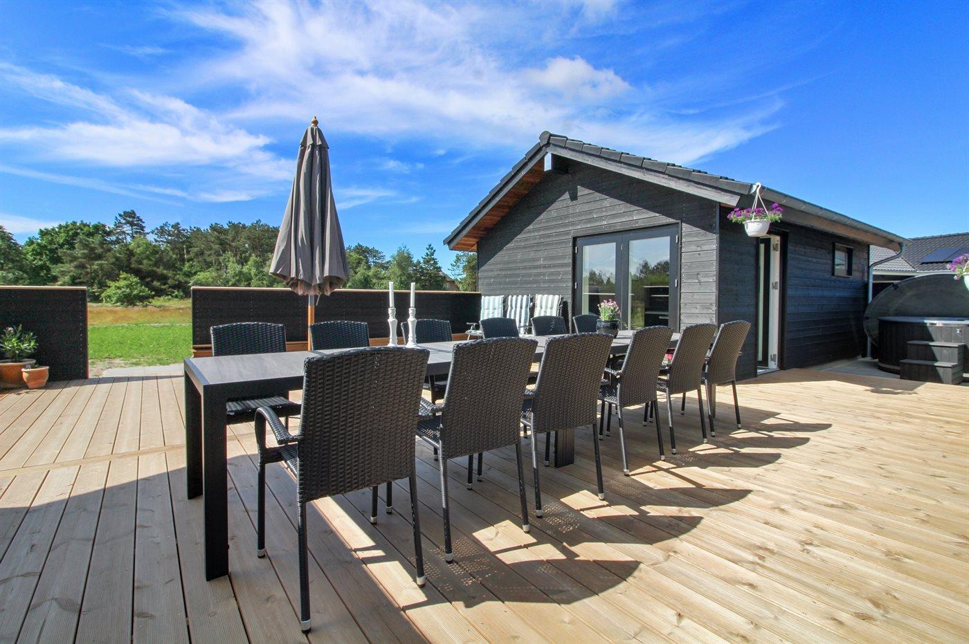 Et flot sommerhus til 10 personer med 5 gode soveværelser og stort disponibelt rum, hvor man kan finde poolbord, bordtennis og arkadespil mm. Fra den dejlige opholdsstue er der direkte adgang til terrassen, hvor der er god plads til hygge samt et vildmarksbad til ren afslapning.