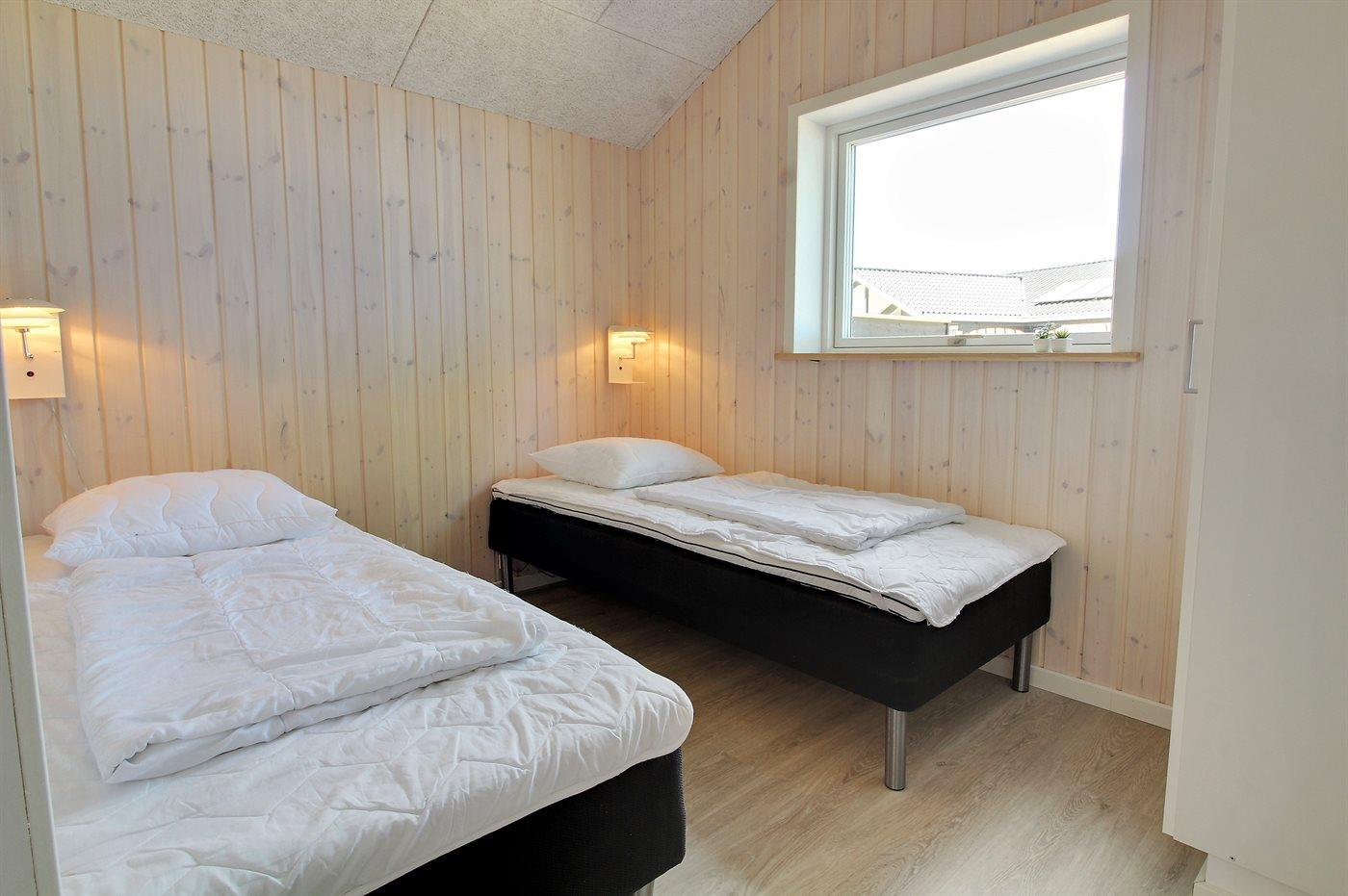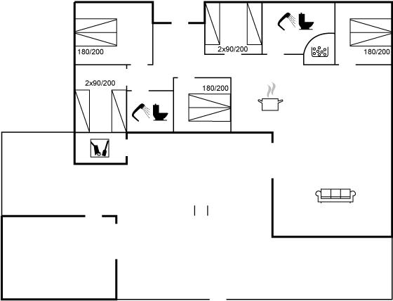 Der er i alt 5 soveværelser. Sovepladserne fordeler sig på: 6 sovepladser i dobbeltsenge. 4 sovepladser i enkeltsenge. Derudover er der 1 stk. barneseng.