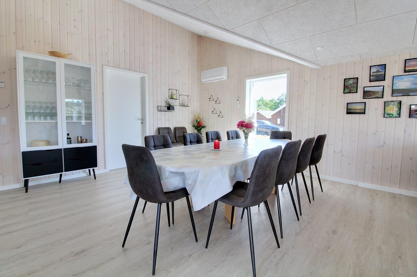 Sommerhuset egner sig til 10 personer samt 1 barn op til 3 år. Ferieboligen er på 150 m² og er bygget i 2021. Det er tilladt at medbringe 2 husdyr. Ferieboligen er udstyret med energibesparende varmepumpe. Ferieboligen er udstyret med energibesparende varmegenvindingsanlæg. Hele ferieboligen har gulvvarme. Ferieboligen har vaskemaskine. Tørretumbler. Frysekapacitet på 80 liter. Der er desuden brændeovn. Til de små er der 1 stk. barnestol.
