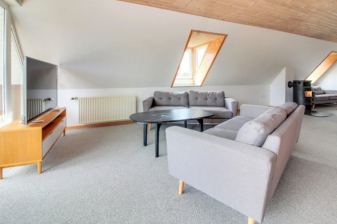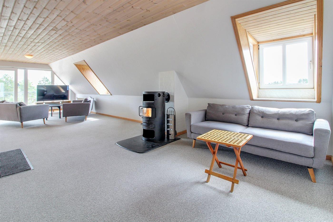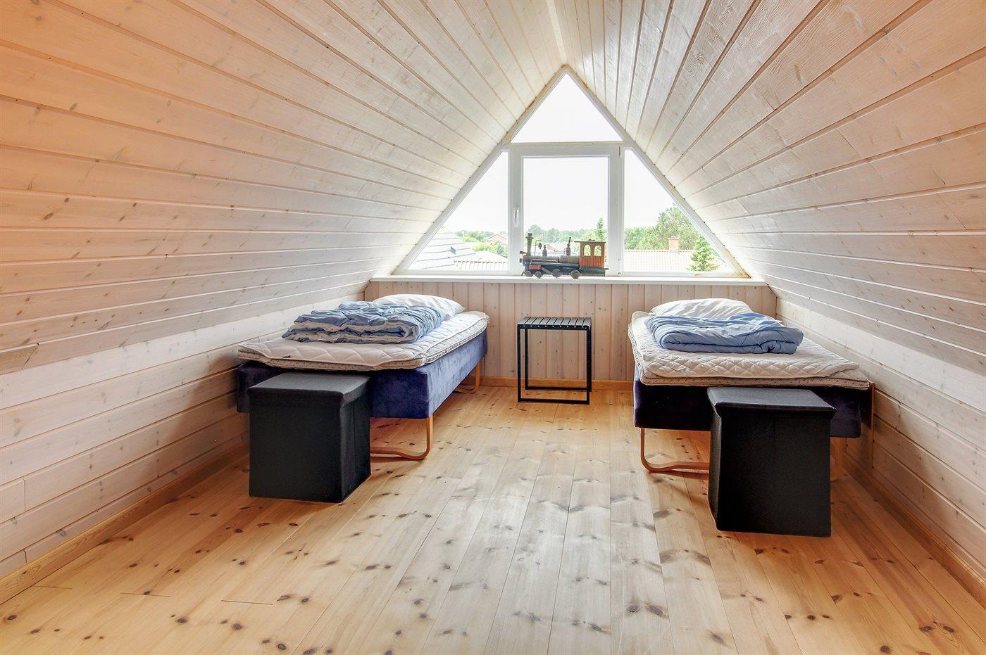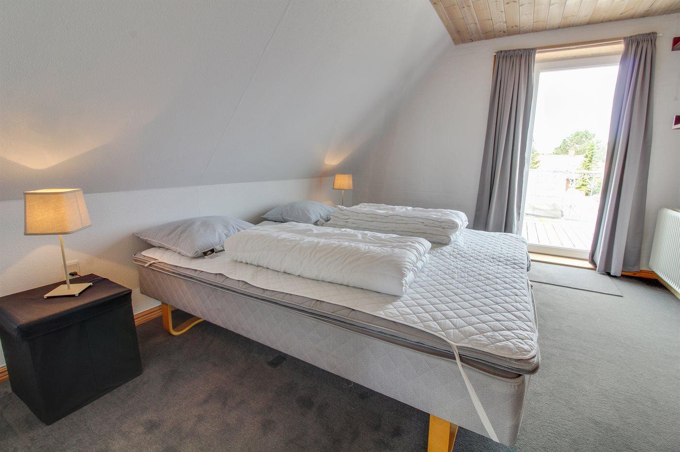 Der er i alt 3 soveværelser. Sovepladserne fordeler sig på: 4 sovepladser i dobbeltsenge. 2 sovepladser i enkeltsenge.