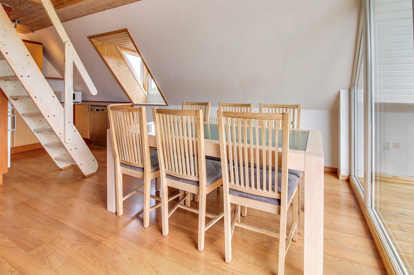 Denne dejlige ferielejlighed i 2-plan, som fordeler sig på 1. og 2. sal, ligger i Havneby – ikke langt fra indkøb og golfbane.