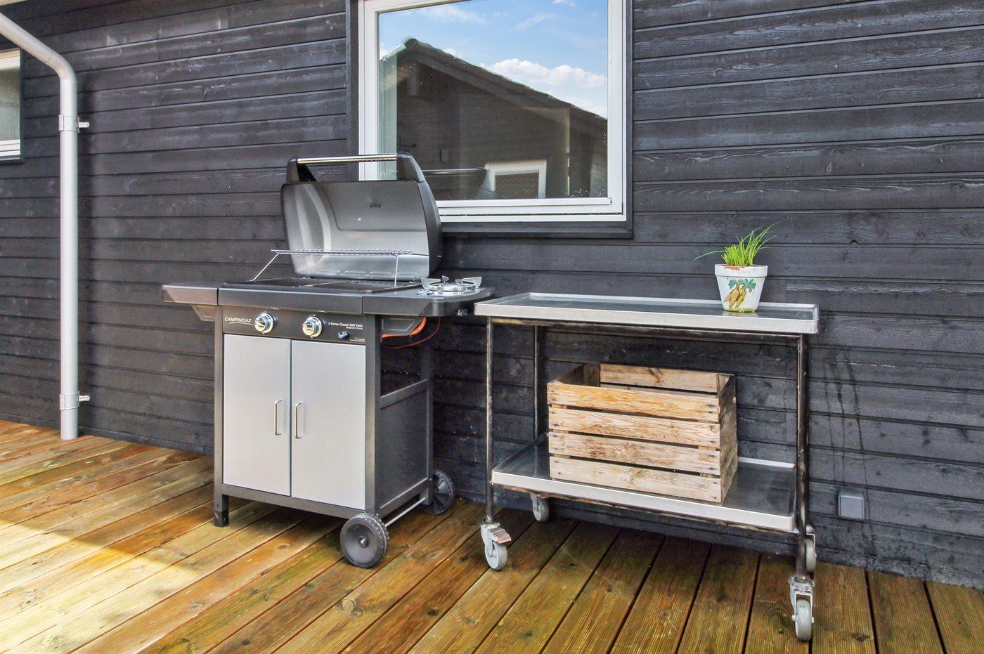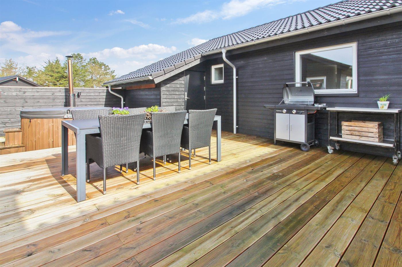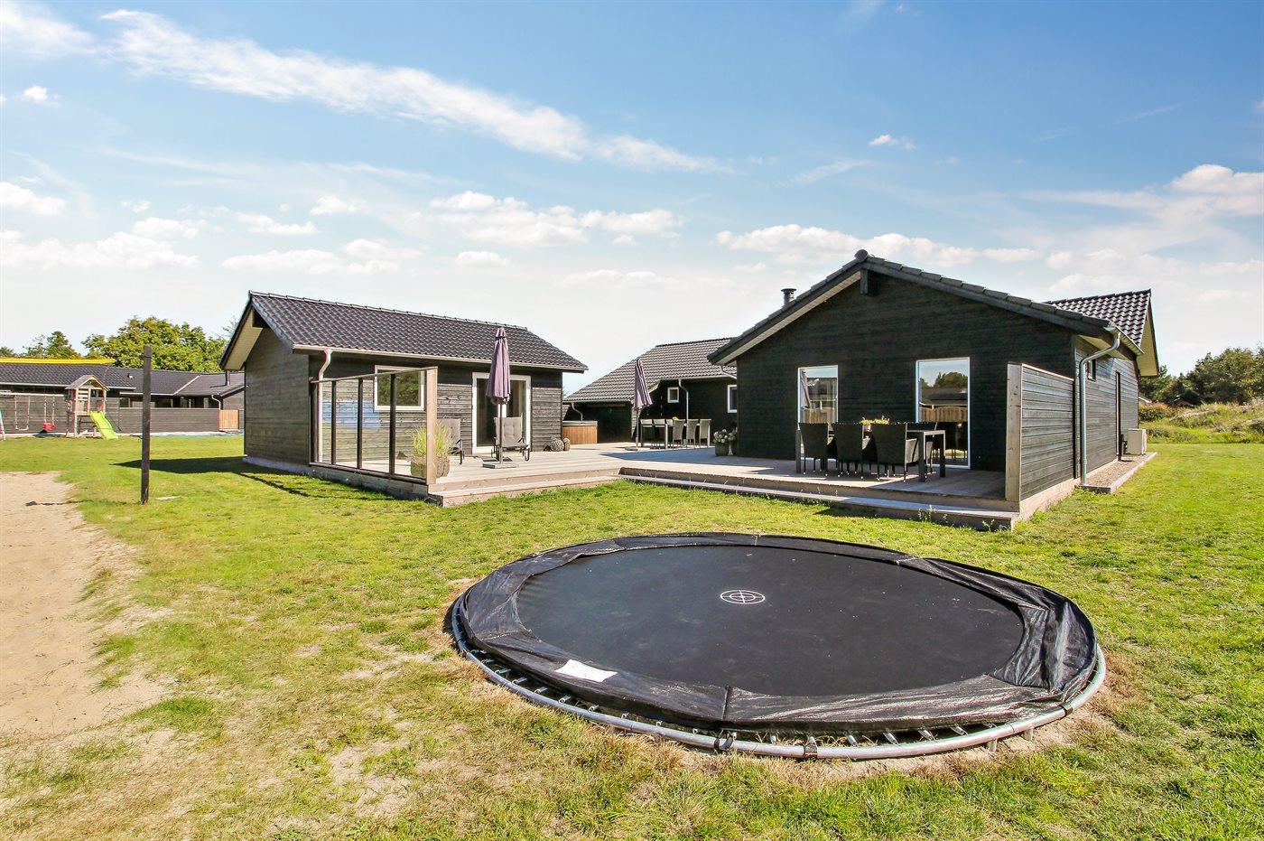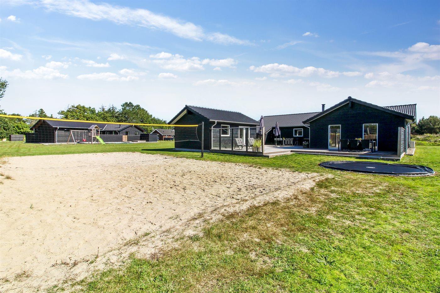 Ferieboligen er beliggende på en 1200 m² stor naturgrund. Der er 2300 m til havet. Der er 250 m til Vadehavet. Nærmeste forretning er beliggende i en afstand af 500 m. Der er en golfbane i en afstand af 900 m. Til ferieboligen hører åbent terrasseareal. Der er redskabsrum. Gynge. Sandkasse. Trampolin. Legetårn. Beachvolley. Udendørs bruser. Grill til rådighed. Der er installeret stik til opladning af elbil. Type 2 stik. Med 11 kW ladeeffekt. Parkering ved ferieboligen.