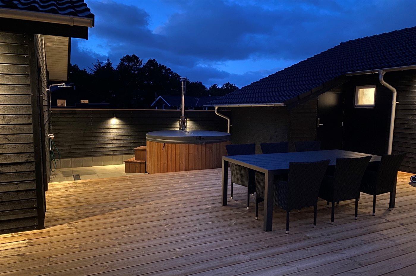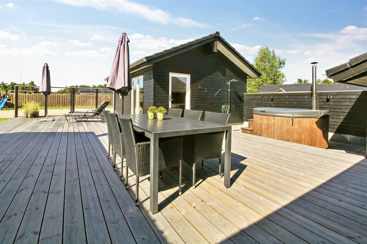 Moderne sommerhus på Rømø med spa, aktivitetsrum og stor terrasse til afslapning og leg.