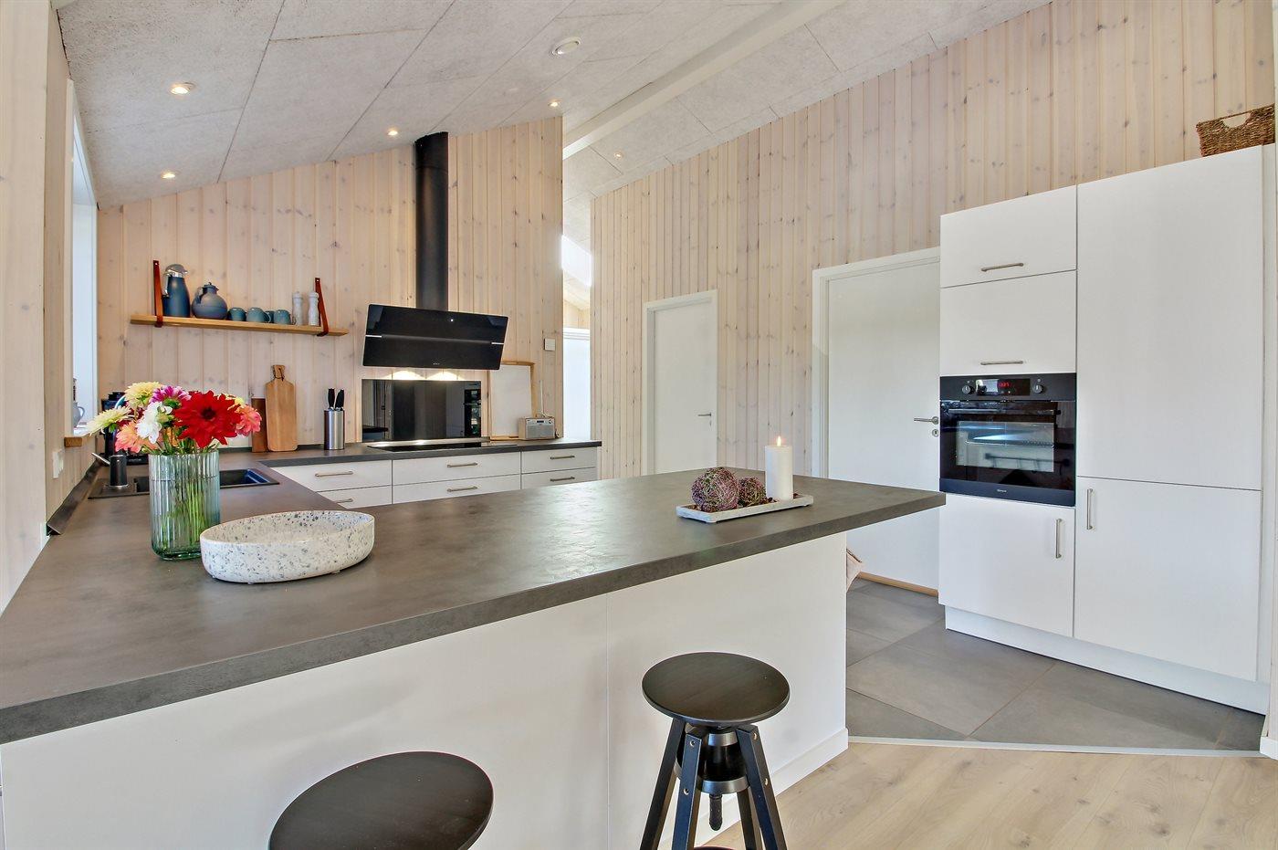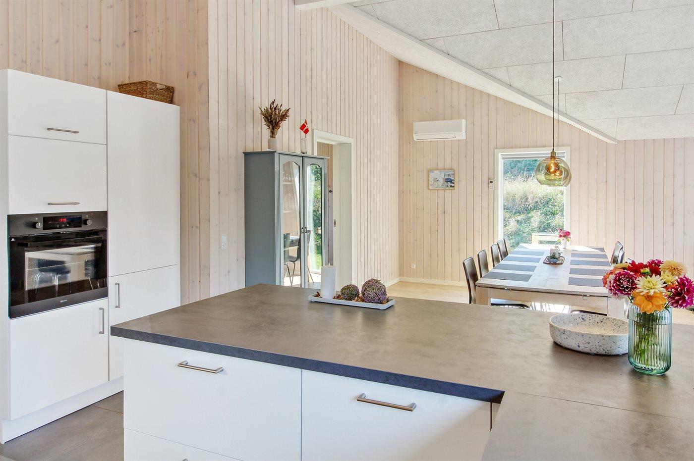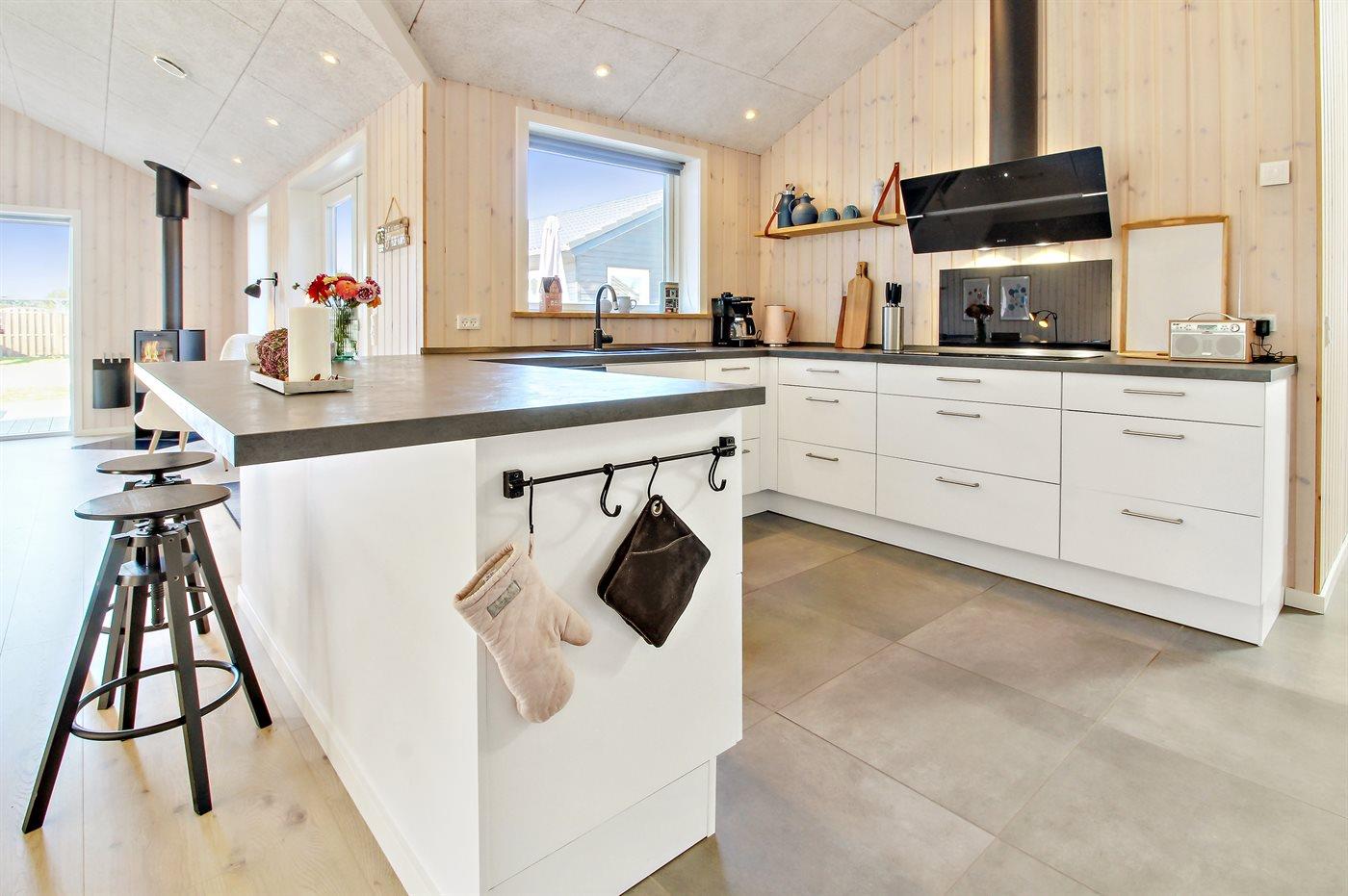 Køkkenet er udstyret med 2 køleskabe. Der er 4 induktionskogeplader, varmluftovn, mikrobølgeovn samt opvaskemaskine.