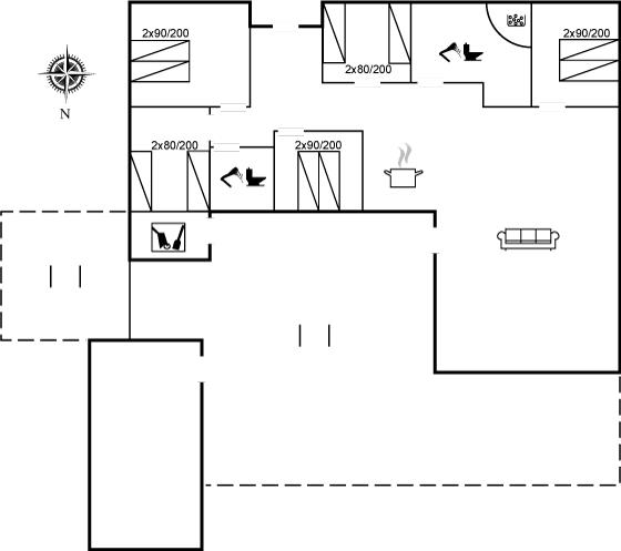 Der er i alt 5 soveværelser. Sovepladserne fordeler sig på: 6 sovepladser i dobbeltsenge. 4 sovepladser i enkeltsenge. Derudover er der 1 stk. barneseng.