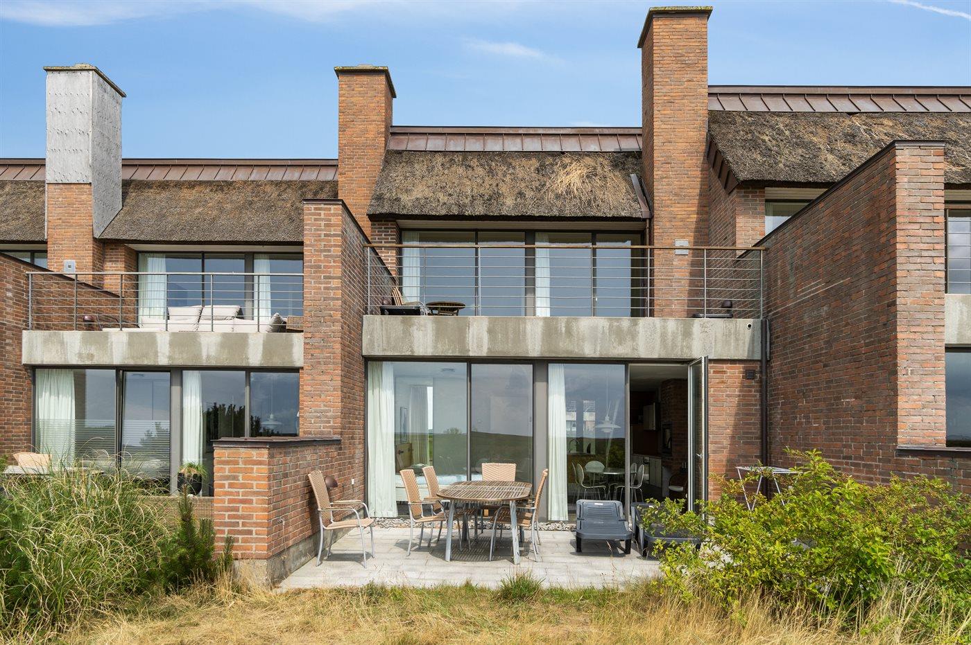 Flot, arkitekttegnet feriebolig på 97 m2, i 2 etager med havudsigt. Boligen er opført i blødstrøgne, rødbrune teglsten, kraftigt stråtag og gedigne materialer. Til boligen hører 2 terrasser, en mod nord og en mod syd, med elegante havemøbler. I stueetagen finder I den store og lyse spise-/opholdsstue, som danner midtpunktet i huset. Her kan I sidde og lytte til musikken fra det flotte B&O stereoanlæg eller til den hyggelige knitren fra brændeovnen. Det flotte danske designkøkken fra Unoform, som ligeledes ligger i stueplan, er gennemført til mindste detalje og udstyret med opvaskemaskine, varmluftovn i rustfrit stål samt komfur med keramiske kogeplader. I forbindelse med køkkenet er der bar med 2 barstole. En trappe fører op i den åbne udsigtsstue med stort vinduesparti, moderne designerlædermøbler samt fladskærms-TV tilsluttet fællesantenne - her kan I sidde og nyde en øl eller et glas vin, mens dagen langsomt går på hæld. Fra stuen er der desuden adgang til en stor altan, hvorfra I kan nyde udsigten. De 2 lyse soveværelser, begge med dobbeltseng, ligger i hver sin ende af ferieboligen. I hvert soveværelse findes skab med spejlskydelåger. Desuden mulighed for 2 ekstra opredninger på dobbelt sovesofa i stuen på 1. sal. Elegant badeværelse med flotte klinker, stor brusekabine med regnvandsbruser samt kombineret vaskemaskine/tørretumbler. Gratis, trådløs internetforbindelse (egen computer medbringes). Børnene er der selvfølgelig også tænkt på idet der findes boldplads, legeplads, hoppepuder, multibane og legerum. Alle nævnte udendørsaktiviteter for børn er inkluderet i lejeprisen og gratis for alle husets beboere. Af yderligere faciliteter byder resortet på 18-huller links golfbane og 9-huller Pay & Play, dejlig restaurant samt bar, bowling, billard, udendørs fitness, cykeludlejning samt konferencelokaler, (mod betaling - tidsbestilling nødvendigt). Resortets to golfbaner samt faciliteterne i wellness-området og swimmingpoolen kan benyttes mod betaling. Resortets 2.600 m2 store wellness-afdeling, hvortil der også hører udendørs atriumhave, byder på luksus pur til krop, sjæl og sanser som f.eks. varme terapibade, fodmassagekanaler, spabade, saunaer, dampbade, saltvandsbassin, afslapningsområde med hvilestole og behandlingsrum med et udbud af spa-behandlinger samt fuldudstyret fitnesscenter og aktivitetslokaler i kælderen (mod betaling - tidsbestilling nødvendigt).