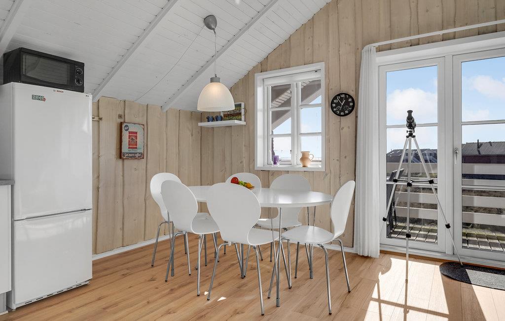 Træbeklædningen og de lyse vægge skaber en naturlig, solrig atmosfære. Her kan I slappe af med familien og tilbringe en hyggelig ferie uden at skulle undvære noget. Hvis I tager kikkerten med, har I gode muligheder for at opleve den omkringliggende natur og nyde udsigten. På altanen kan I sætte jer godt tilrette med morgenkaffen, mens I nyder de første solstråler.