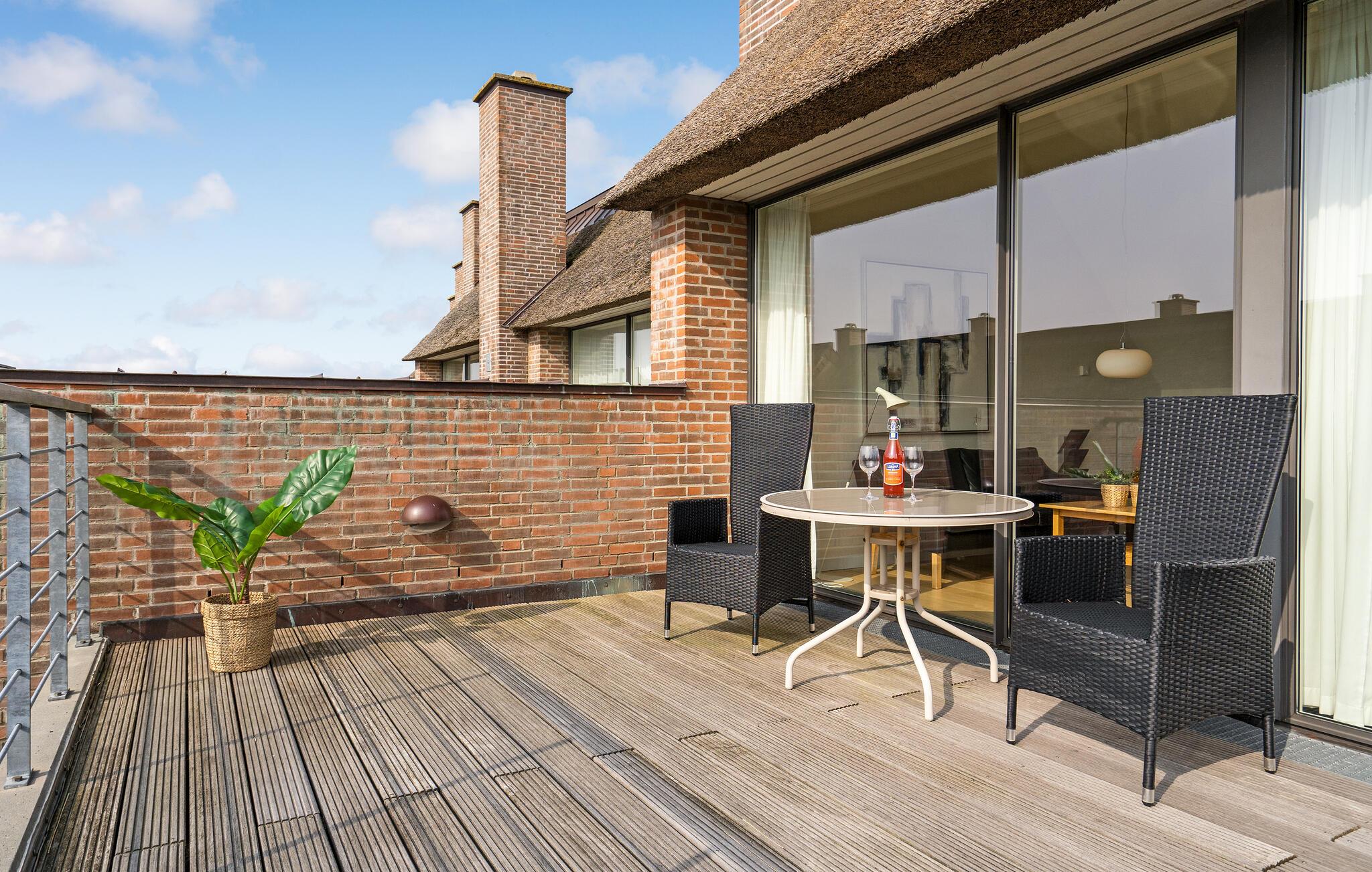 Flot, stråtækt feriehus i to etager med fornem indretning, centralt beliggende i Havneby.