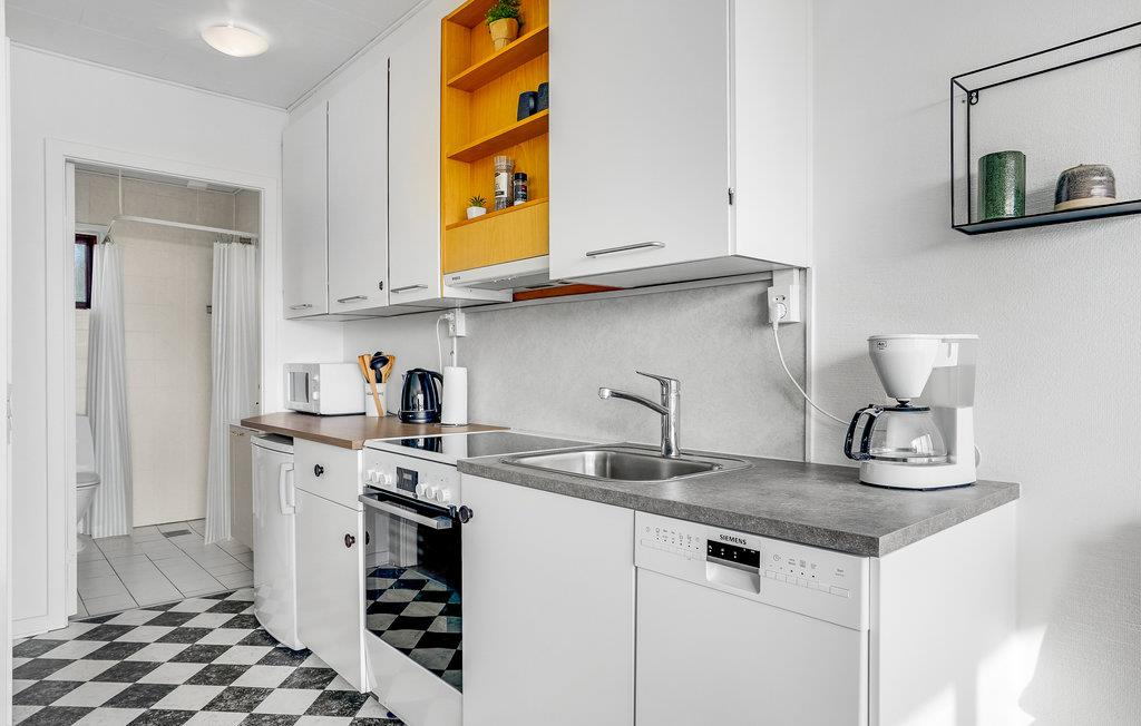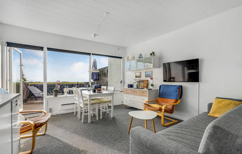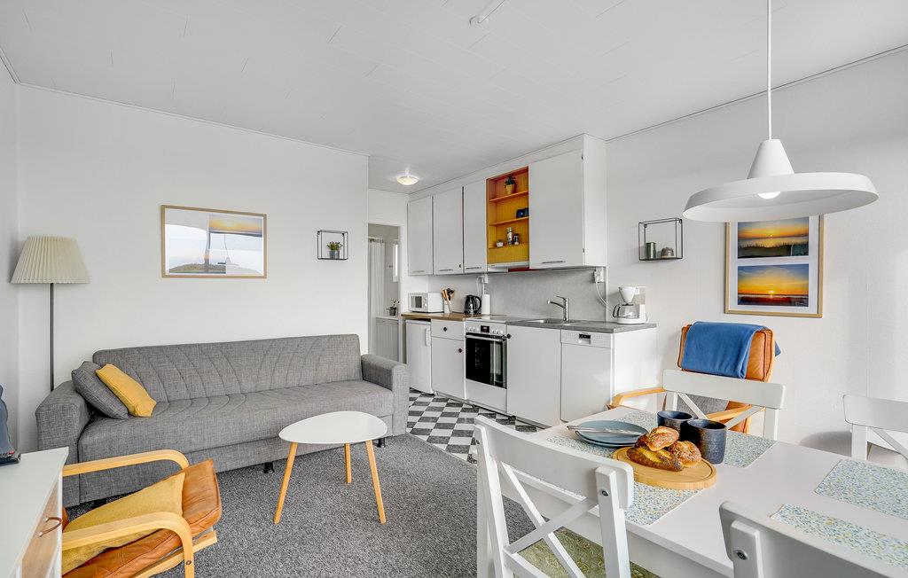 Lejligheden venter jer i stueetagen og tilbyder en fantastisk udsigt over havet gennem de store billedvinduer. Lejligheden kan komfortabelt rumme 4 personer. Den er velegnet til en ferie på ethvert tidspunkt af året og er yderst indbydende med sine lyse og moderne møbler.