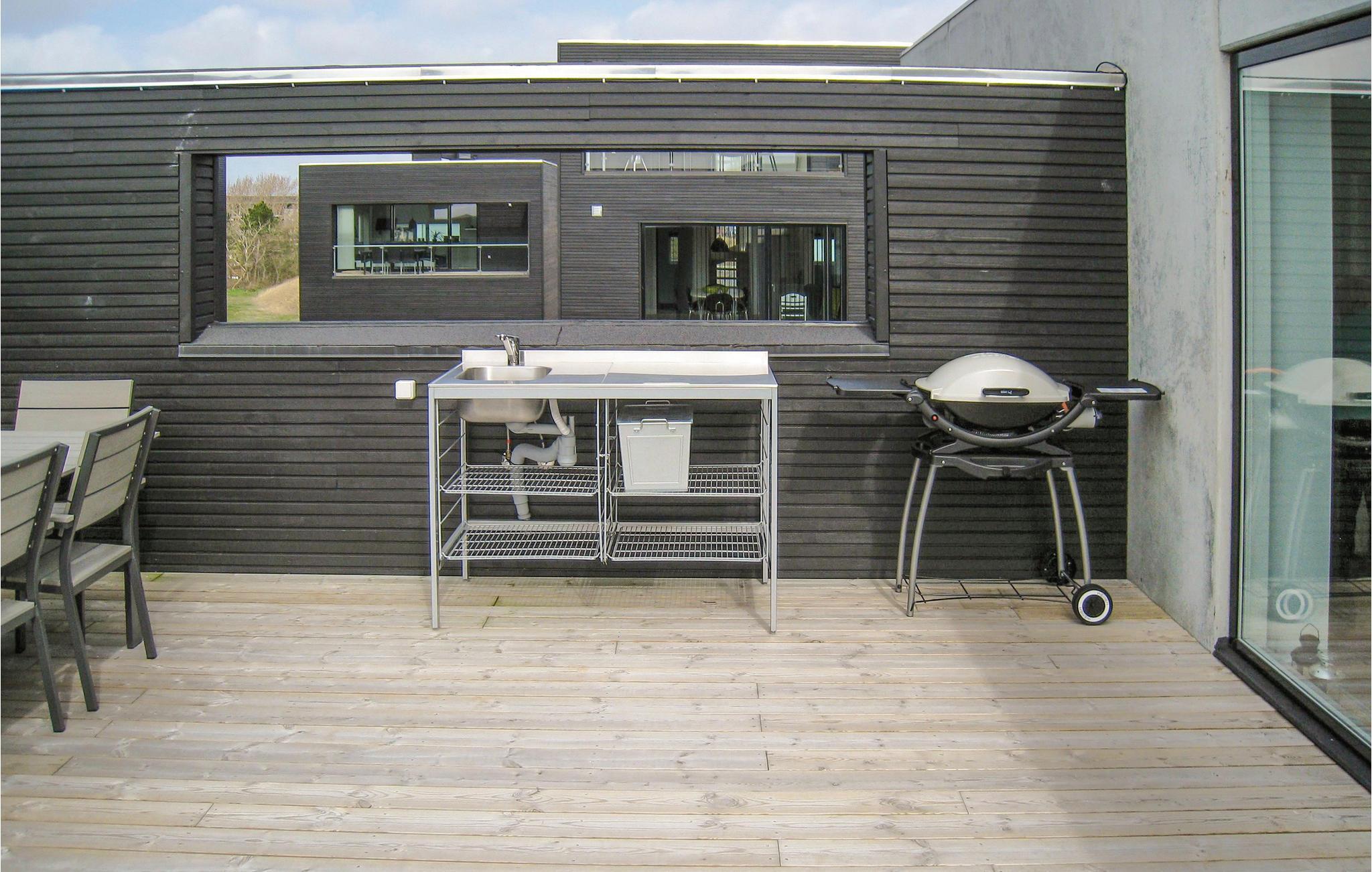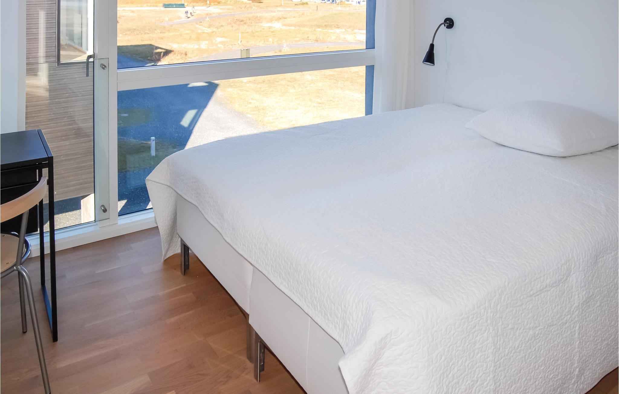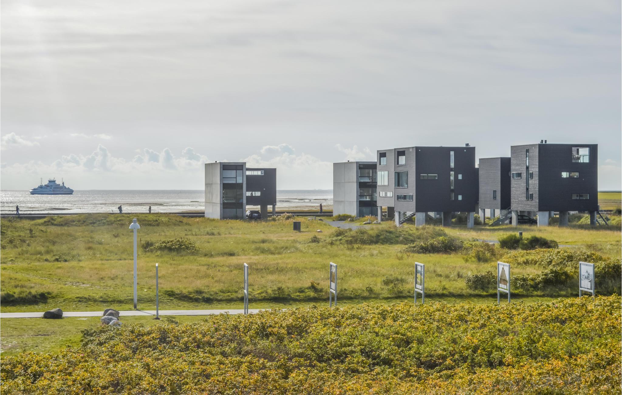 Eksklusiv feriebolig med overvældende panoramaudsigt over vadehavet fra det meste af huset. Vadehavet er beliggende lige uden for huset - det er et af Europas vigtigste vådområder og et af Danmarks væsentligste naturreservater - med strand, eng, klitter og med et utroligt rigt fugleliv, og i det fjerne ses øen Sild. Få hundrede meter til den ene side kommer man til Havnebys idylliske havn med små fiskeforretninger og med jævnlig færgeafgang til Sild, og få hundrede meter til den anden side er der golfbaner, tennisbaner og restauranter. Desuden går der i forlængelse af promenaden foran huset naturstier i marsk- og digelandskabet, og 2 km derfra finder man Sønderstrand, en af Europas bredeste strande med masser af friluftsaktiviteter. Huset er bygget i 2009 som del af et prisvindende arkitektprojekt, Sort Sol, som udtryk for moderne natur- og miljøbevidst arkitektur. At bebo denne usædvanlige og funktionelle bolig er i sig selv en spændende oplevelse. Den er bygget af 1. klasses materialer, og møbleringen harmonerer med arkitekturen, lys, let, uhøjtidelig, funktionel og skandinavisk design. Ferieboligen indeholder bl.a. stort køkken-stue-alrum med alt i udstyr deriblandt fjernstyrede rullegardiner. Desuden er der i alt fire soveværelser i huset, fordelt med to værelser samt et badeværelse, på hver etage. I huset findes en transportabel fladskærm med DVD som kan tilsluttes i alle værelser efter behov. Endelig er der en stor solterrasse med en storslået udsigt over landskabet og med udekøkken og spiseplads. Huset er perfekt til to familier, til ro og afstresning, til arbejdsro, til udflugter og oplevelsesture. For golfspillere ligger en af landets bedste 18-hullers linksbaner nogle hundrede meter derfra og på Sønderstrand dyrkes der kite-surfing, strandsejling, drageflyvning med meget mere. Endelig er der talrige muligheder for at lære Rømøs særlige natur og kultur nærmere at kende via diverse udflugter, eller man kan tage en tur med Rømø-Sild-færgen et par hundrede meter fra huset og besøge øen Sild.