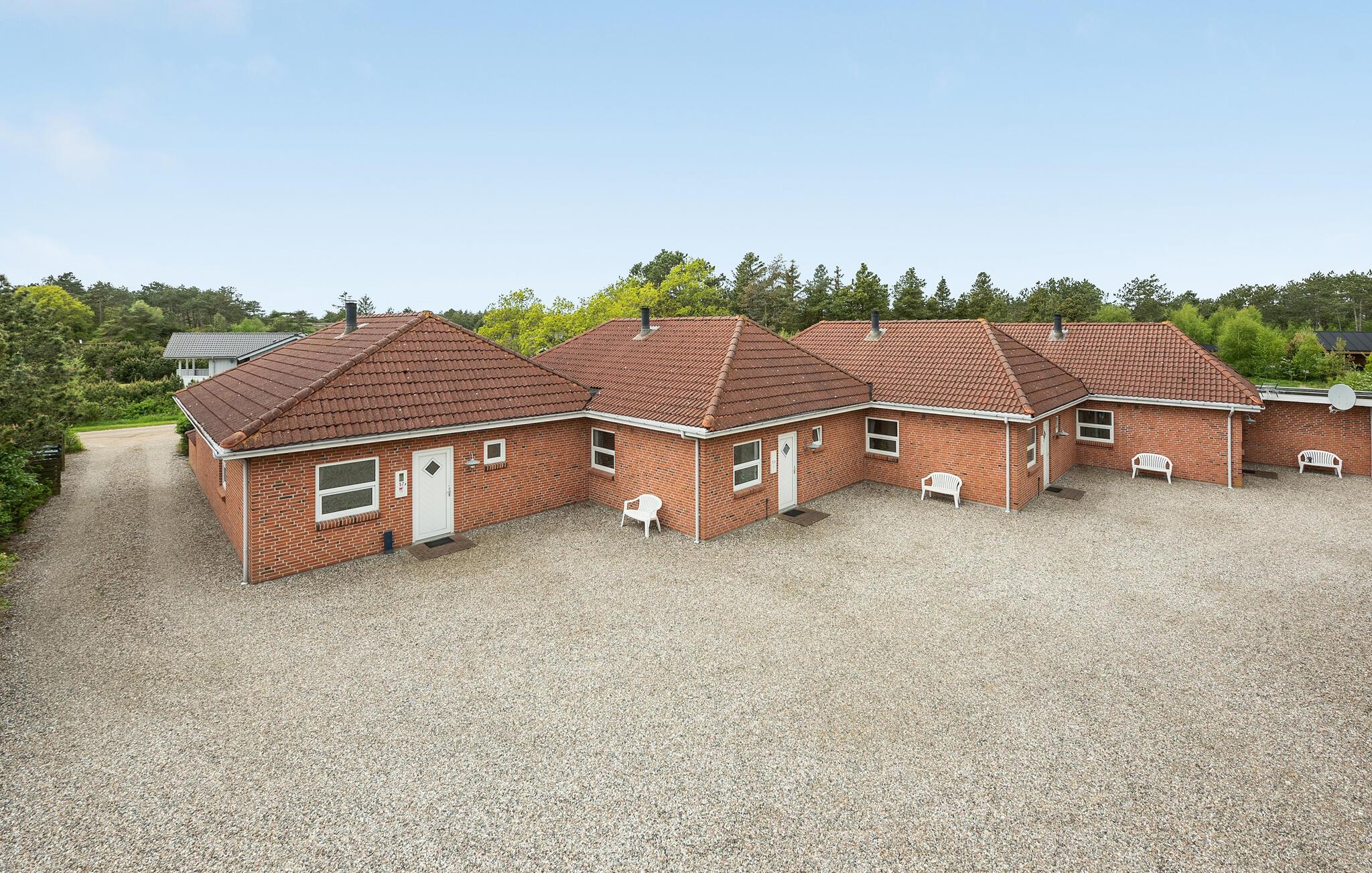 Ikke langt fra Vadehavet og kun 1000 m fra golfbanen ligger disse tre dejlige enderækkehuse. Hvert hus er meget lyst og venligt indrettet og godt udstyret. F.eks. er der både spabad og sauna samt gulvvarme i badeværelset. Husene ligger forskudt, og til hvert hus hører en god terrasse, omgivet af en mur. Her kan I i fred og ro nyde solen eller hygge jer ved grillen. Det veludstyrede køkken er kombineret med stuen. Her står brændeovnen, der giver god varme og en hyggelig stemning, når familien vil slappe af efter en dejlig dag i naturen. På grunden er der opsat fælles legeredskaber.