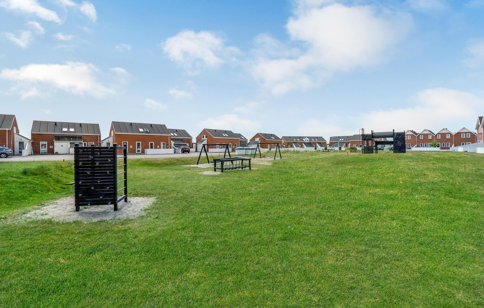 Hyggeligt feriehus i Rim Feriecenter på Rømø med adgang til pools, sauna og legepladser, tæt på strand og havn.