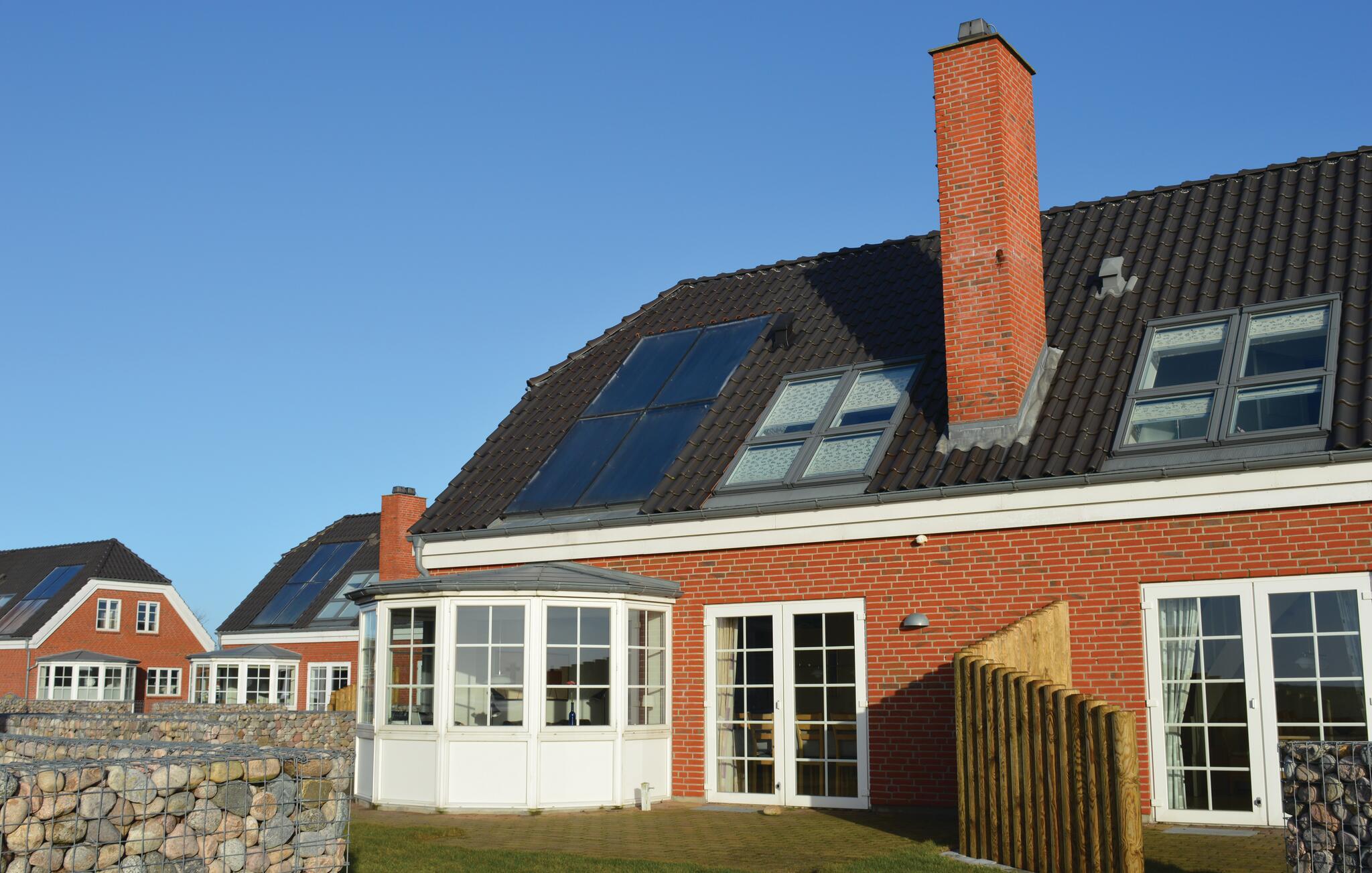 Flot dobbelthus i yderste række mod Vadehavet og havneindsejlingen til Rømø havn. Den unikke placering, nærheden til Rømø Golf Links og husets gennemførte arkitektur gør, at en god oplevelse venter jer. Huset terrasser er afskærmet med en unik stensætning, som passer flot ind i huset stil. De to badeværelser er gennemført luksus - fra spabadet kan I nyde udsigten over eng og Vadehav og fra karnappen i stuen har I samme udsigt. På hemsen er der to ekstra sovepladser. Alle flisegulve har gulvvarme og energiforbruget er minimalt p.g.a. solvarmeanlægget og brændeovnen, der er tilsluttet husets varmeanlæg.