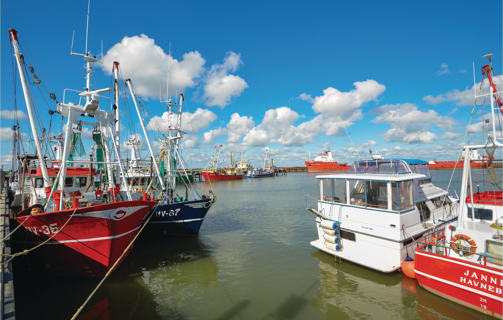 Nær et hyggeligt havnemiljø, gode indkøbsmuligheder og restauranter. Færge til den tyske ø Sild. På Rømø er der utallige gang- og cykelstier bl.a. gennem plantagerne og på den brede lange strand, hvor I også kan I køre i bil helt ned til vandkanten. Visse steder er stranden, en af Europas største, op til fire km bred, et område der er én stor legeplads for alle aldre; med mulighed for at køre kite buggies og blokarts i afgrænsede områder. Men der er også fred til det afslappede badeliv, med en gåtur til Banan Klitten, der som navnet siger, er formet som en banan. Kan I løsrive jer fra strandlivet, så er der kun 40 km til Danmarks ældste by Ribe, med bl.a. den enestående domkirke, fiskebutikker samt gode restauranter. Færge til den tyske ø Sild.