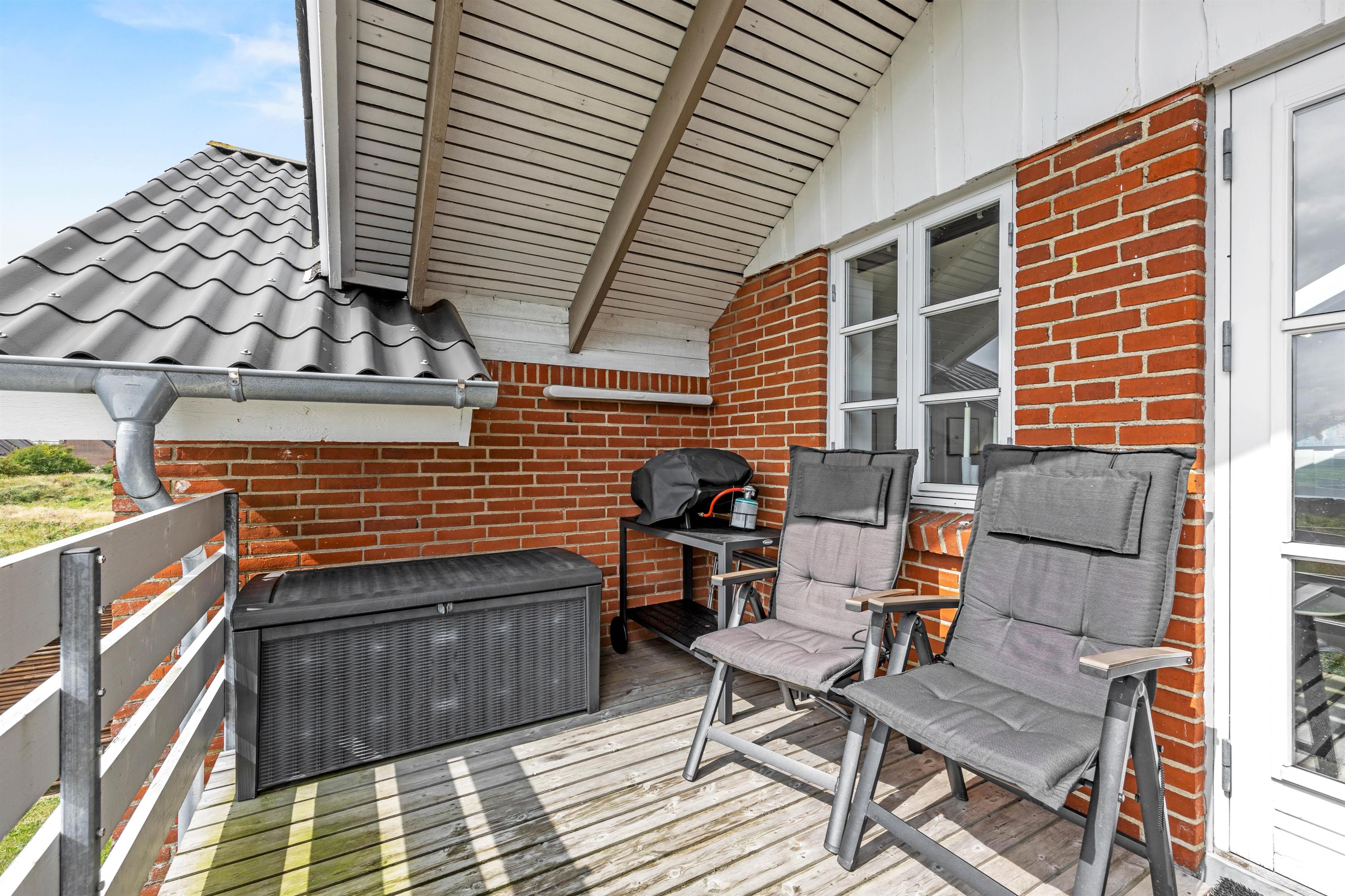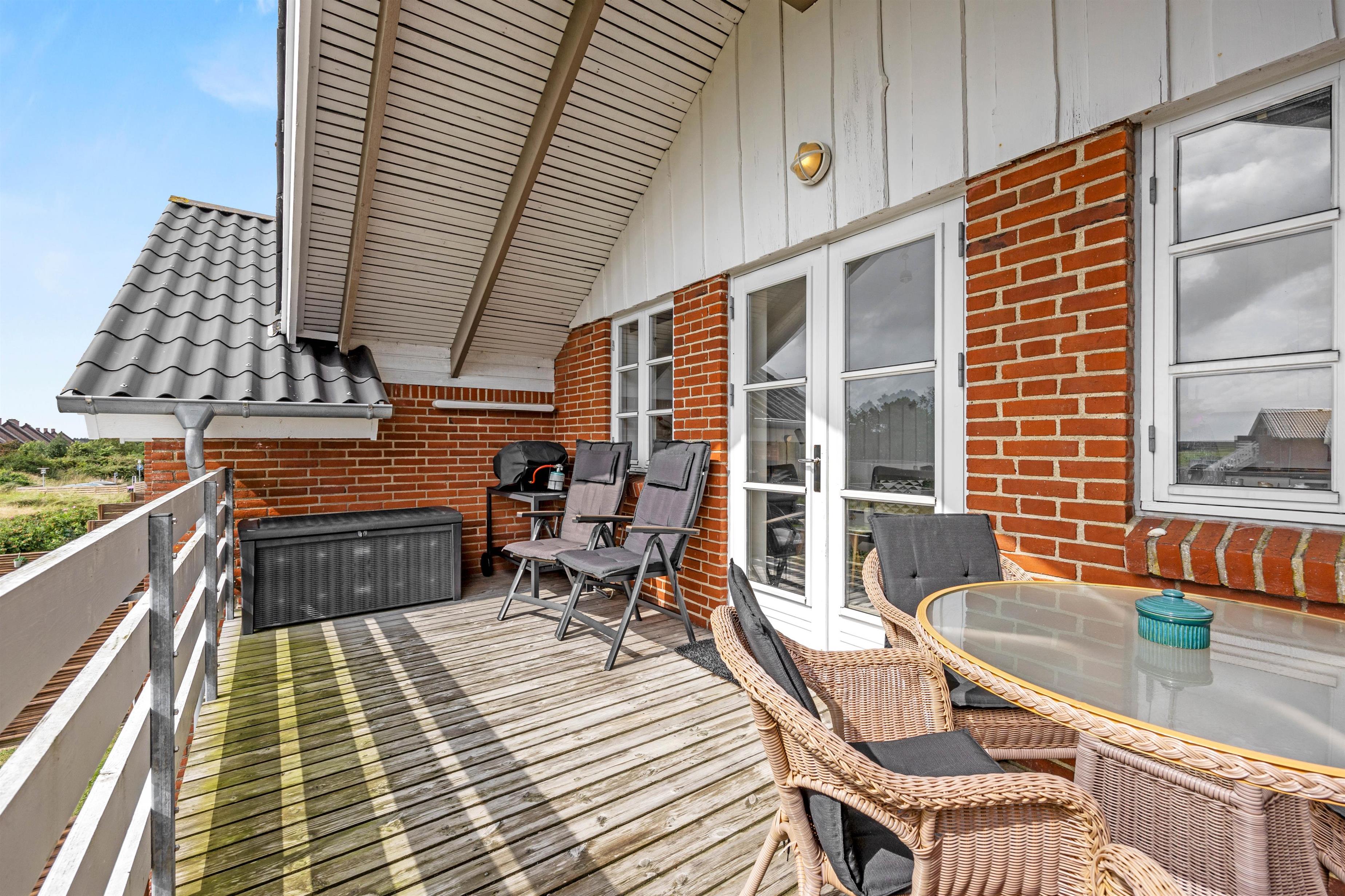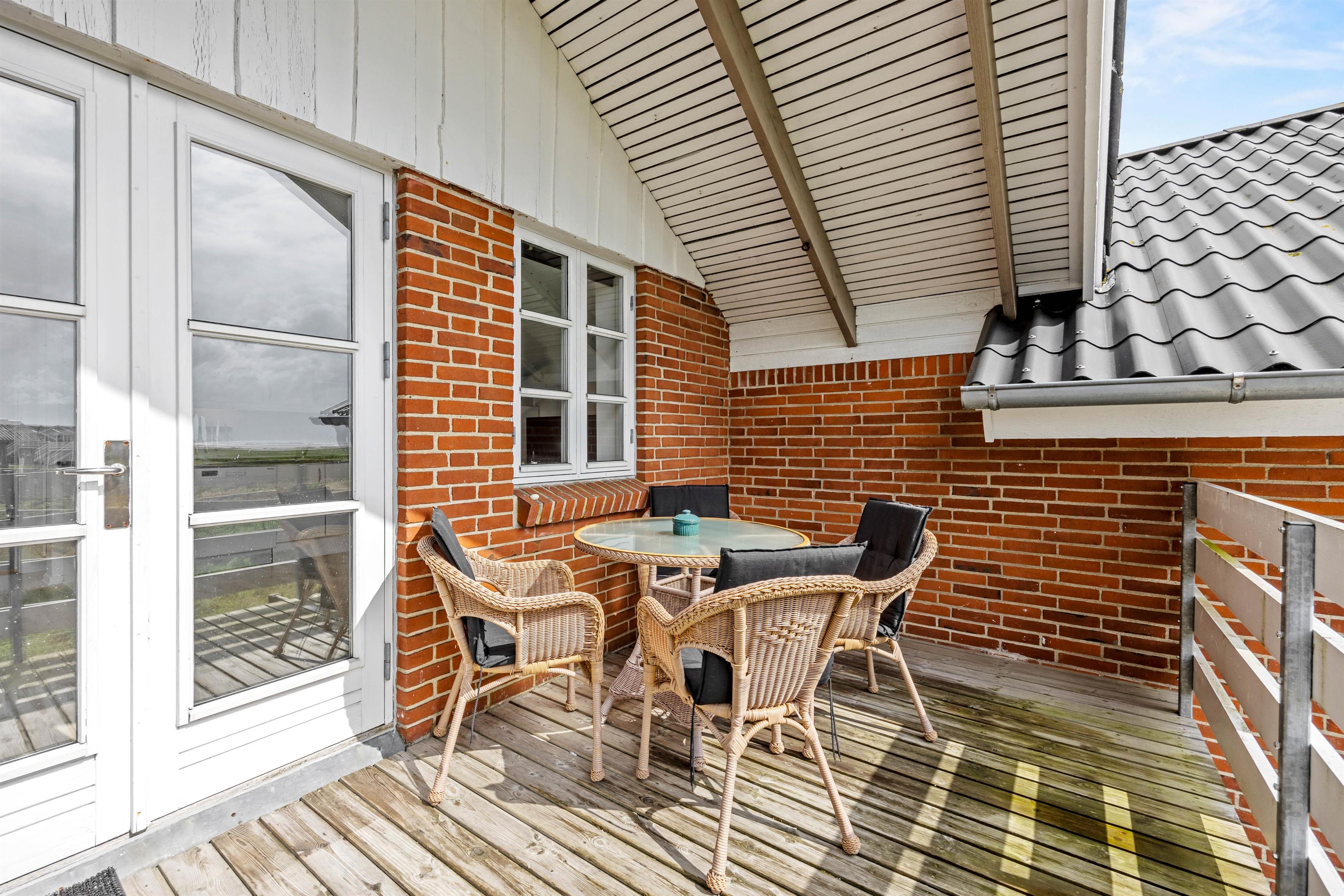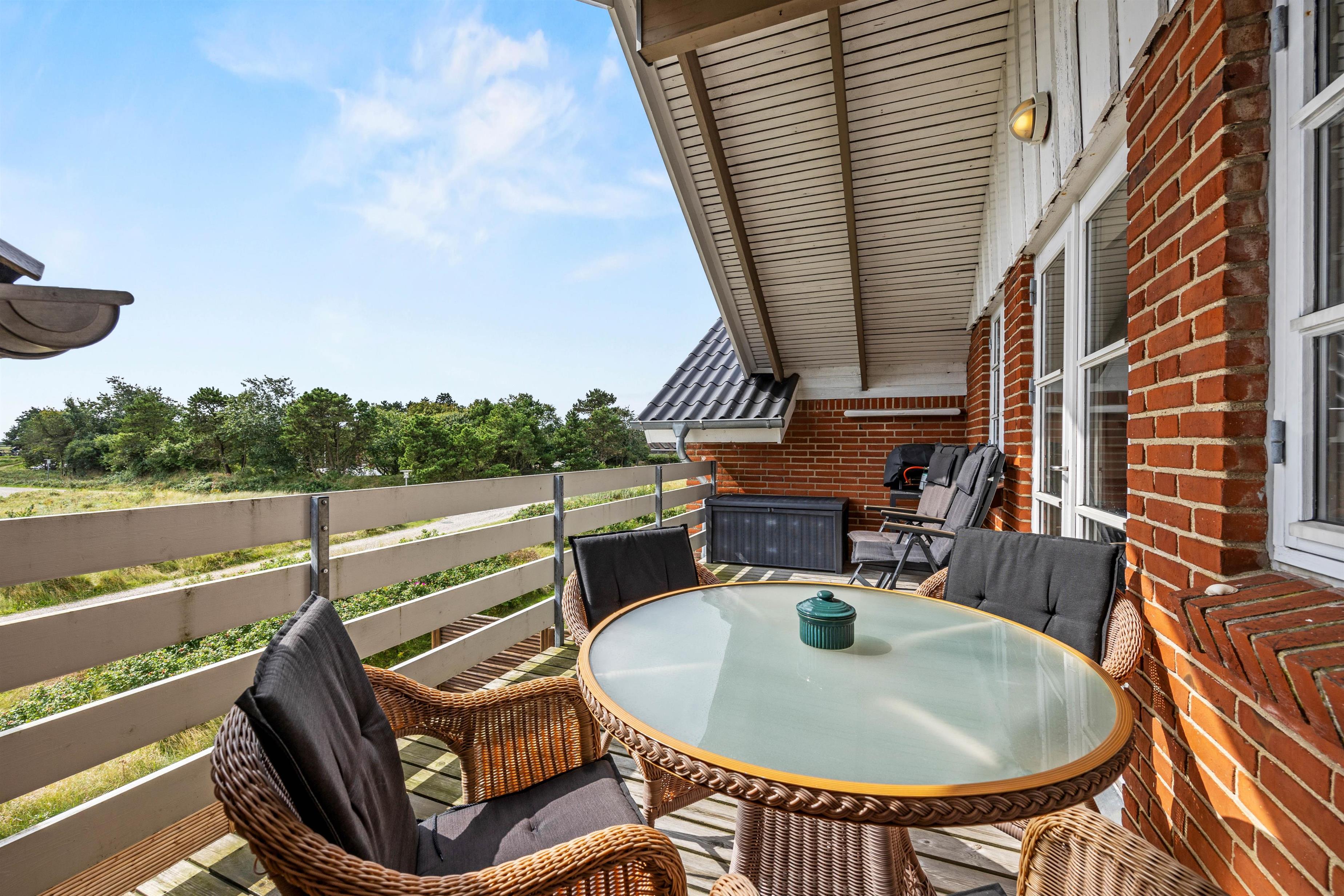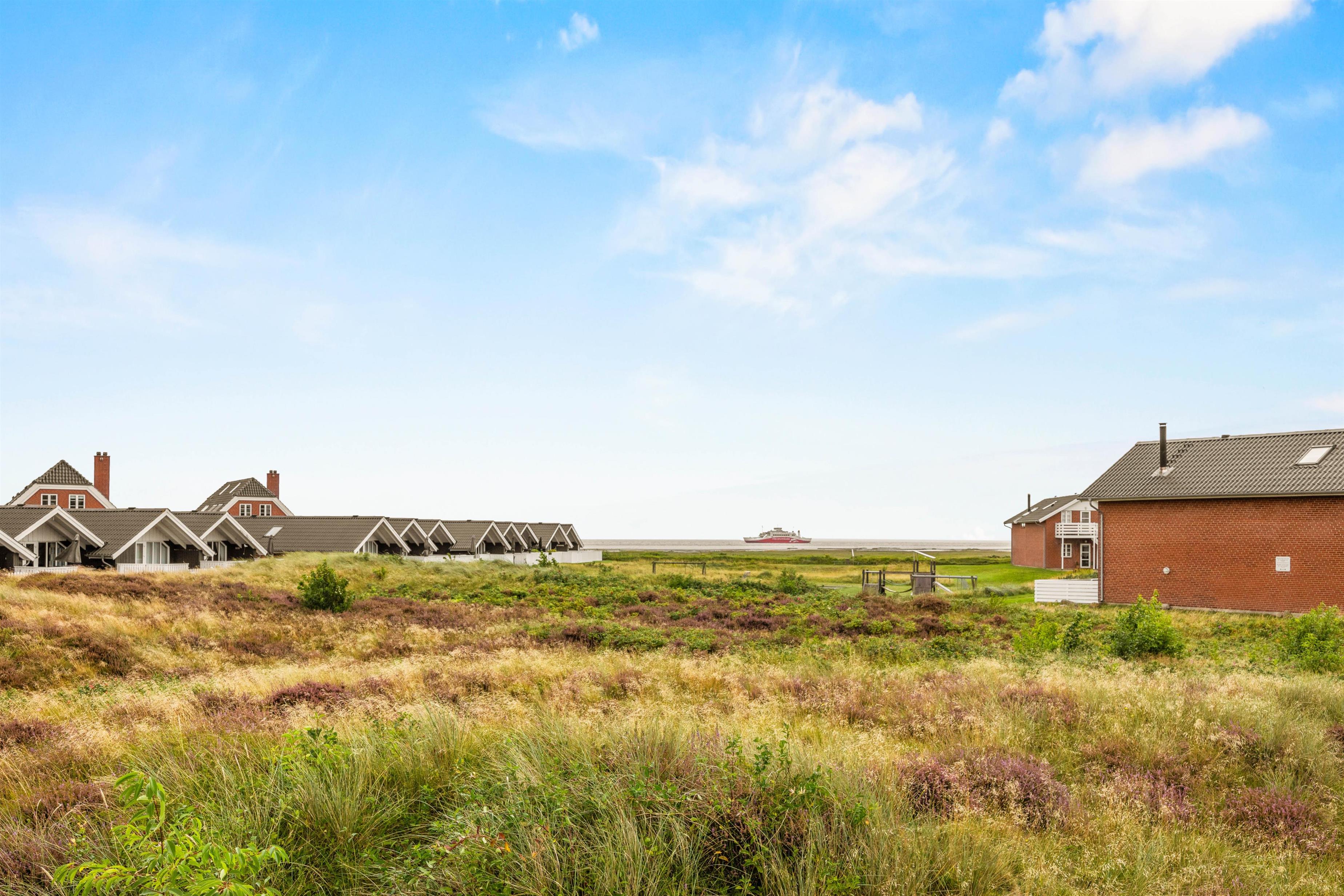 Fra stuen er der udgang til den 14 m2 store overdækkede altan, og herfra kan I nyde panoramaudsigten over Vadehavet og færgeindsejlingen Rømø/Sild. Der er adgang til at benytte fælles tennisbane, multibane og legeplads i forbindelse med ferielejligheden. Udendørs findes der endda en legeplads til mindre børn, petanquebane, udendørs bordtennis, tennisbane samt en multibane med basket og fodbold.
