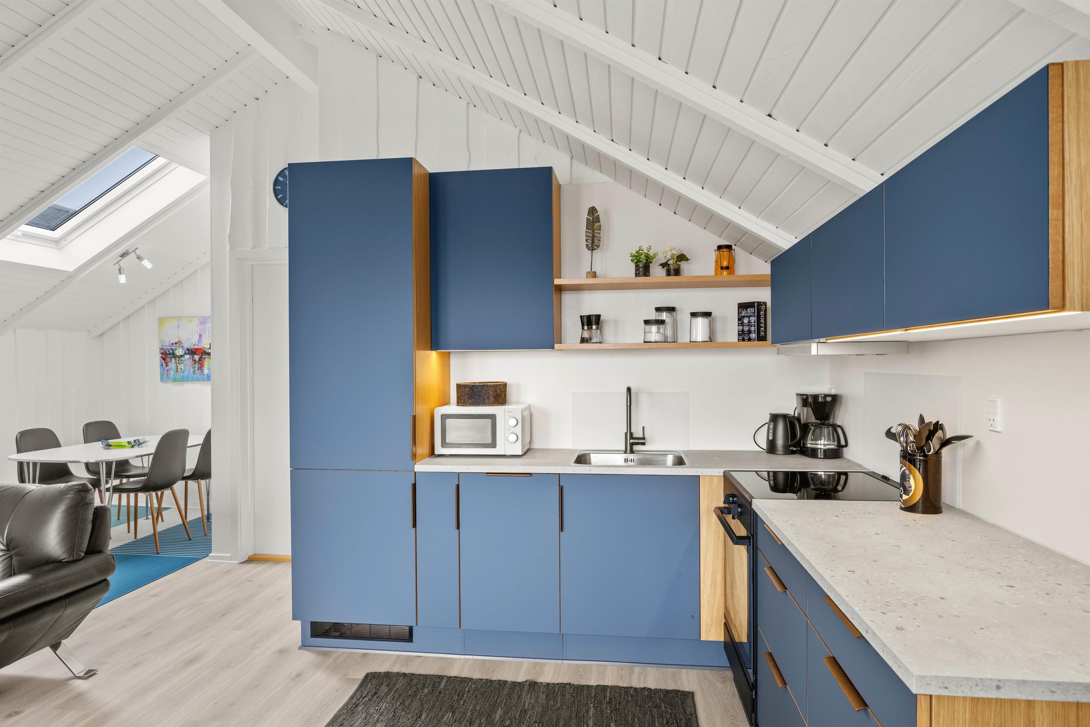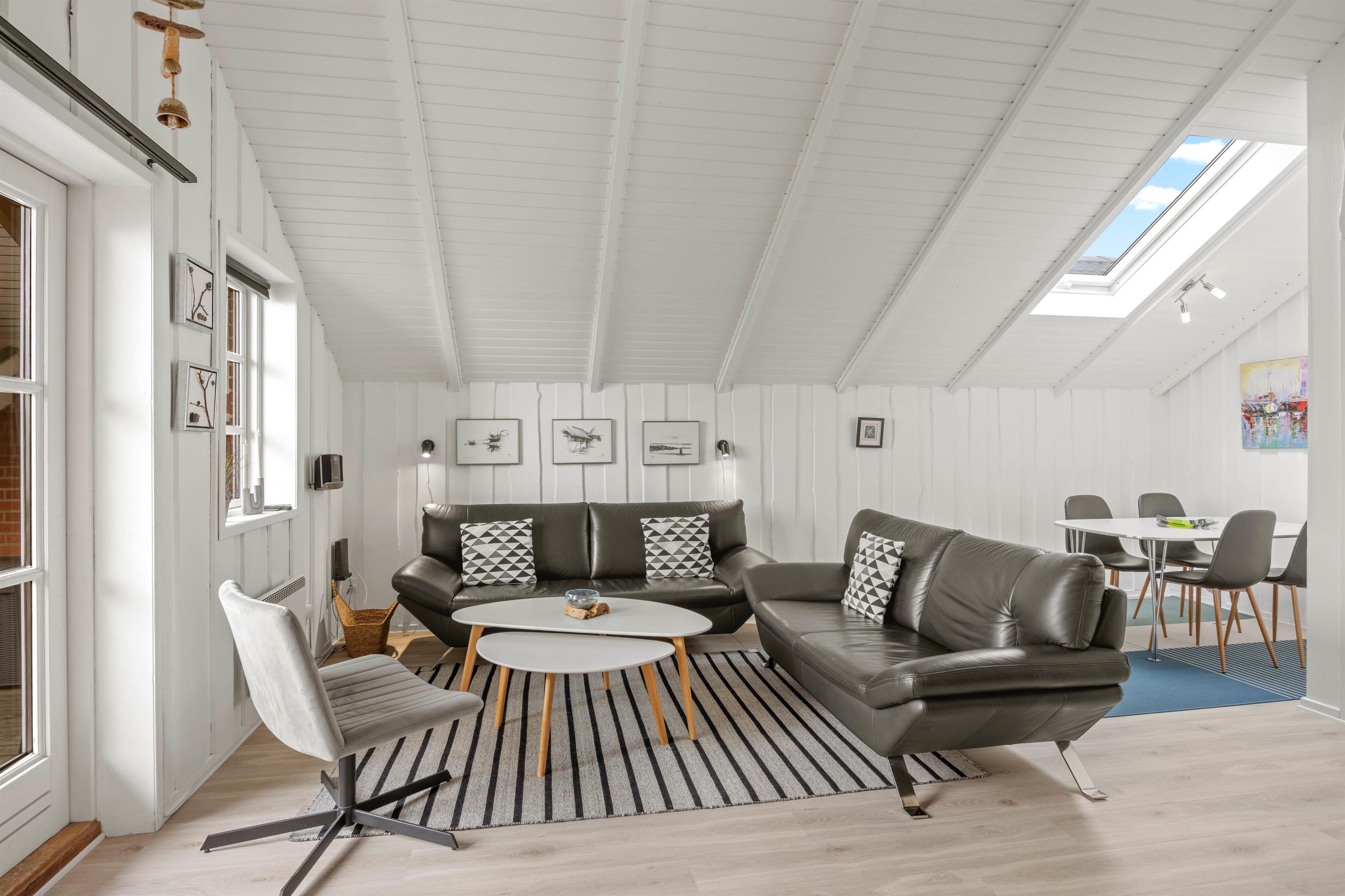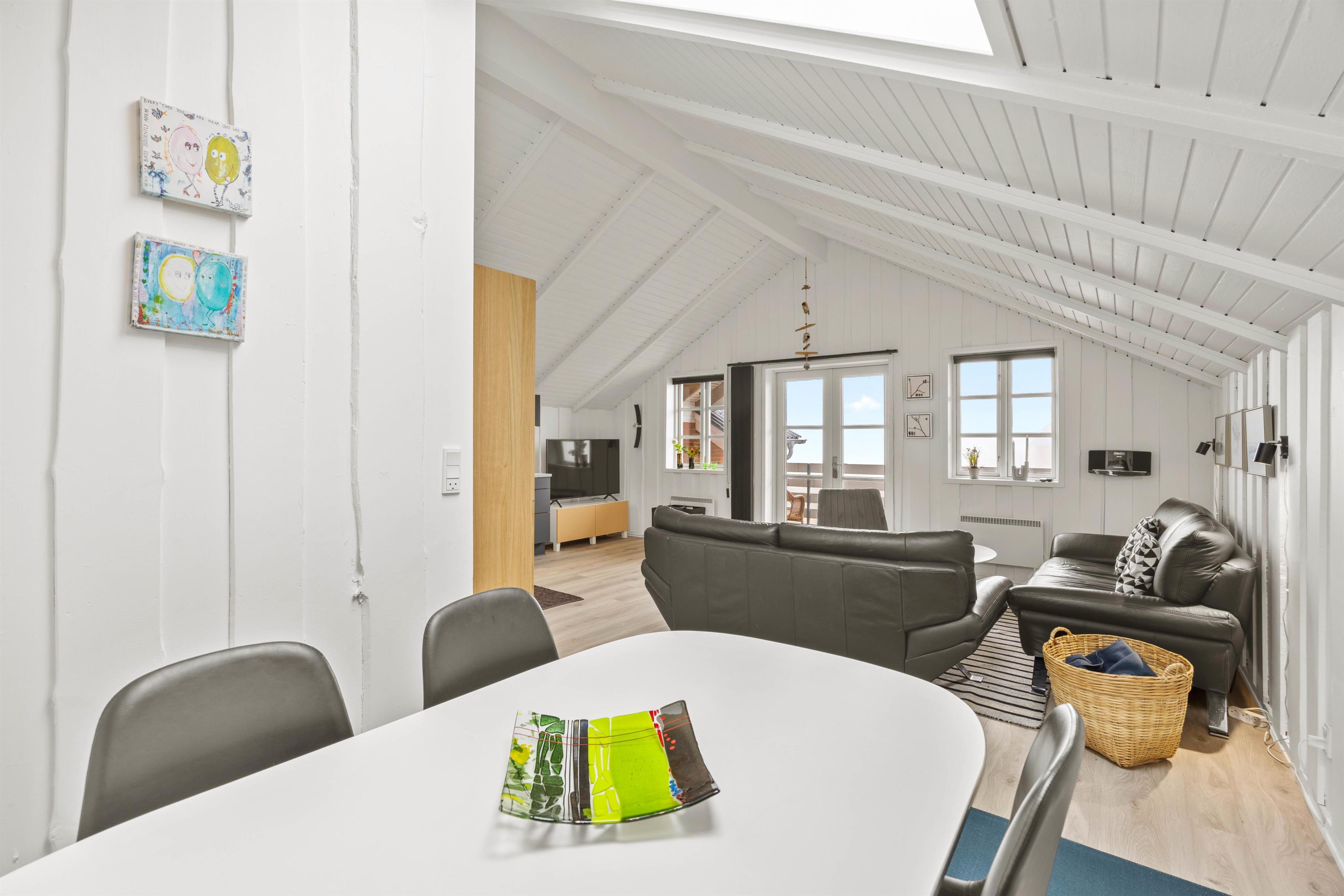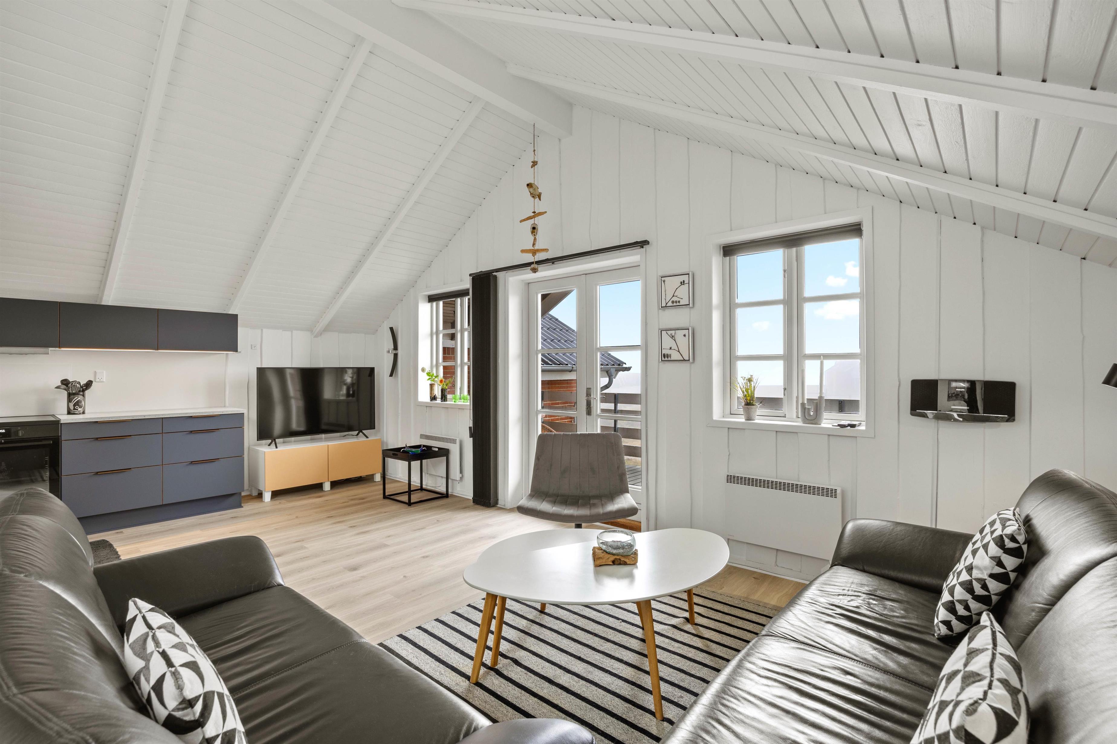 På Vestergade 3 C skaber den hvidmalede træbeklædning på vægge og lofter samt de lyse trælaminatgulve straks en lys og let stemning. Den lyse stue i forbindelse med det åbne køkken danner rammen om fællesskab og samvær. Hyg jer sammen i sofagruppen med en snak eller en god film via Chromecast, eller forkæl hinanden med lækre måltider, tilberedt i det veludstyrede køkken. Der er opvaskemaskine, vaskemaskine og tørretumbler til jeres rådighed, så I også kan friske garderoben op i løbet af ferien. Badeværelset har gulvvarme, og de 4 komfortable sovepladser er fordelt med en dobbeltseng 160 x 200 cm i 1 soveværelse, og 2 enkeltsenge 70 x 200 cm i det andet soveværelse. I kan således indrette jer, som det passer jer bedst.