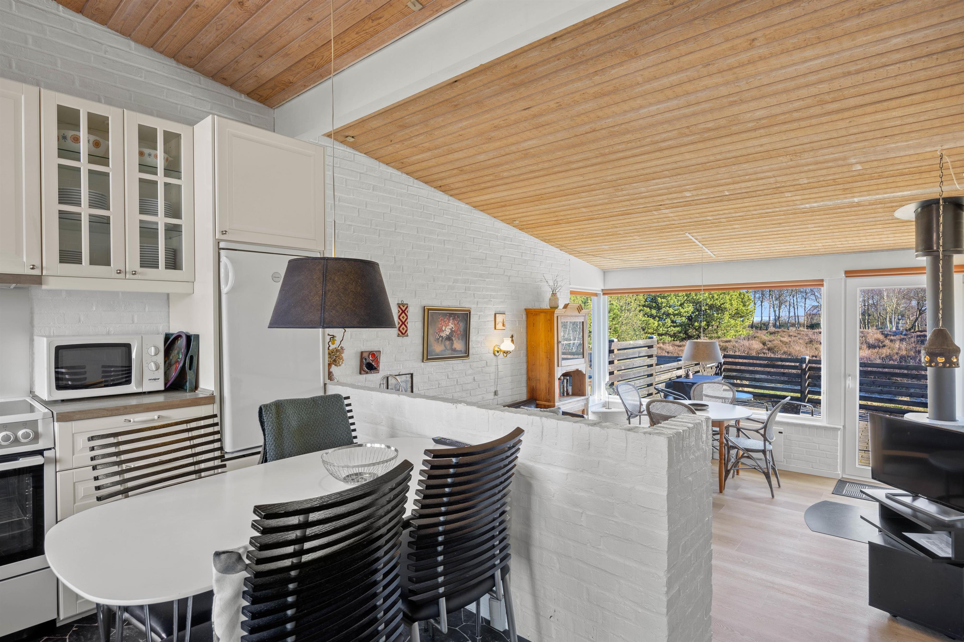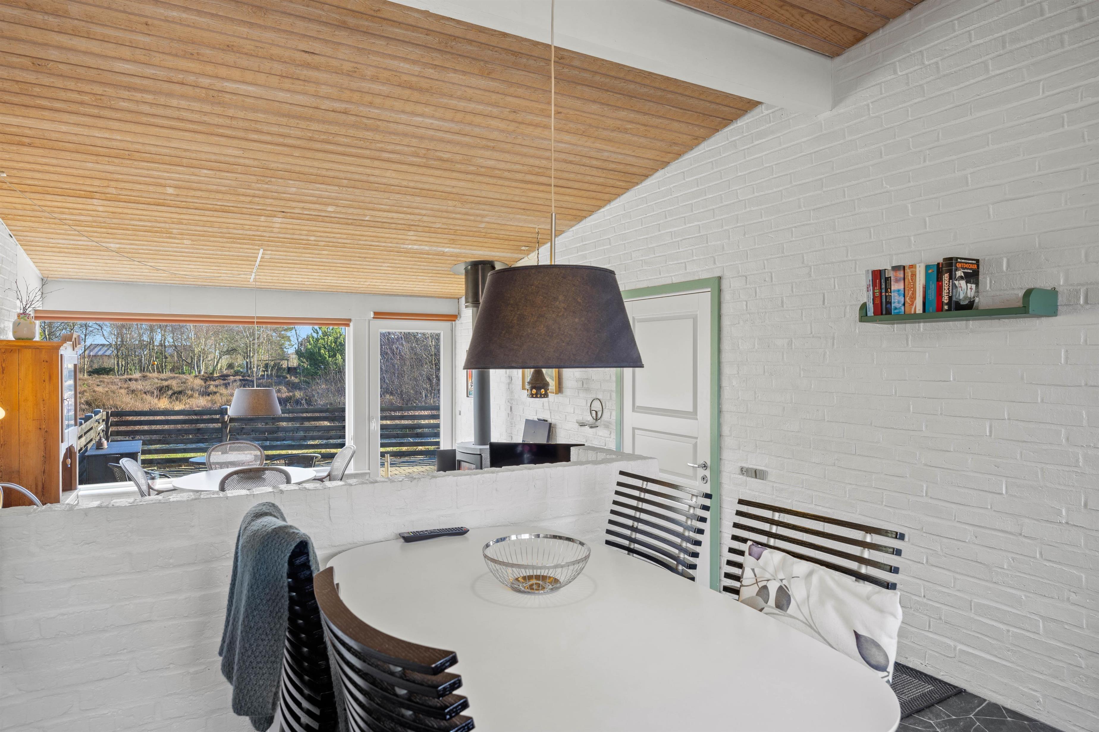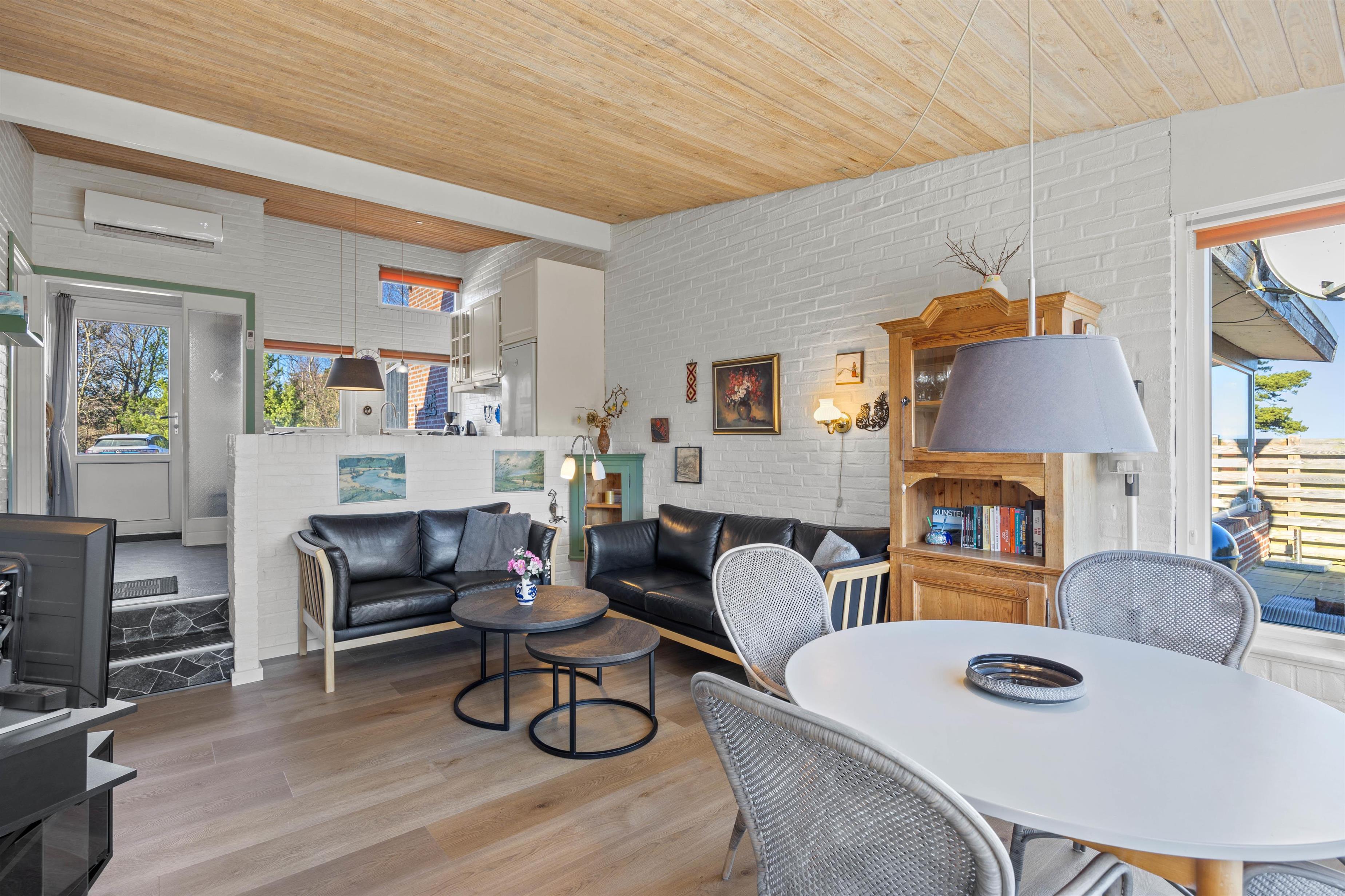 Nyd i stedet tiden med familien i stuen, der findes i forlængelse af køkkenet og kan nås via to trin. Her kan I slå jer ned i sofahjørnet, spille brætspil eller streame igennem feriehusets Chromecast. På de køligere dage kan I gøre brug af den energibesparende varmepumpe eller brændeovnen, der spreder varme og glæde. Fra stuen kan I åbne havedøren ud til den lukkede terrasse. Stuem har fået et flot trægulv.