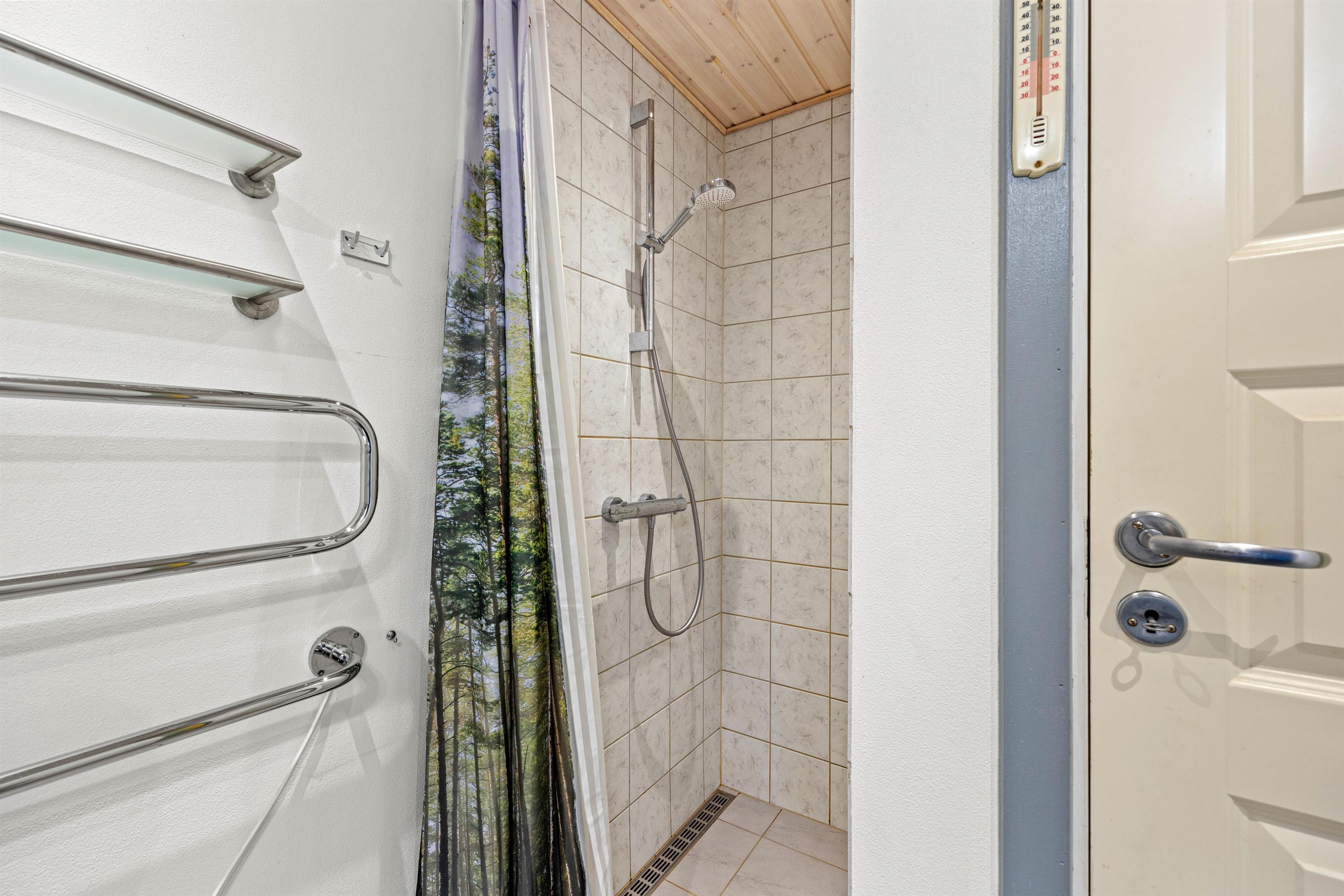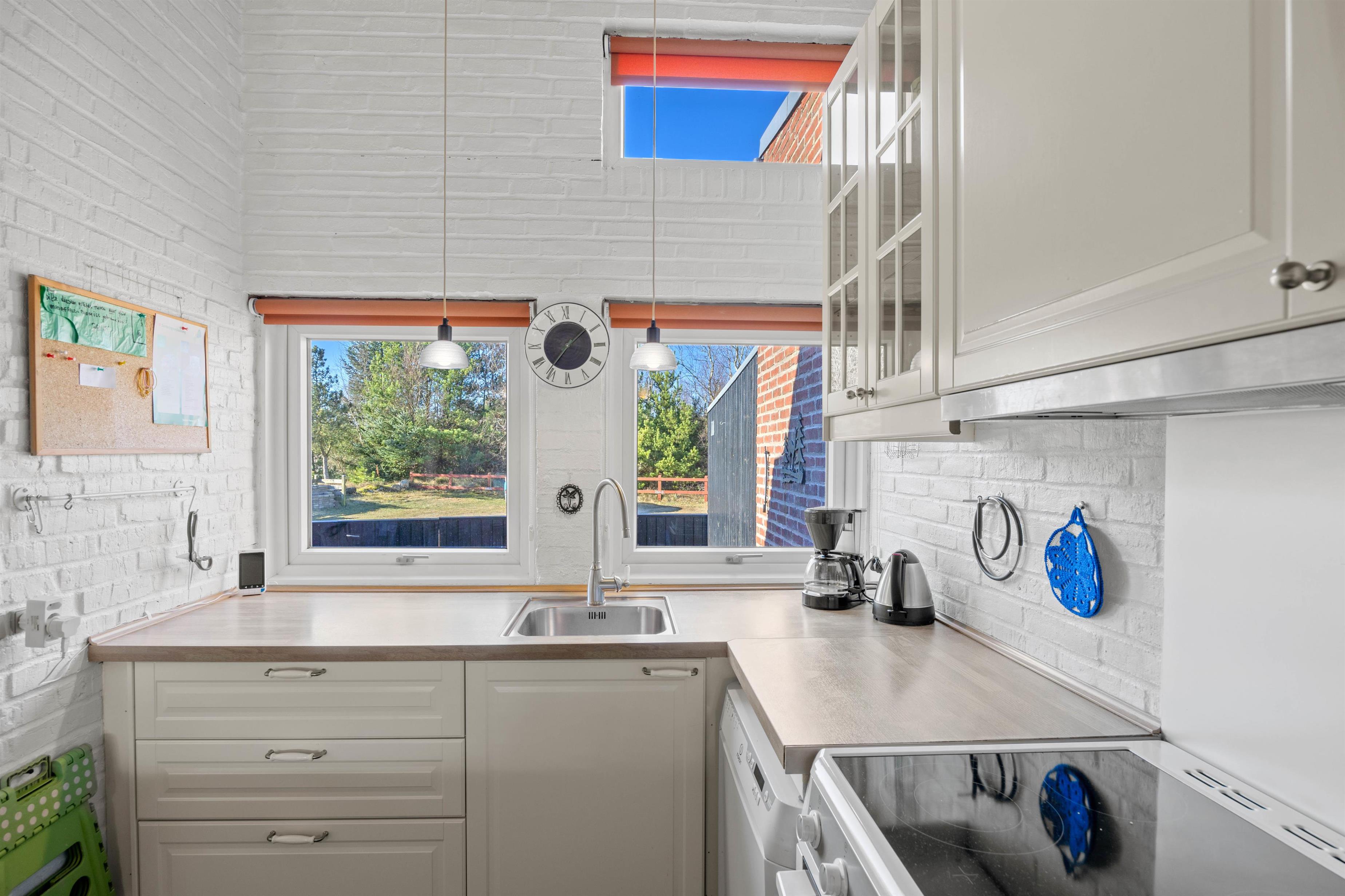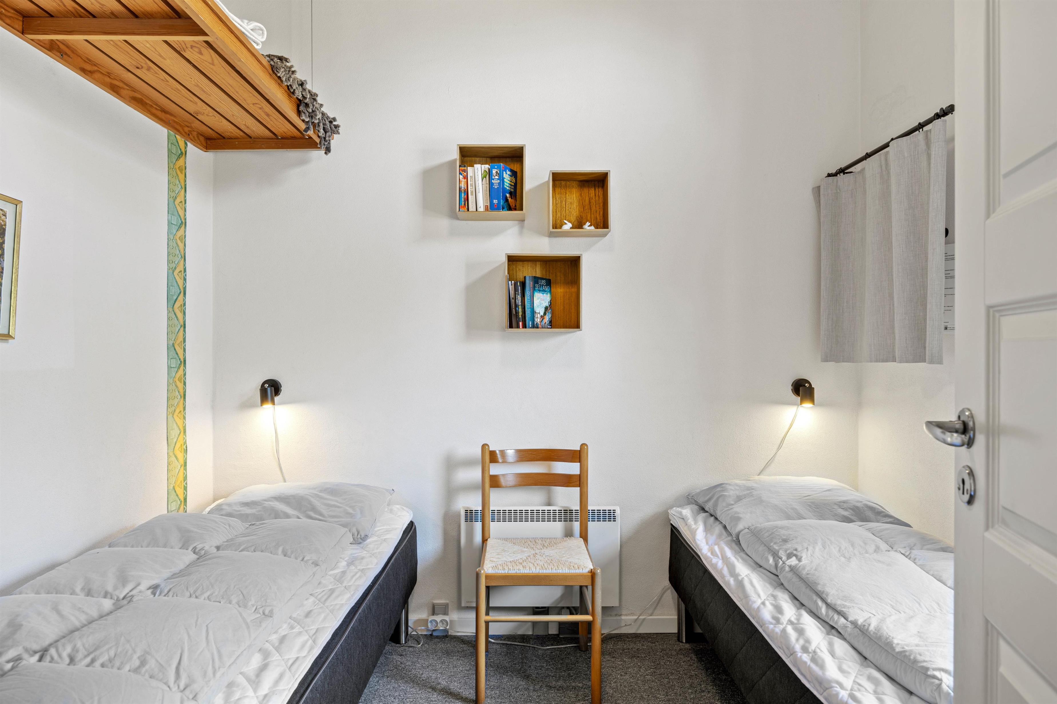 Nyd i stedet tiden med familien i stuen, der findes i forlængelse af køkkenet og kan nås via to trin. Her kan I slå jer ned i sofahjørnet, spille brætspil eller streame igennem feriehusets Chromecast. På de køligere dage kan I gøre brug af den energibesparende varmepumpe eller brændeovnen, der spreder varme og glæde. Fra stuen kan I åbne havedøren ud til den lukkede terrasse. Stuem har fået et flot trægulv.