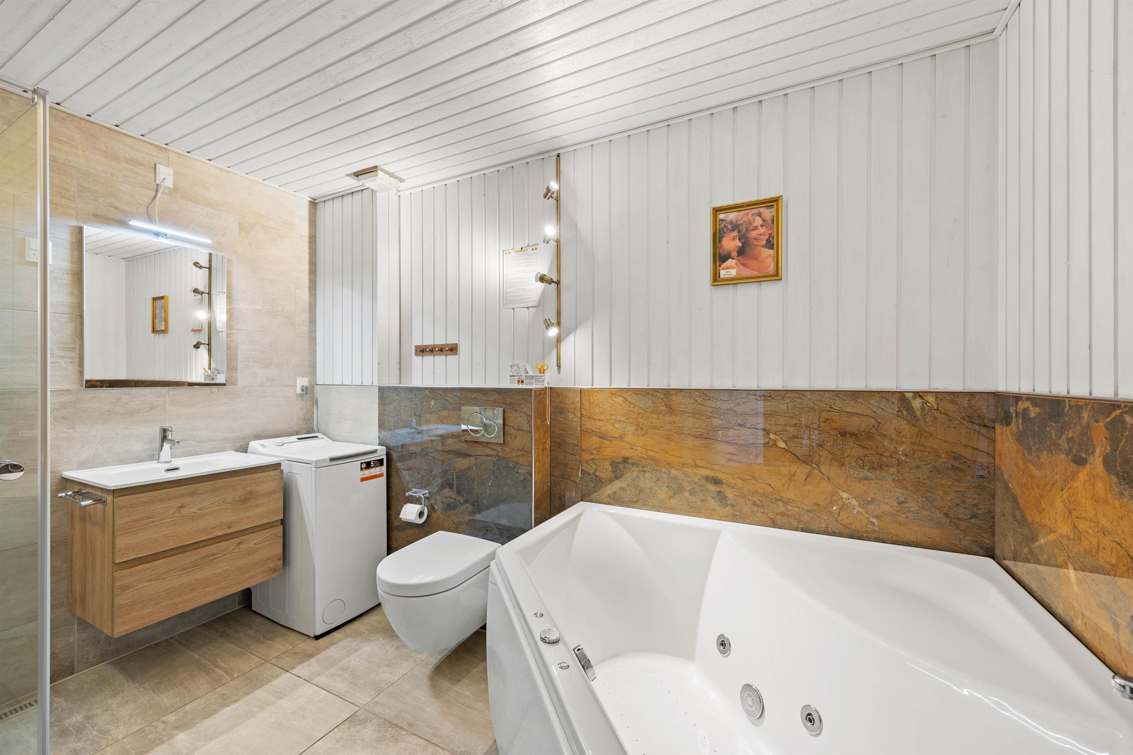 Når I træder ind, bydes I velkommen af et lyst og indbydende interiør, der med sin velafstemte indretning skaber en behagelig atmosfære, hvor roen mærkes i hvert hjørne. Den hyggelige stue, udstyret med et fladskærms-TV og en radio, danner rammen om de stille stunder, hvor I kan slappe af og nyde underholdningen. Lejligheden er designet, så I nemt kan tilberede lækre måltider i det veludstyrede køkken. Her med opvaskemaskine, et køleskab med integreret frostboks og et moderne el-komfur med ovn, som I derefter kan nyde sammen om aftenen, mens stemningen indbyder til samvær og hygge. De komfortable soveværelser, med bløde gulvtæpper, sikrer, at både børn og voksne får en god nats søvn, så I vågner op til endnu en dag i et hjem, der udstråler varme og tryghed. Som prikken over i’et finder I en sauna og et spabad til 2 personer i badeværelset. Luksuriøse tilføjelser, der giver jer mulighed for at slappe af og lade op efter en aktiv dag. Vestergade 3D byder på en harmonisk blanding af praktiske løsninger og hyggelige detaljer, der tilsammen skaber et ferieparadis, hvor alle kan finde ro og velvære.