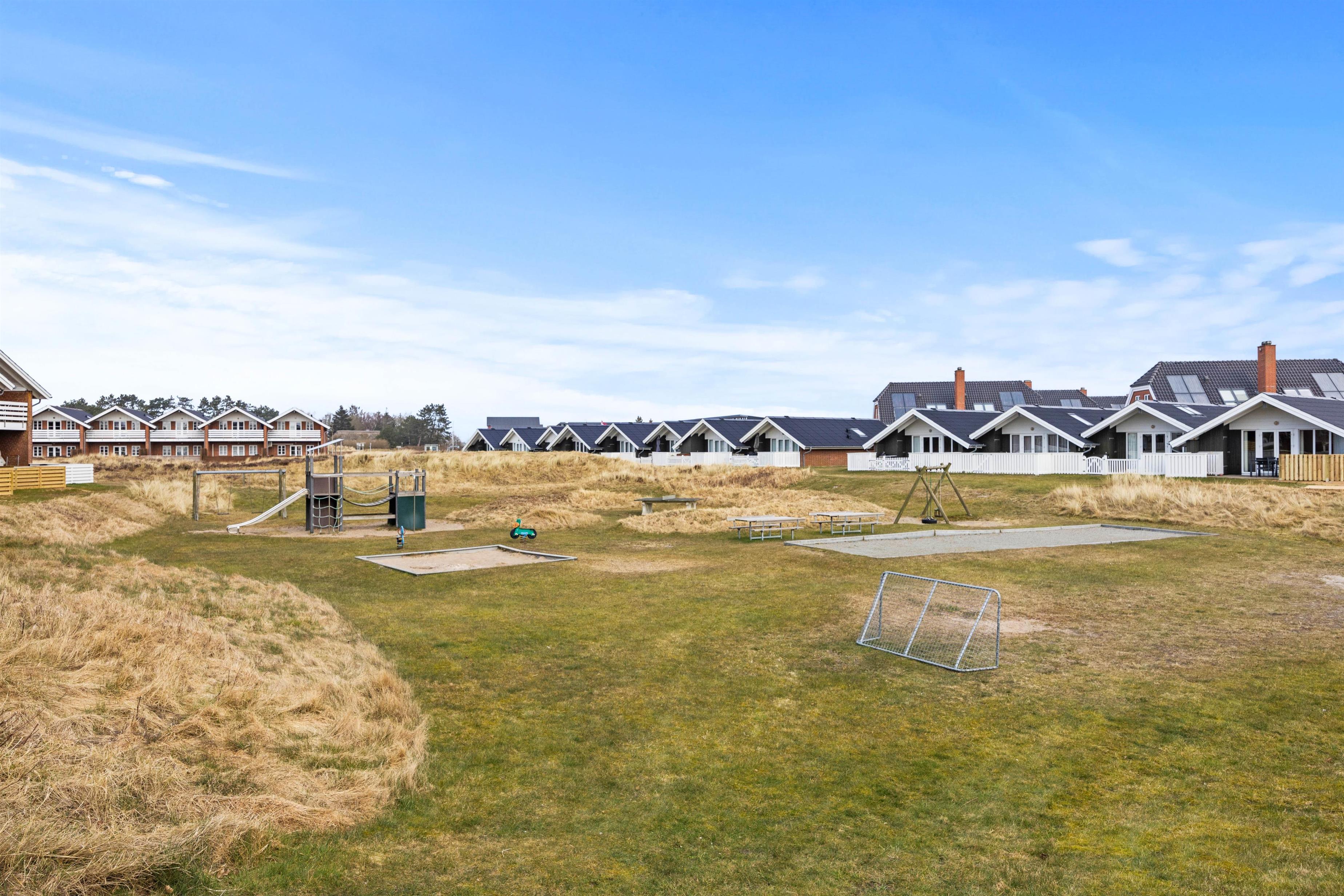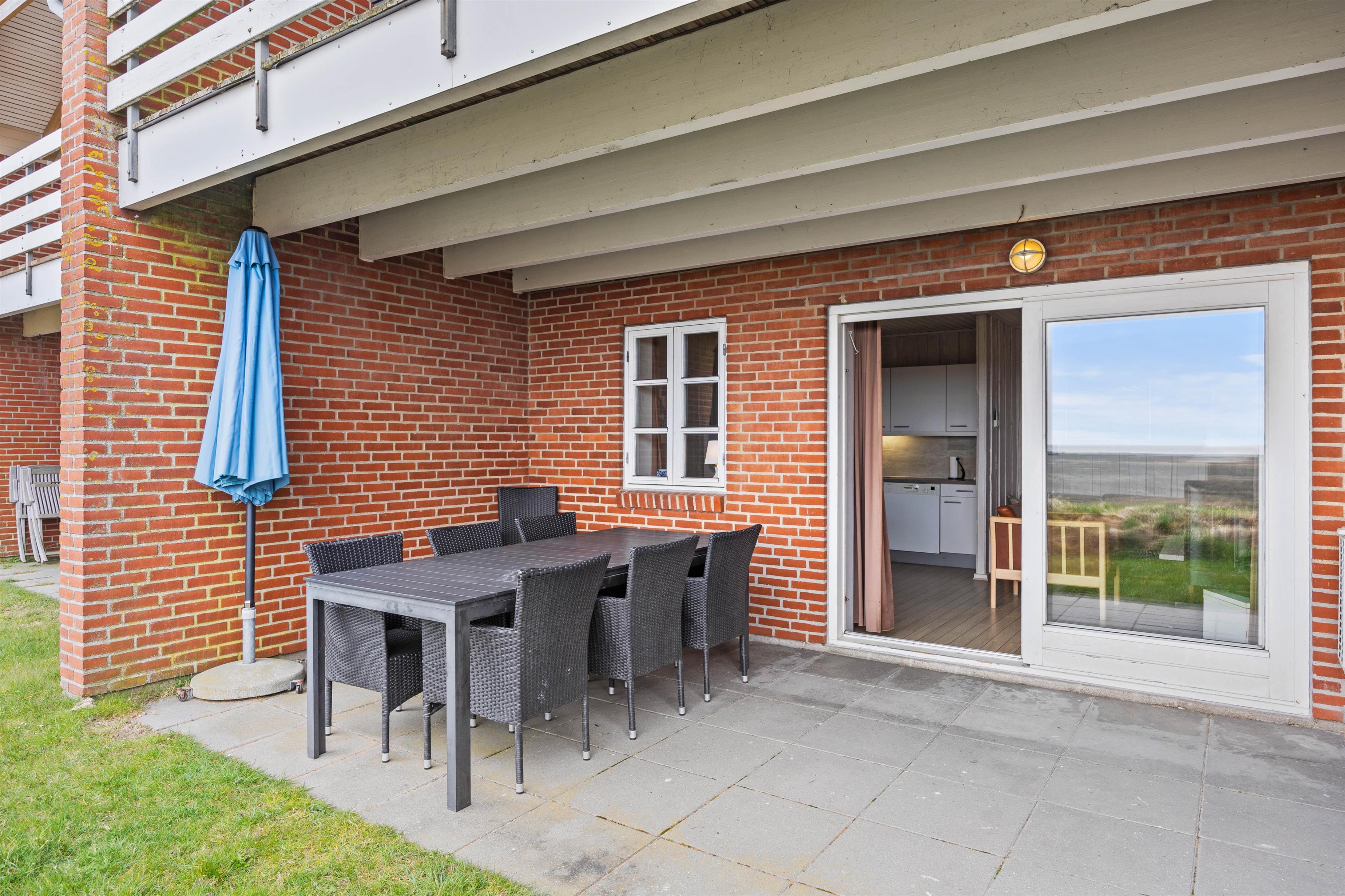 Udenfor fortsætter oplevelsen hvor både en overdækket terrasse med behagelige havemøbler og en grill indbyder til lange, afslappende sommeraftener i det fri. Her kan I samle venner og familie omkring et fælles måltid under den åbne himmel, mens den kølige brise og den naturlige stemning skaber den perfekte ramme for uforglemmelige stunder. Den store, naturlige grund, der udgør en essentiel del af lejlighedens charme, giver rig mulighed for leg, spil og fritidsaktiviteter, hvor I i ro og mag kan nyde de friske omgivelser.