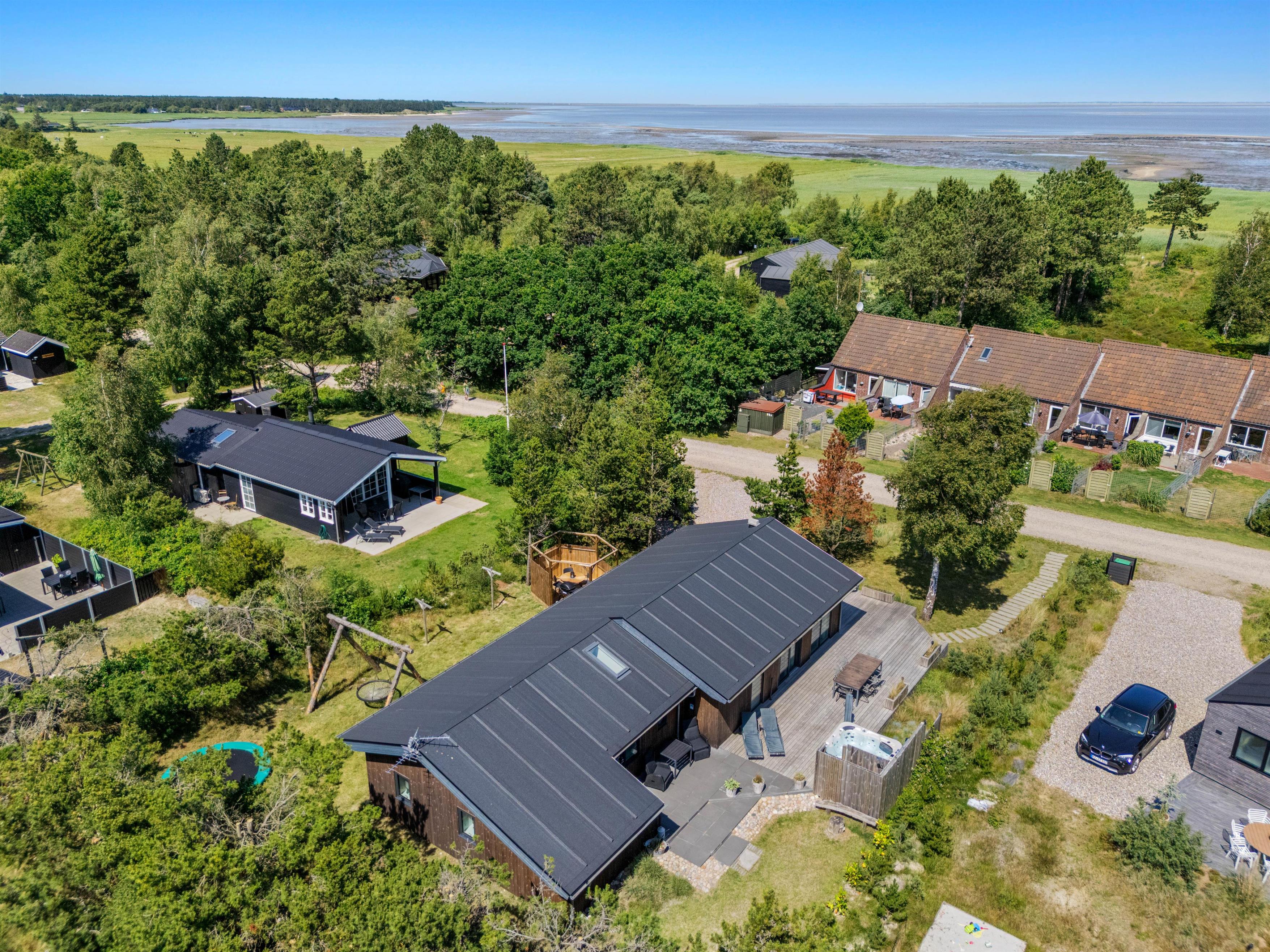 Stor terrasse med udespa og udebruser med panoramaudsigt over vadehavet.