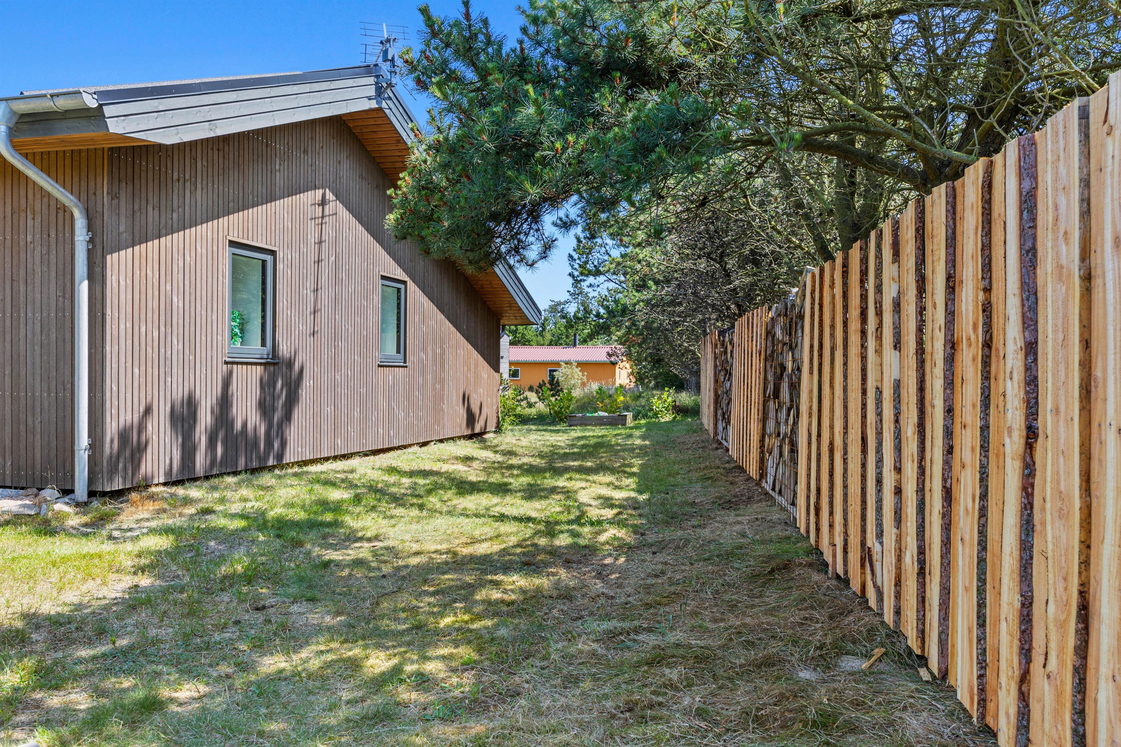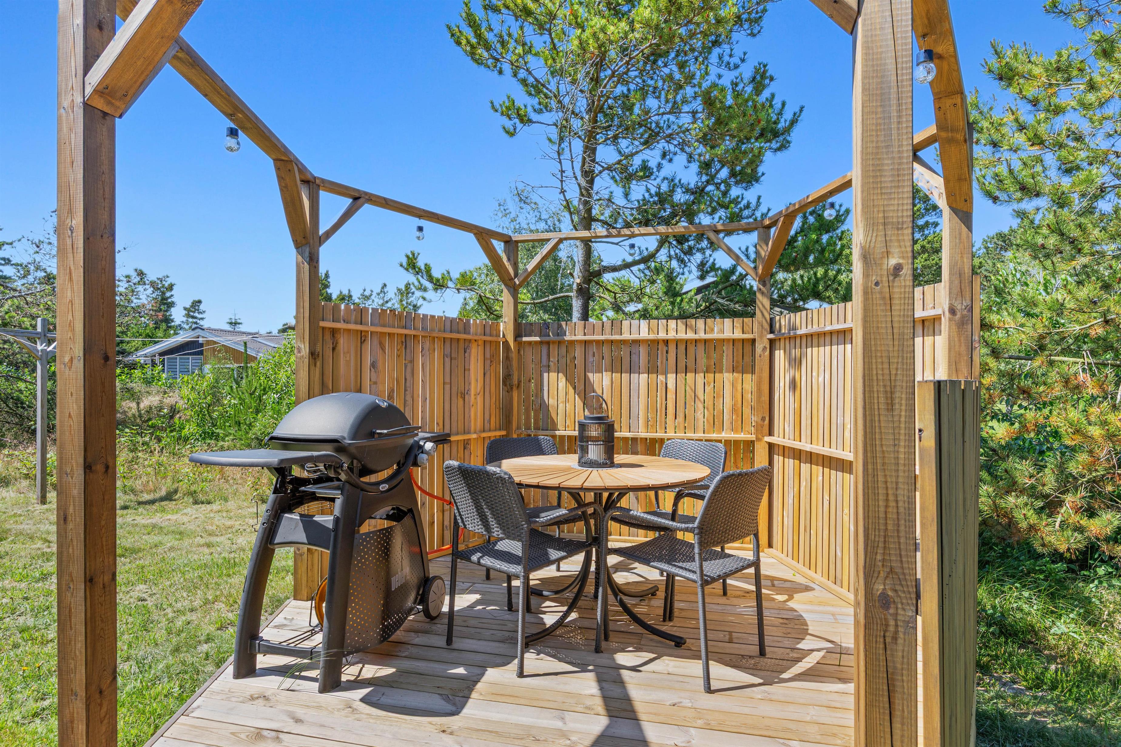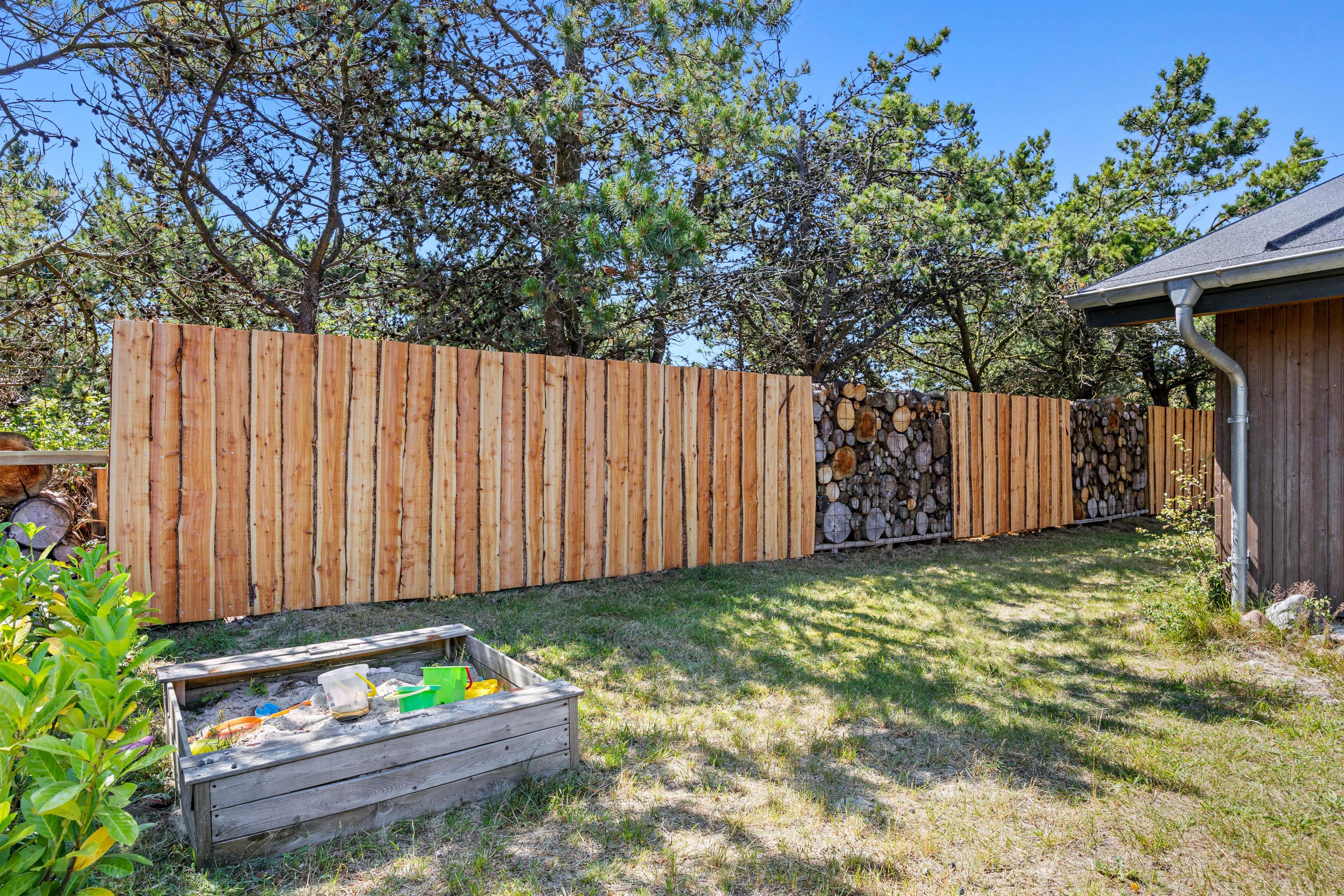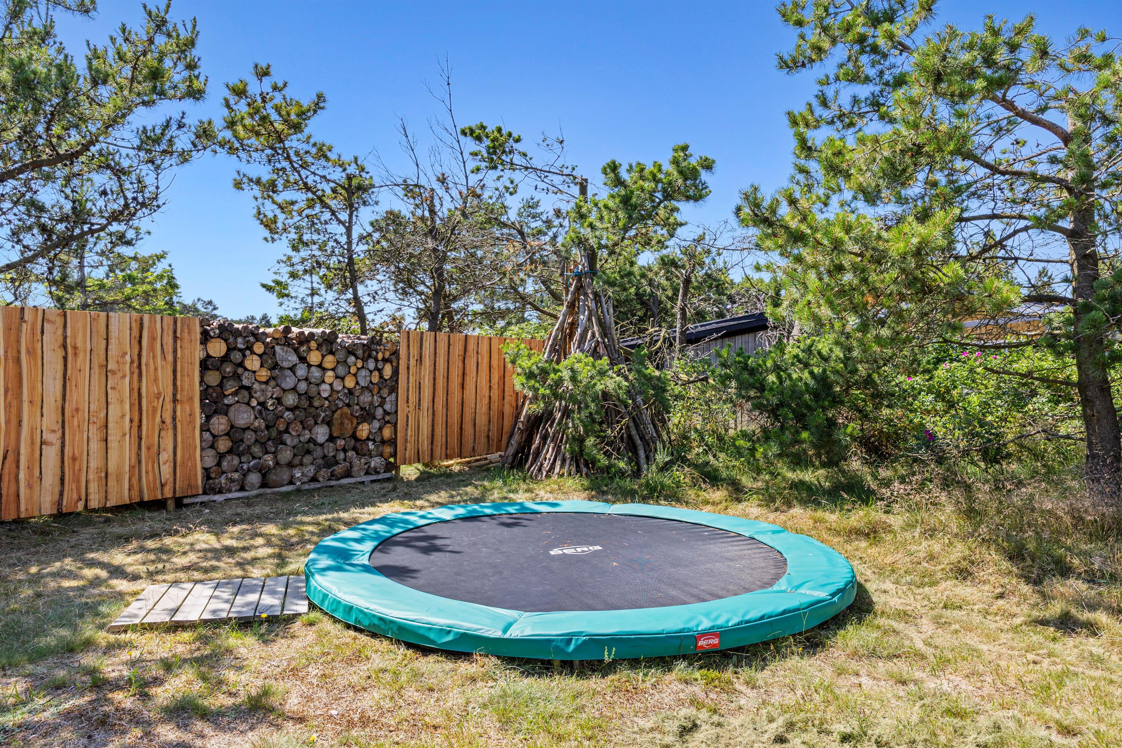 Sommerhusets udeareal indbyder til gode stunder med familien på lune sommerdage. Her kan I nyde eftermiddagskaffen og grille dagens måltider, mens børnene spiller bold og hygger sig i haven. Til familiens yngste er der både trampolin og gyngestativ.
