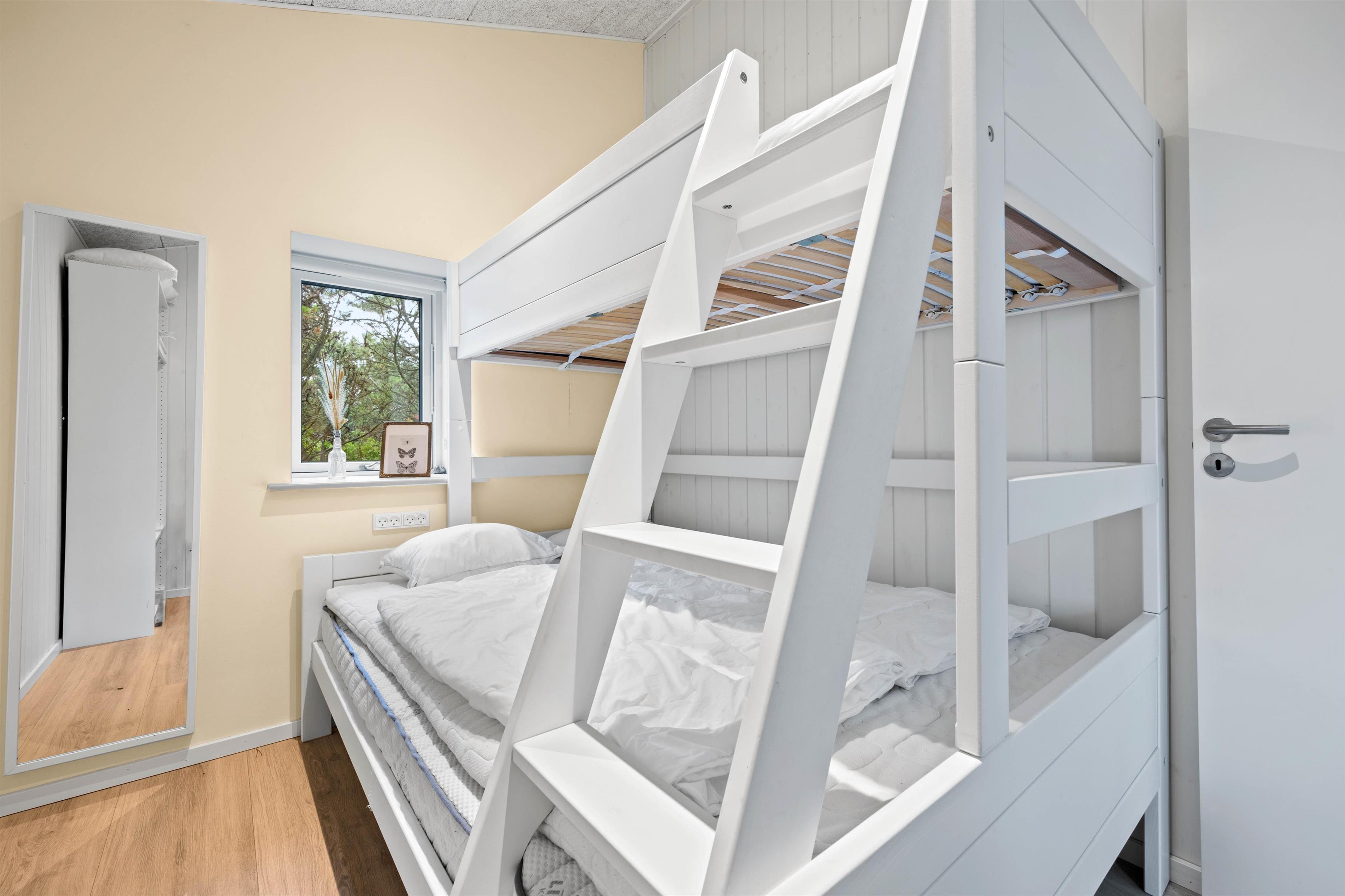 Også sommerhusets badeværelse og gæstetoilet er lyst og moderne indrettet. Her kommer I ikke til at fryse om tæerne efter badet, da der er gulvvarme. Til natten kan I fordele jer på de 3 gode og rummelige soveværelser, der alle er indrettet med komfortable senge til en god nats søvn.