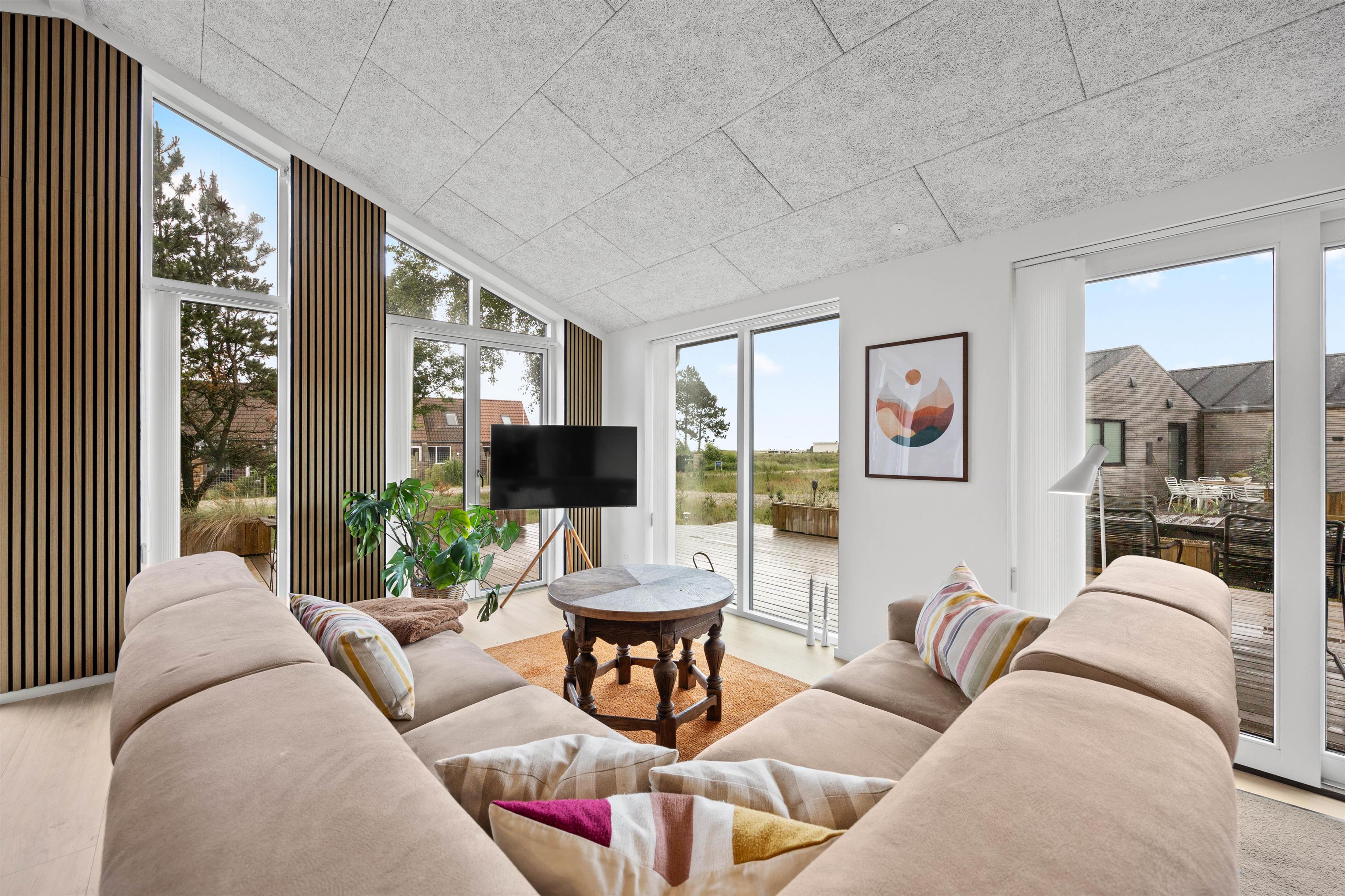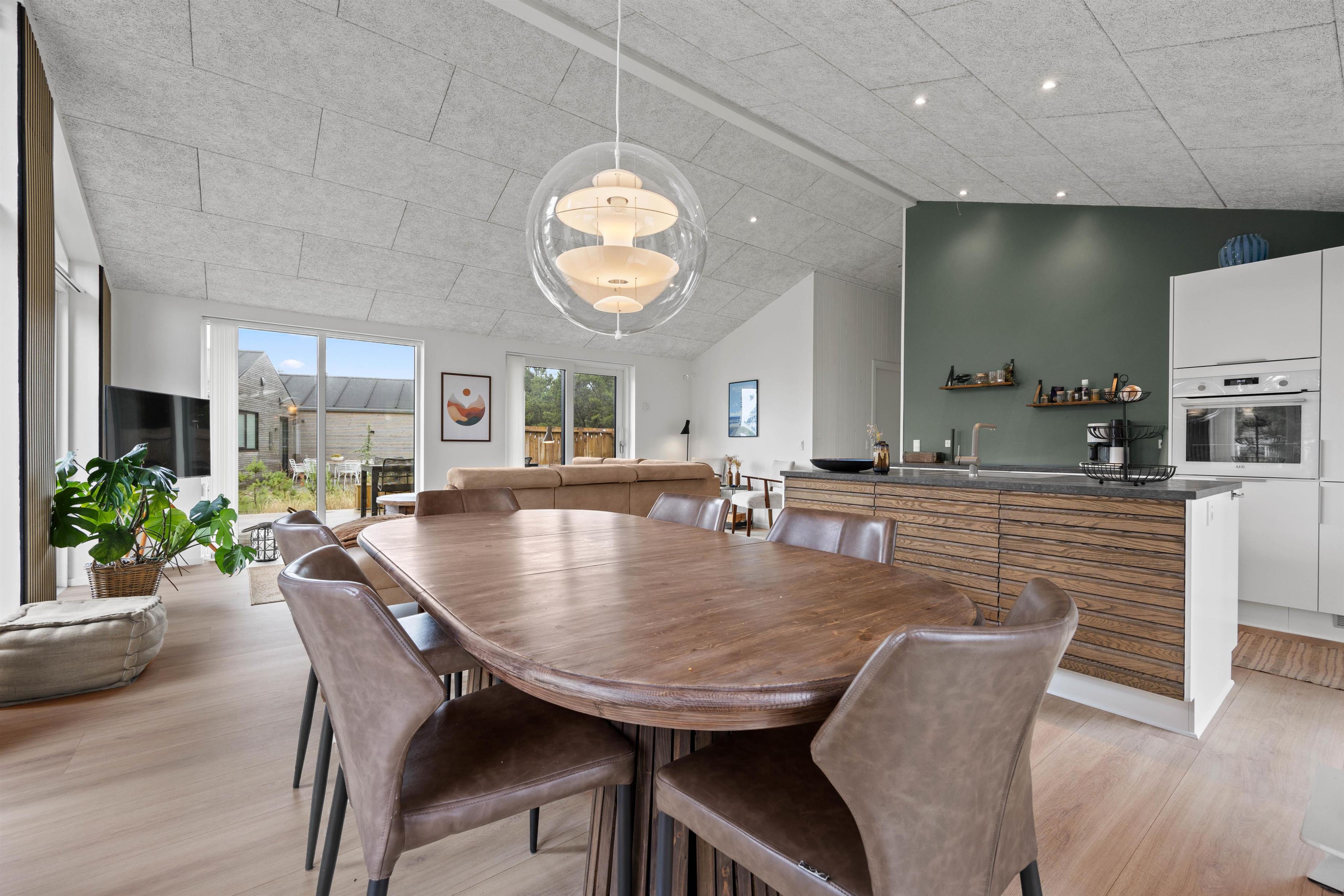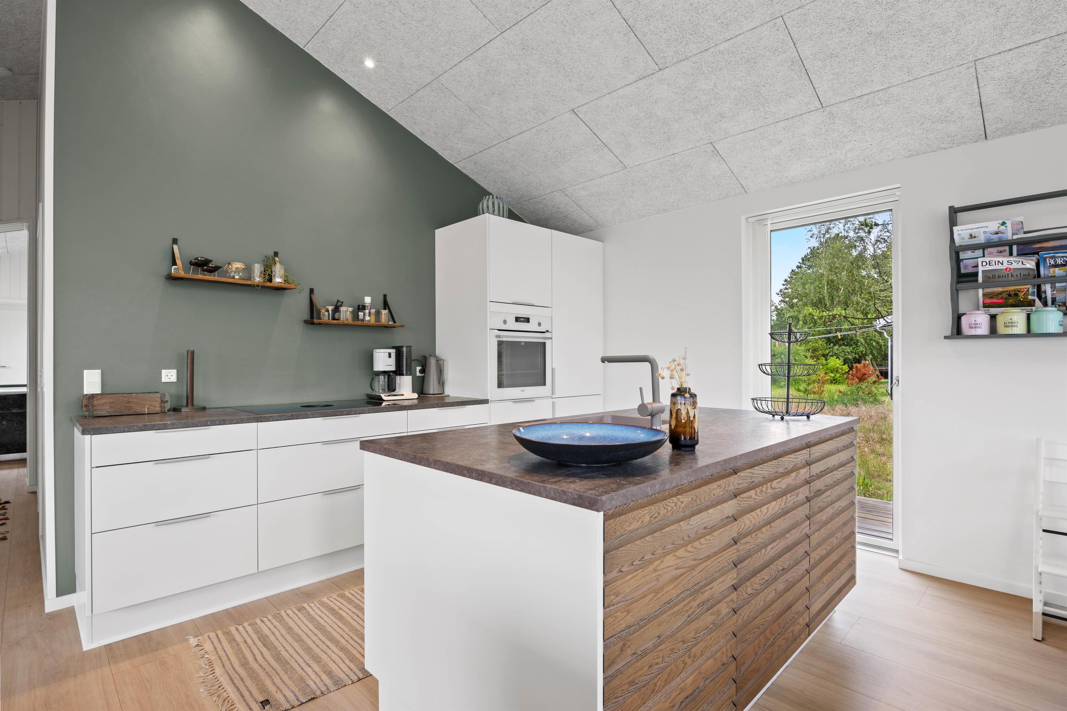 Sommerhuset er opført i 2022 og fremstår lyst og indbydende. Huset er tegnet og bygget af husejeren. De store vinduespartier i alrummet skaber et godt lysindfald, og her vil I hurtigt føle jer hjemme i den moderne indretning. Den åbne planløsning garanterer, at hele familien kan samles til hyggelige stunder i løbet af ferien; Selv når nogle kokkerer i køkkenet og andre slapper af på sofaen eller spiller kort ved spisebordet. Der er gulvvarme over hele huset.