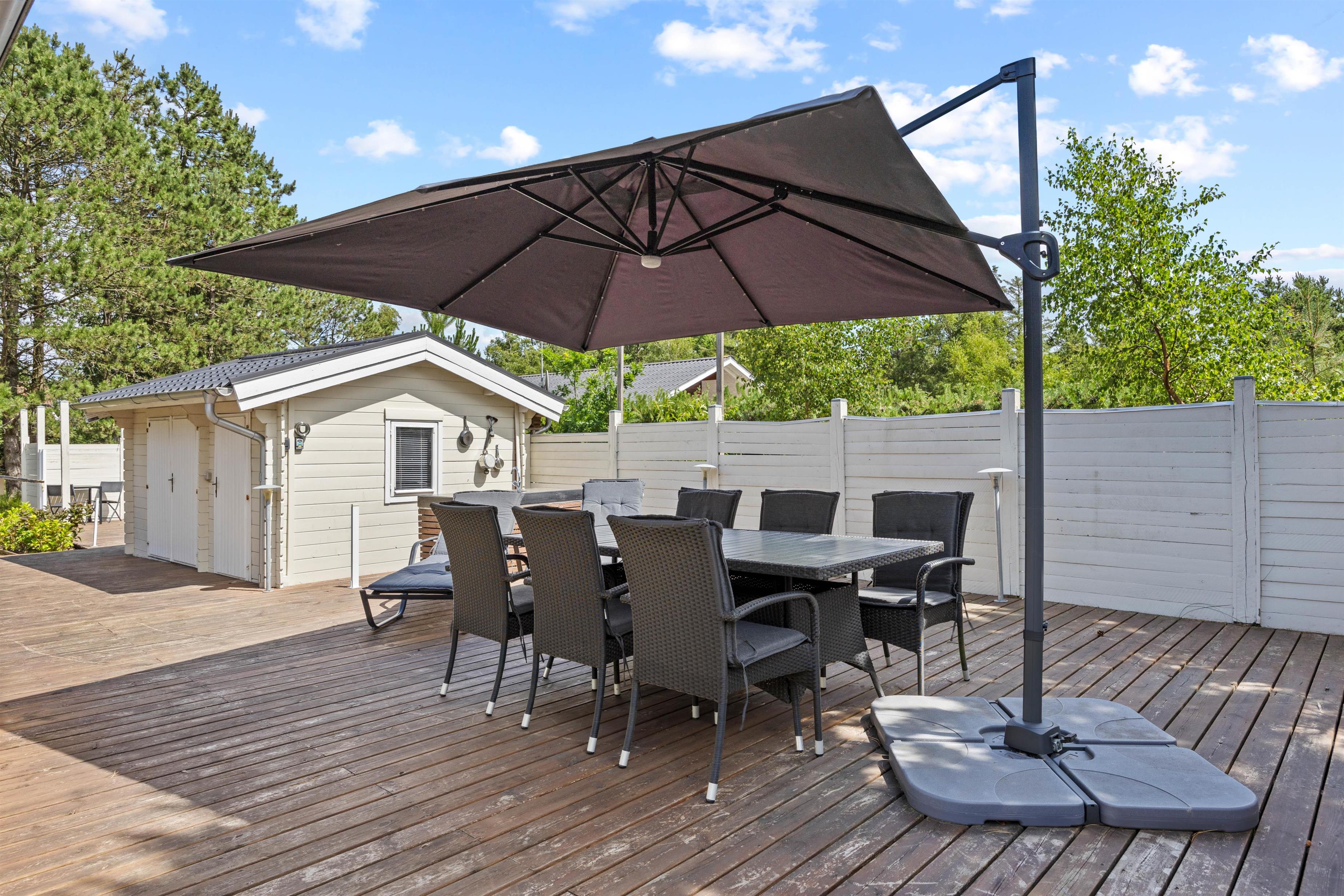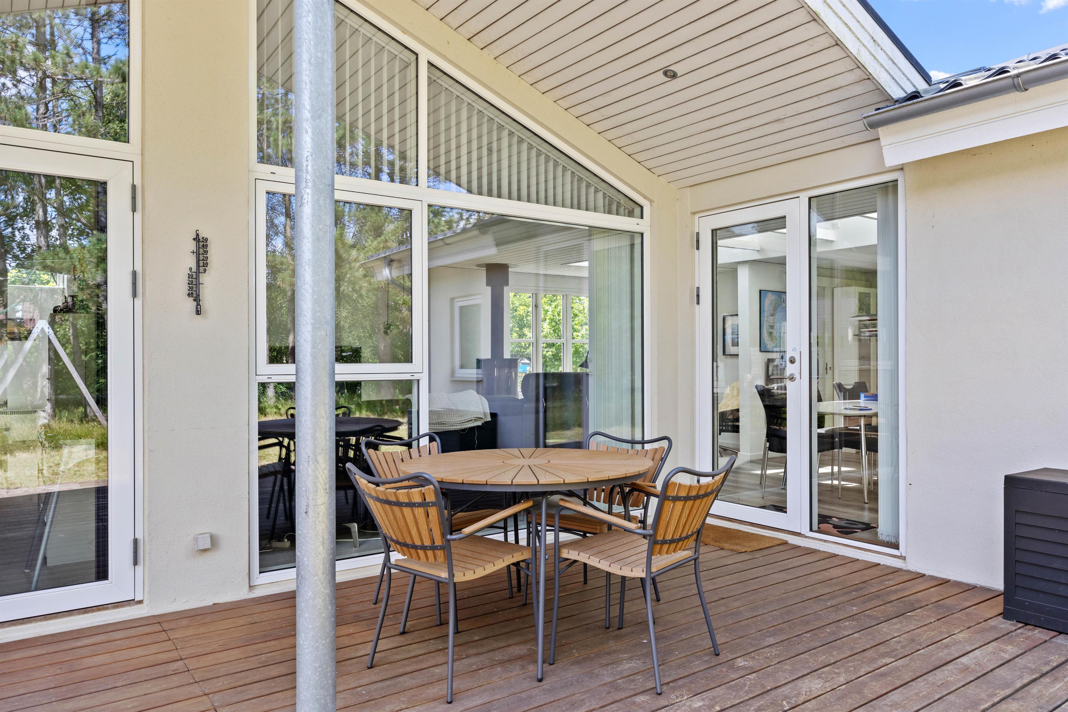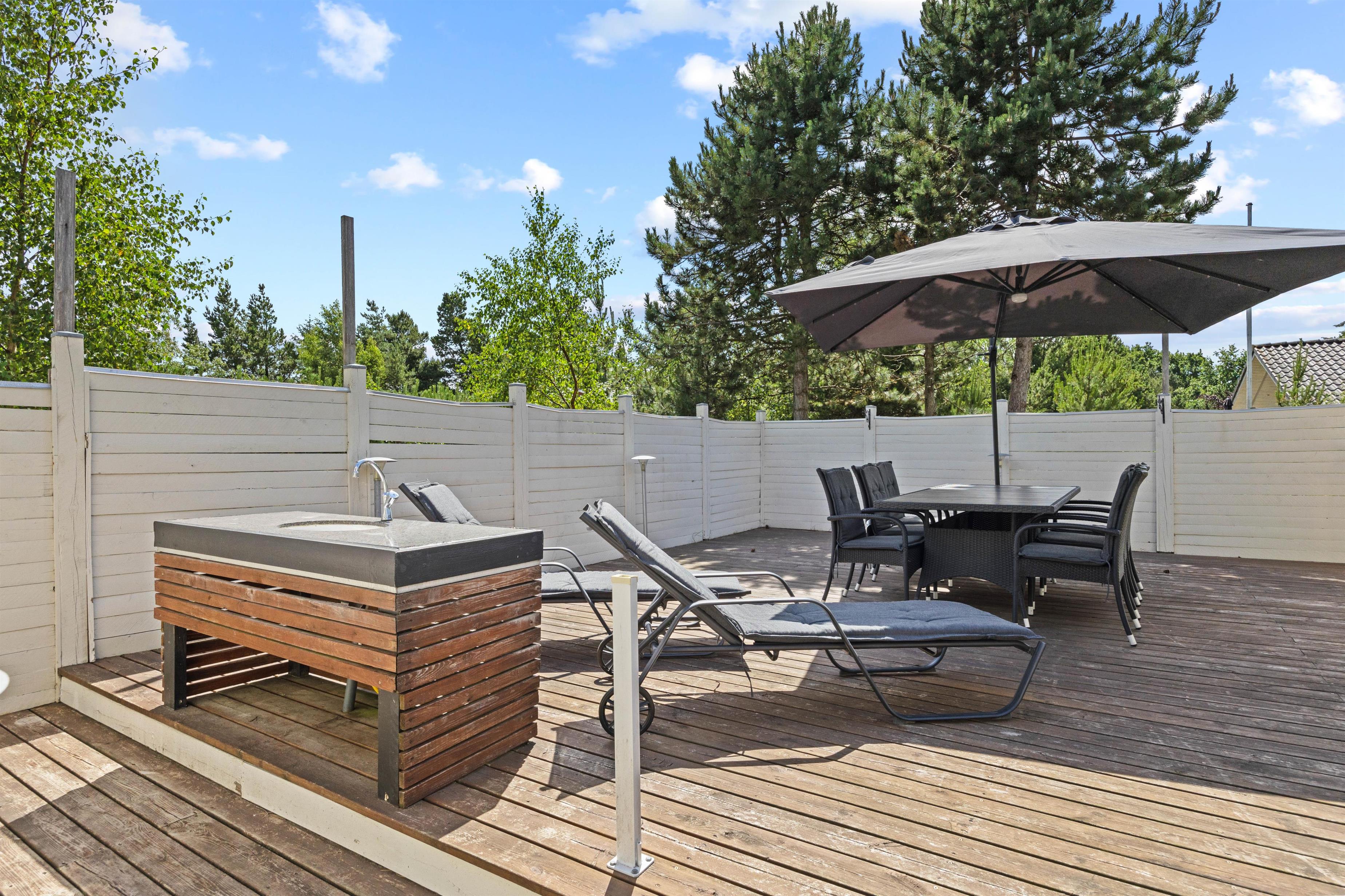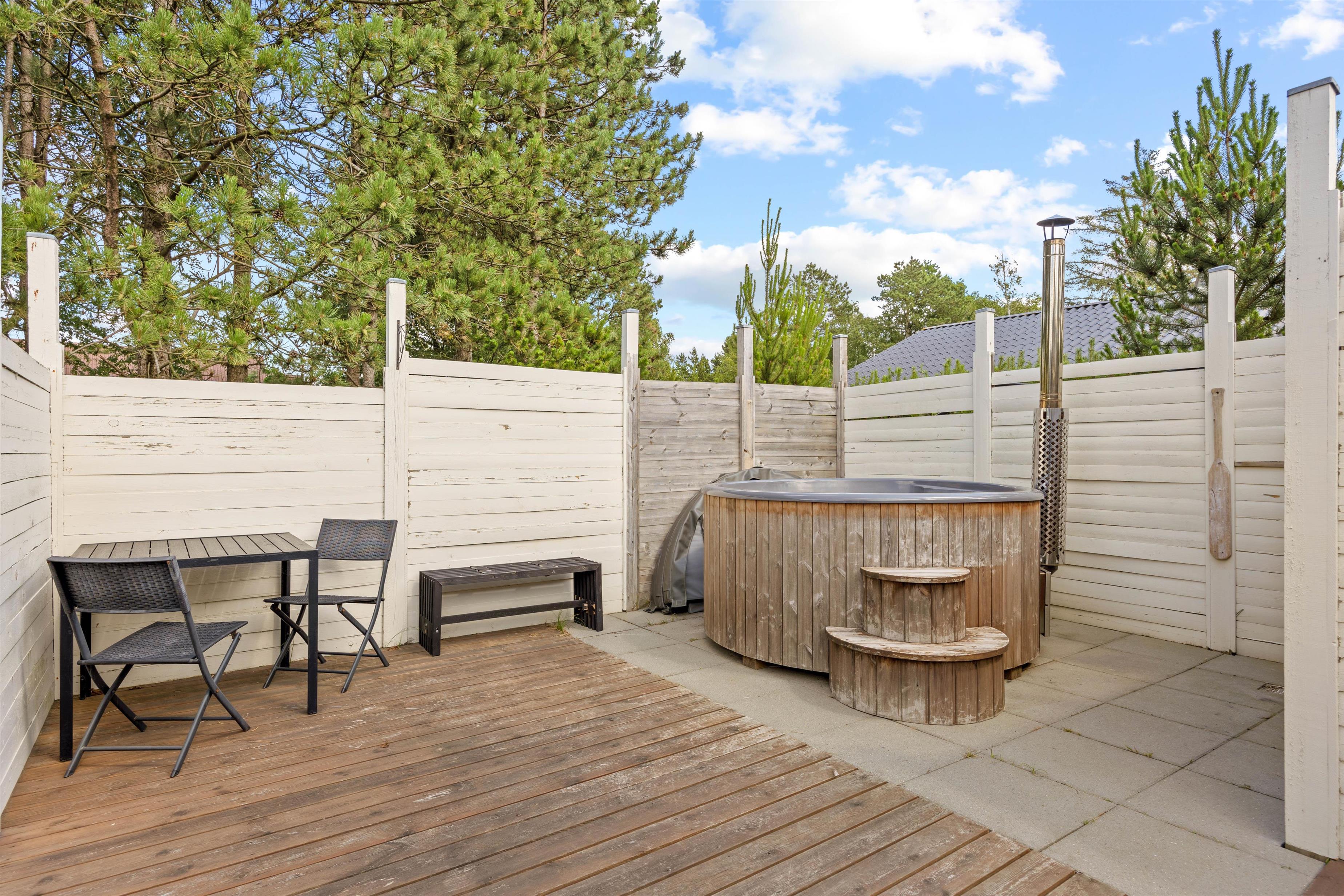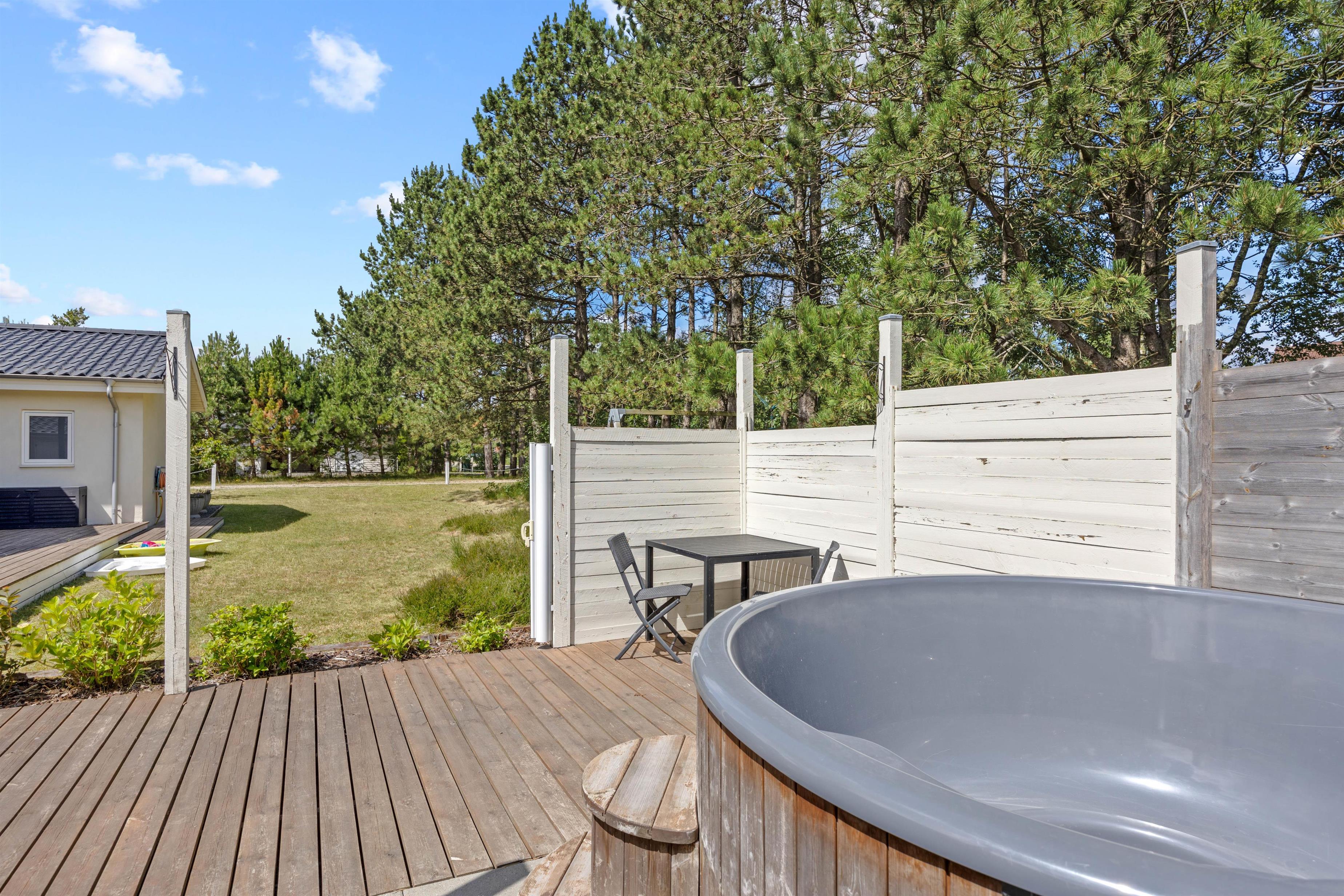 Noget af det bedste ved dette sommerhus i Havneby på Rømø er den overdækkede terrasse. Her kan I nyde morgenkaffen eller en god middag, uanset vejret. For dem, der elsker en smule eventyr eller ekstra komfort, er der et dejligt vildmarksbad, hvor I kan slappe af og nyde de omkringliggende omgivelser. Børnene vil begejstres over trampolinen, der giver rig mulighed for at brænde energi af.