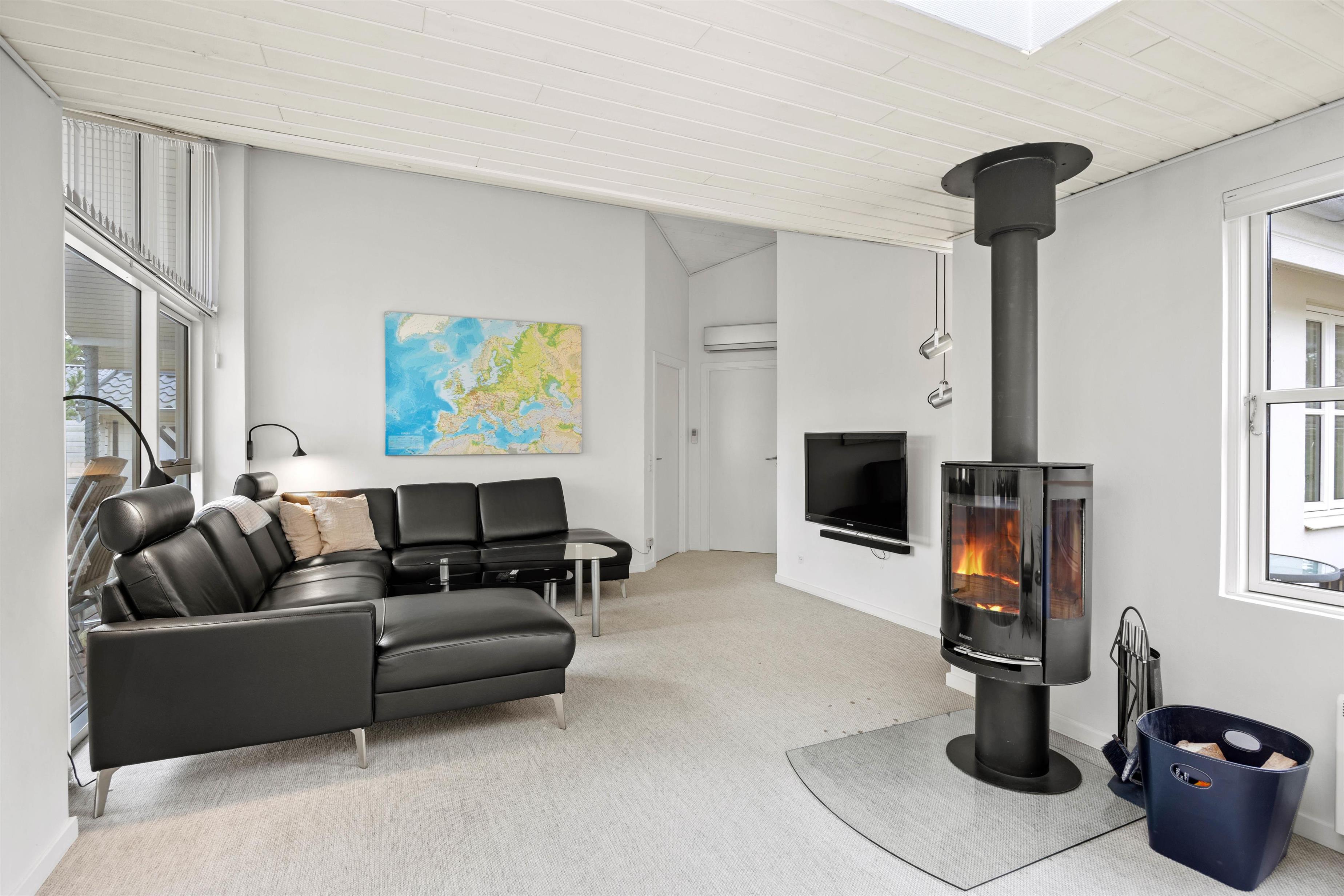 Med et rummeligt boligareal på 110 m2 er der masser af plads til op til 7 personer i dette indbydende sommerhus. De 3 lyse soverum sikrer, at alle har deres egen komfortable soveplads. Sommerhuset er udstyret med alle nødvendige faciliteter for at gøre jeres ophold så behageligt som muligt, herunder en brændeovn til de kølige aftener og gulvvarme på badeværelset, der giver en ekstra varm start på dagen.