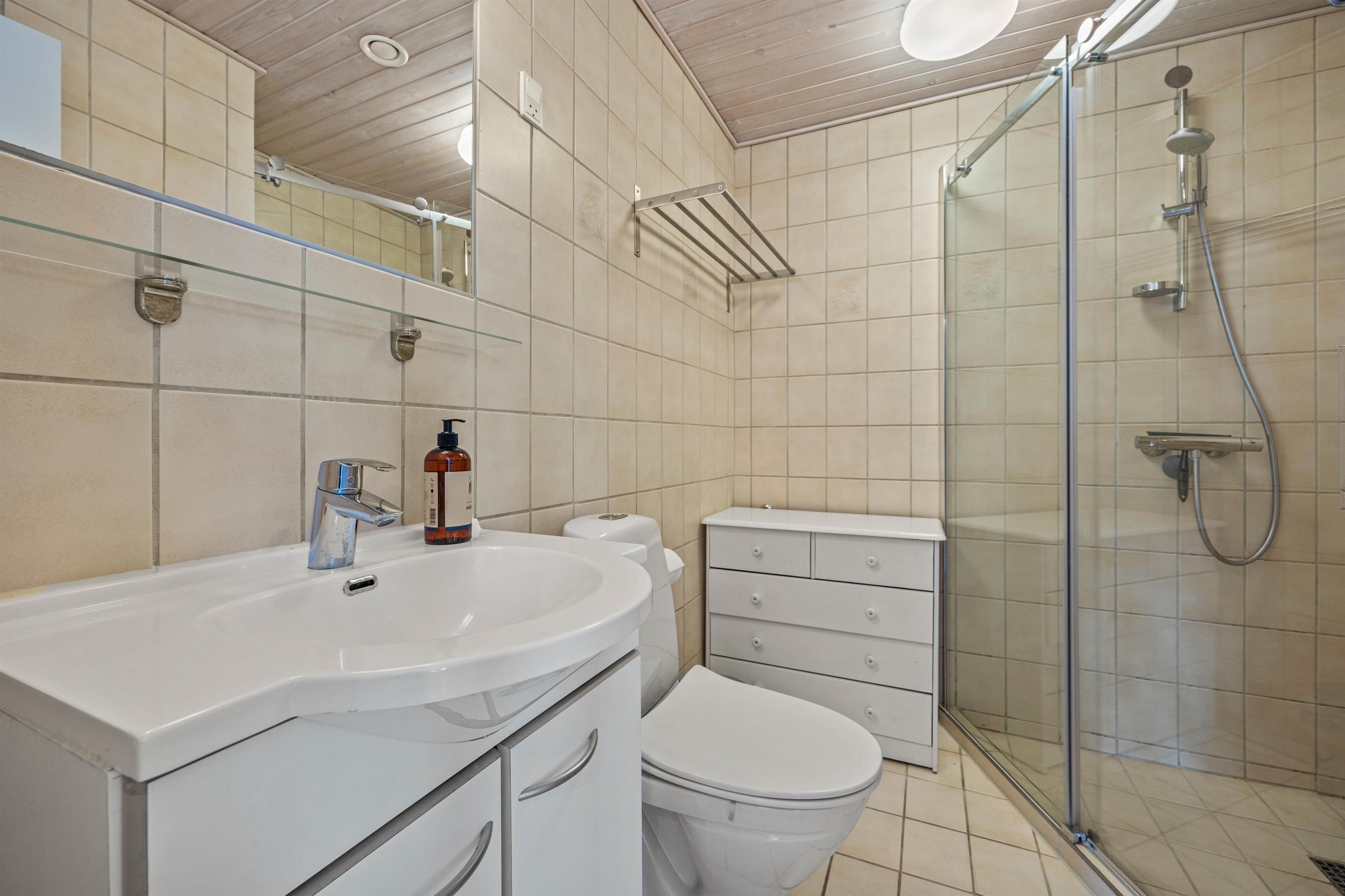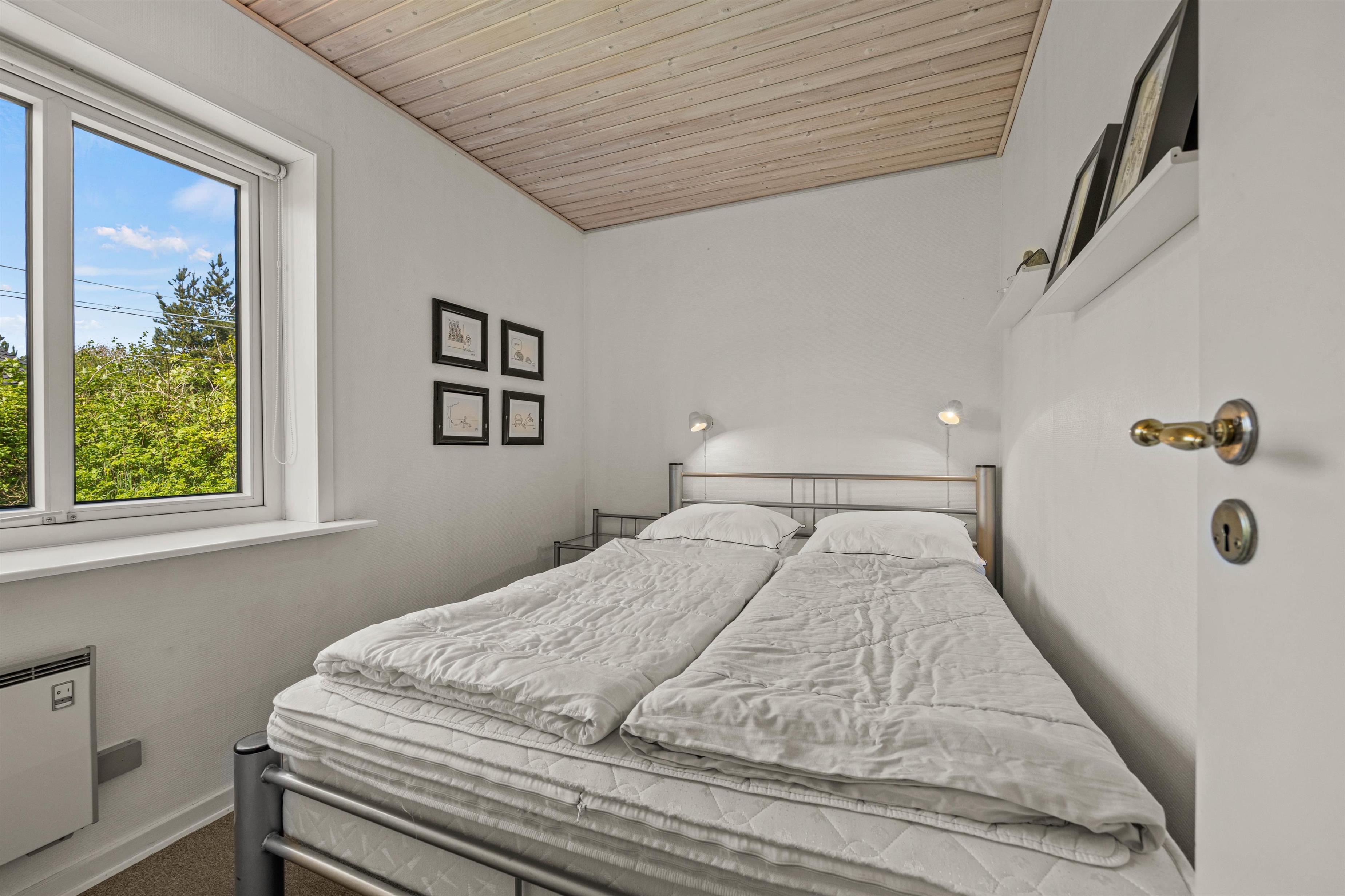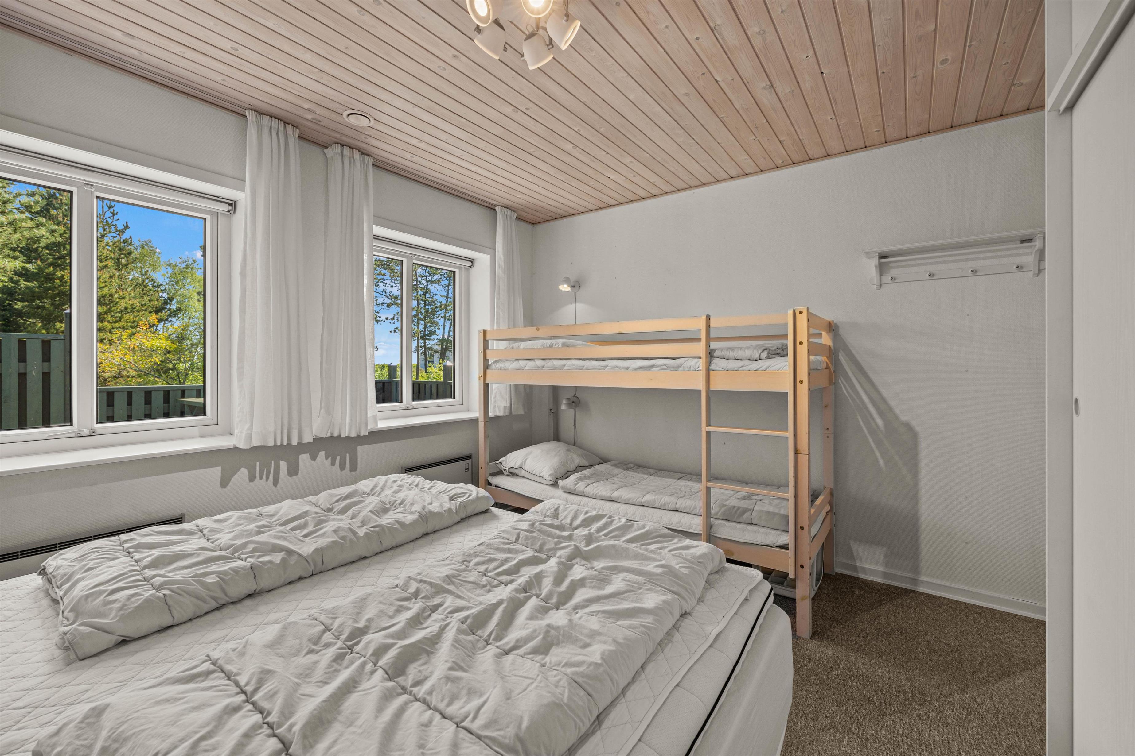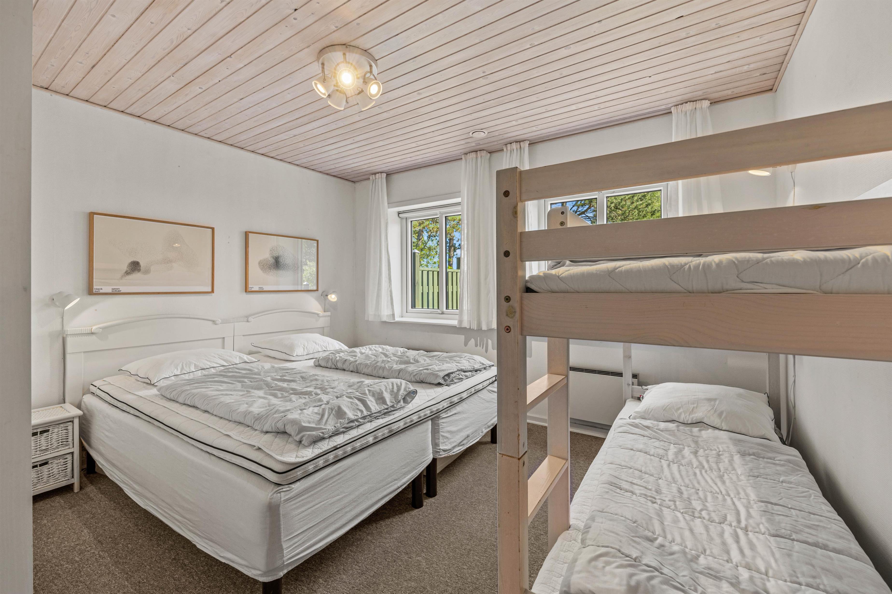 Der er 2 soveværelser med komfortable dobbeltsenge – i det ene er yderligere køjesenge, så man kan lave et ”børneværelse”, hvis børnene gerne vil sove sammen. Badeværelset har gulvvarme, og I har også vaskemaskine og tørretumbler tilgængelig i sommerhuset, så I kan opfriske garderoben eller håndklæderne i løbet af ferien. Den omkostnings- og energibesparende varmepumpe sørger for en behagelige temperaturer i feriehuset.