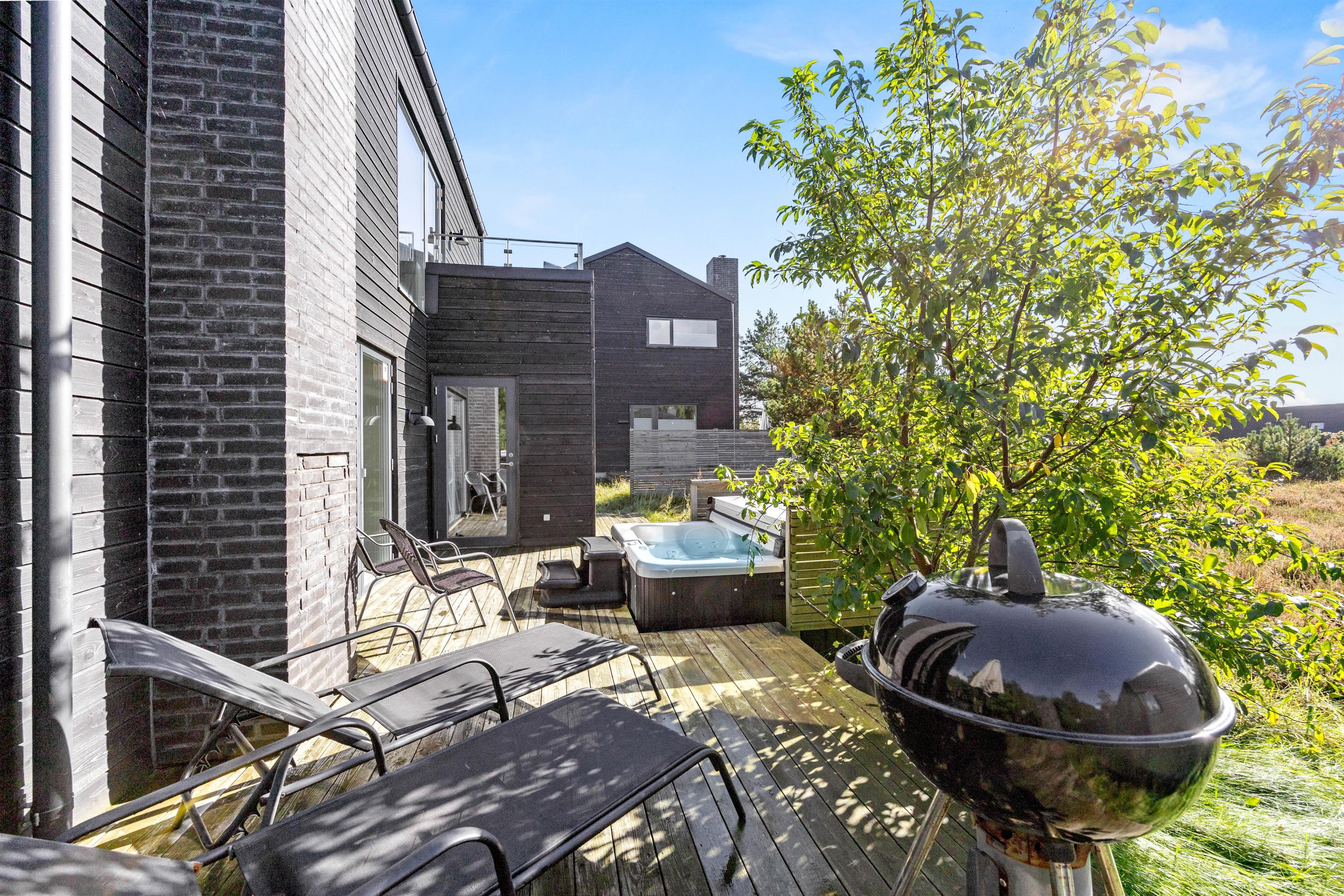 Terrassen indbyder til ren afslapning – hop i udespaens varme vand og lad de varme bobler massere – et perfekt afbræk fra den travle hverdag.