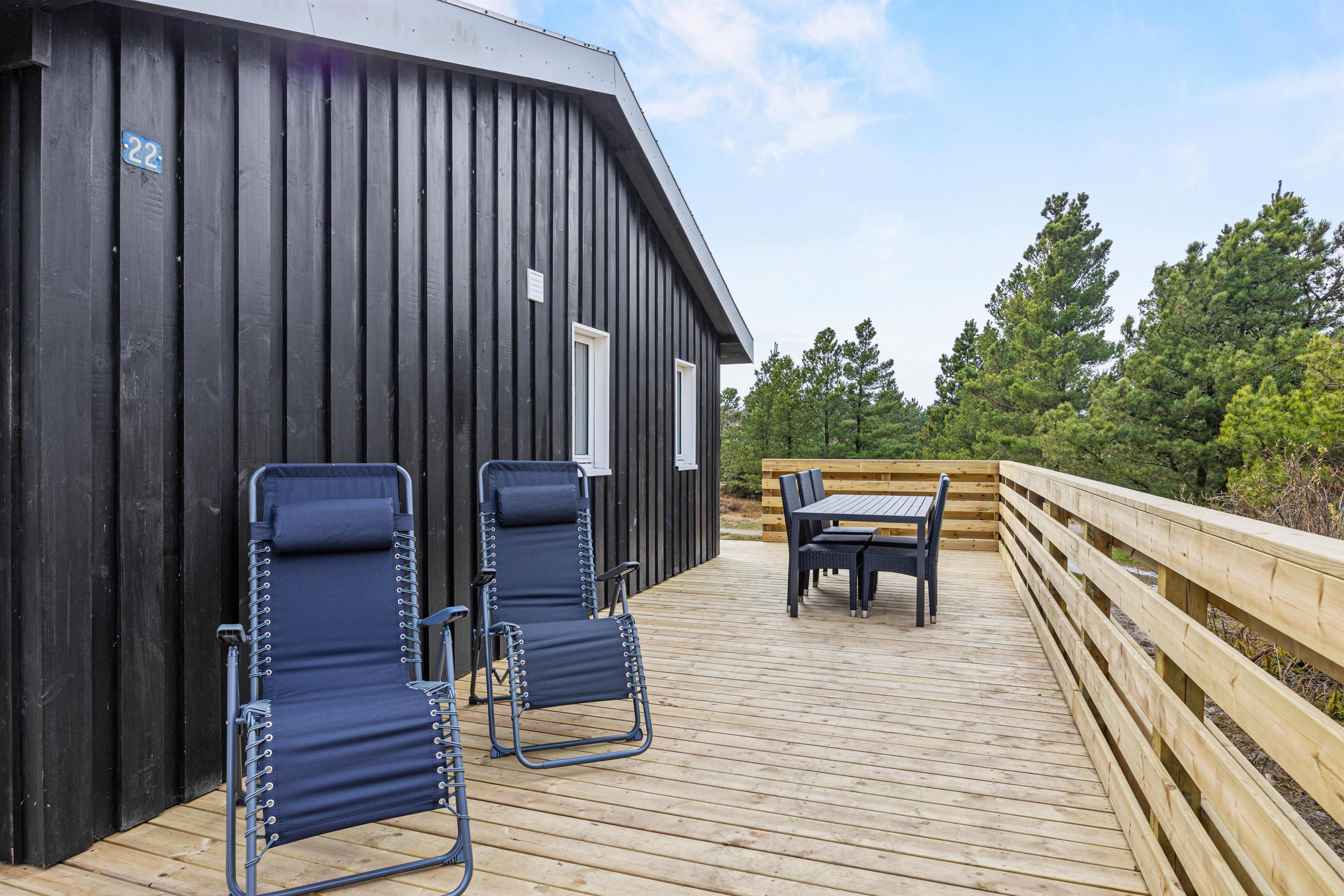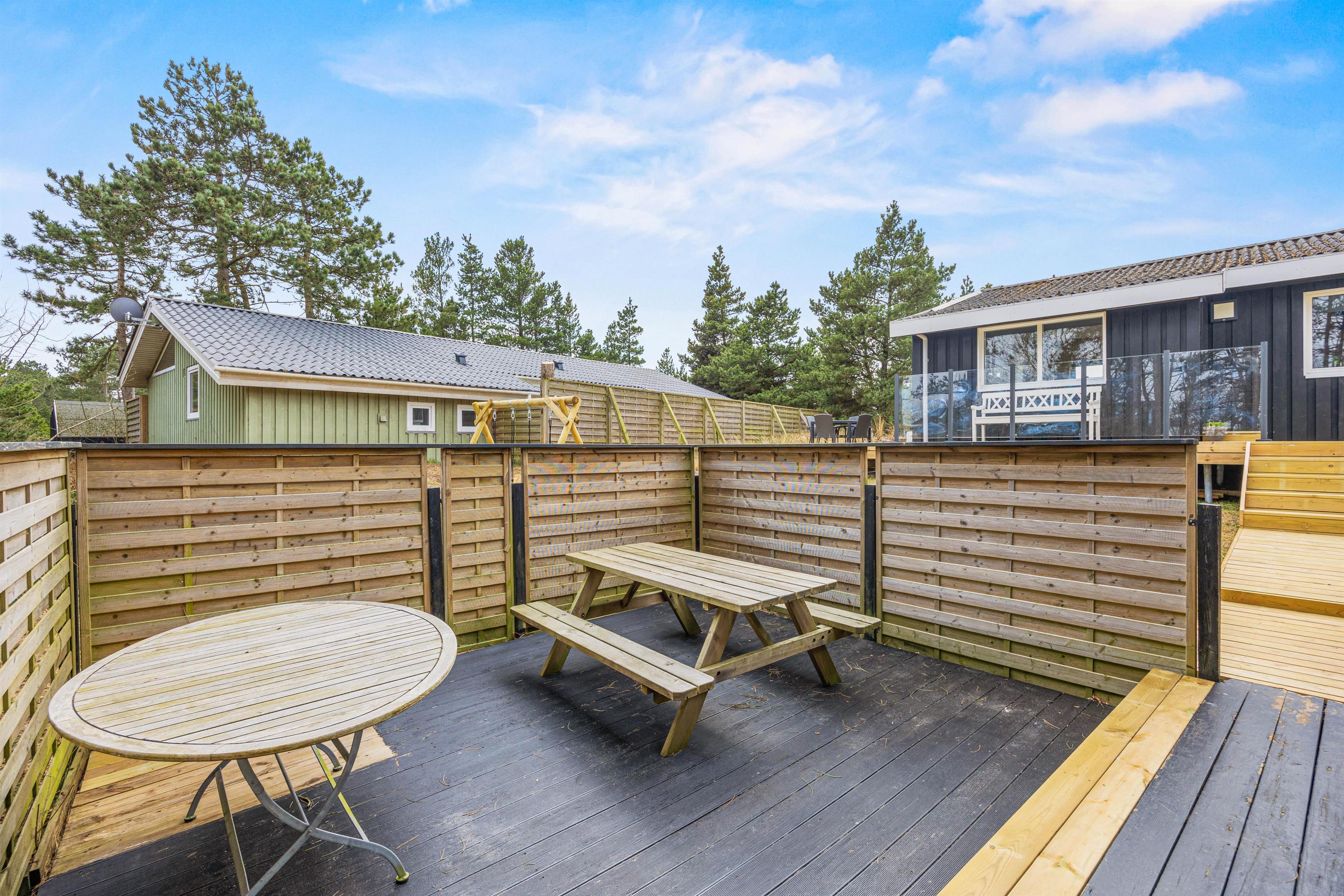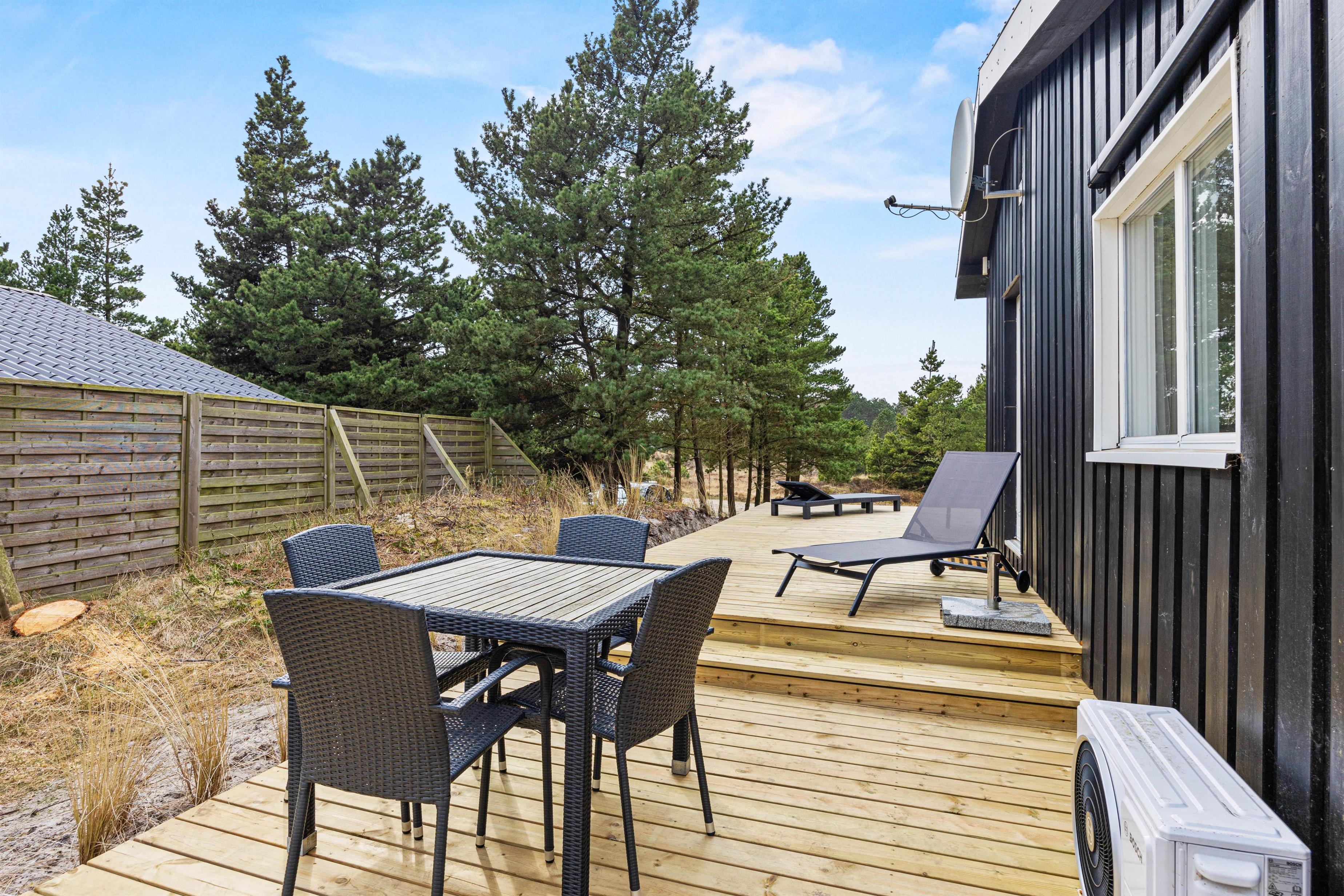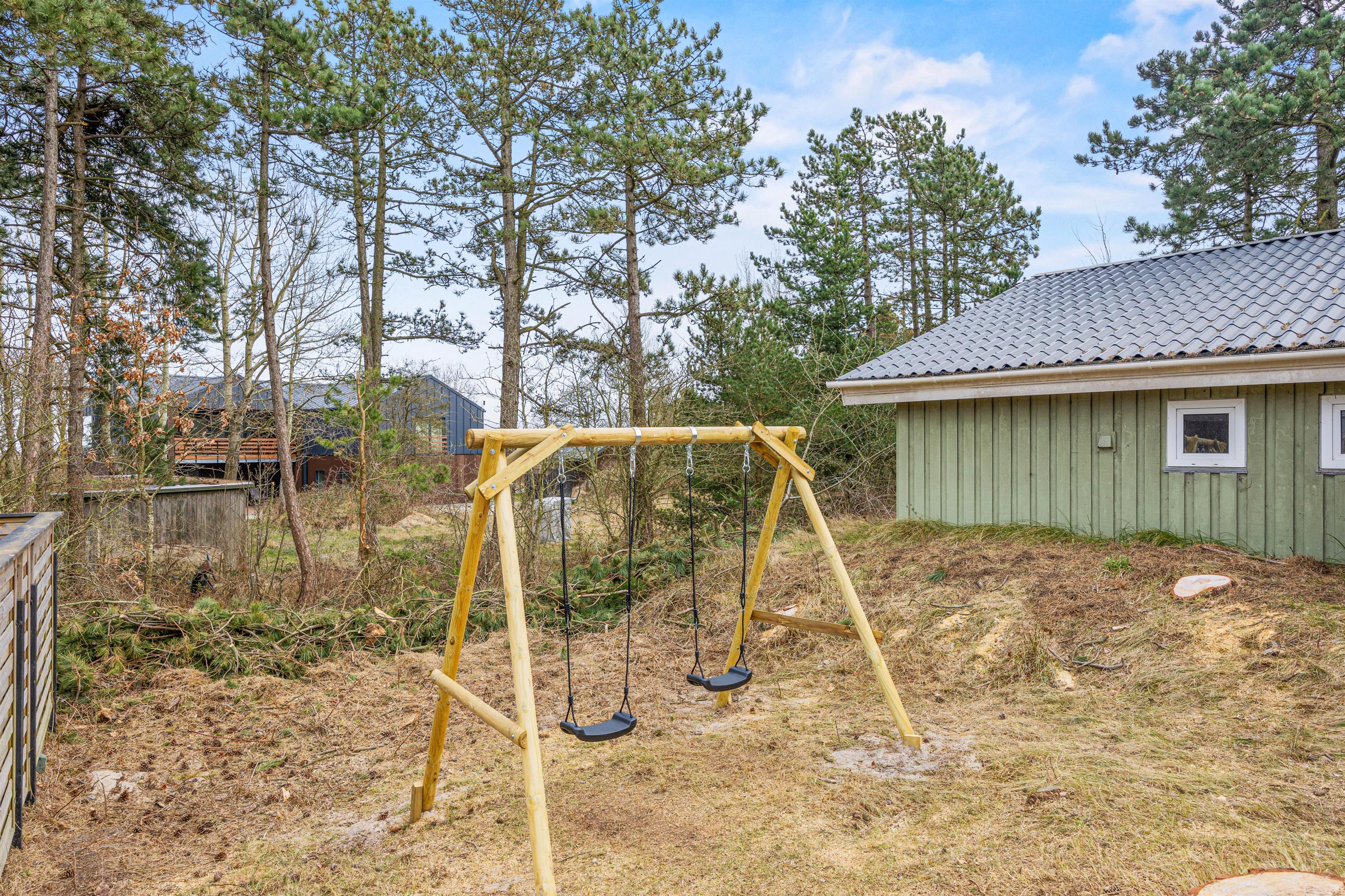 De varme sommerdage kan I nyde på terrassen. Her kan I nyde solen, slappe af og se børnene, som leger på gyngerne. Havemøblerne og grillen står klar, så I kan nyde en dejlig middag under åben himmel. Fuldend aftenen ved Vesterhavet, som I finder små 1500 meter herfra. Her kan I gå lange ture, samle skaller eller hoppe i bølgen blå.