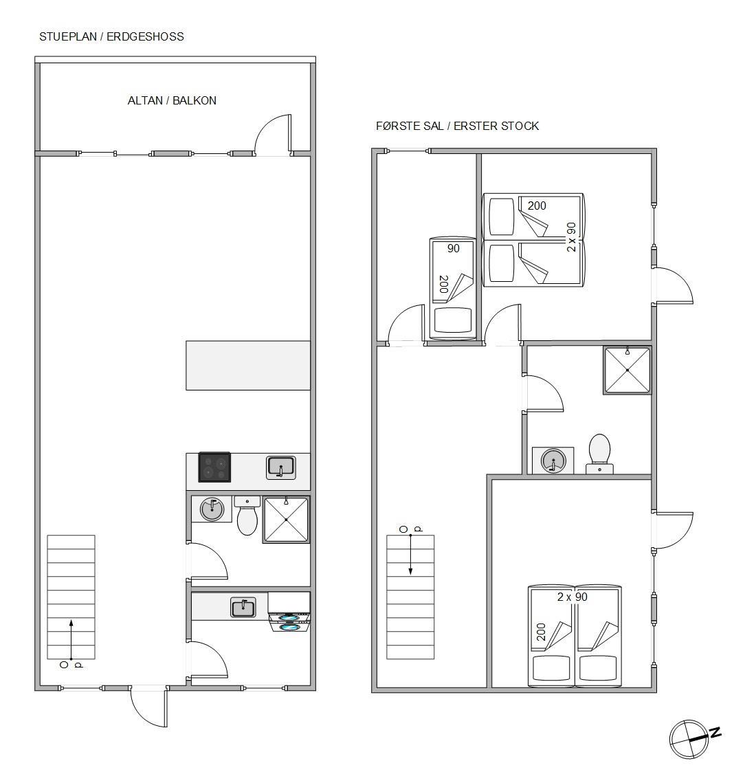 I stueplan findes et praktisk bryggers til overtøjet, et badeværelse samt et skønt køkkenalrum, der kombinerer køkkenet og stuen. Her kan I tilbringe tid sammen med madlavning, leg og afslapning med gode brætspil eller bog. På de køligere dage kan I med fordel tænde for biopejsen, der skaber en hyggelig stemning. Fra stueetagen har I adgang til ferielejlighedens to terrasser, hvor man kan nyde sine feriemåltider.