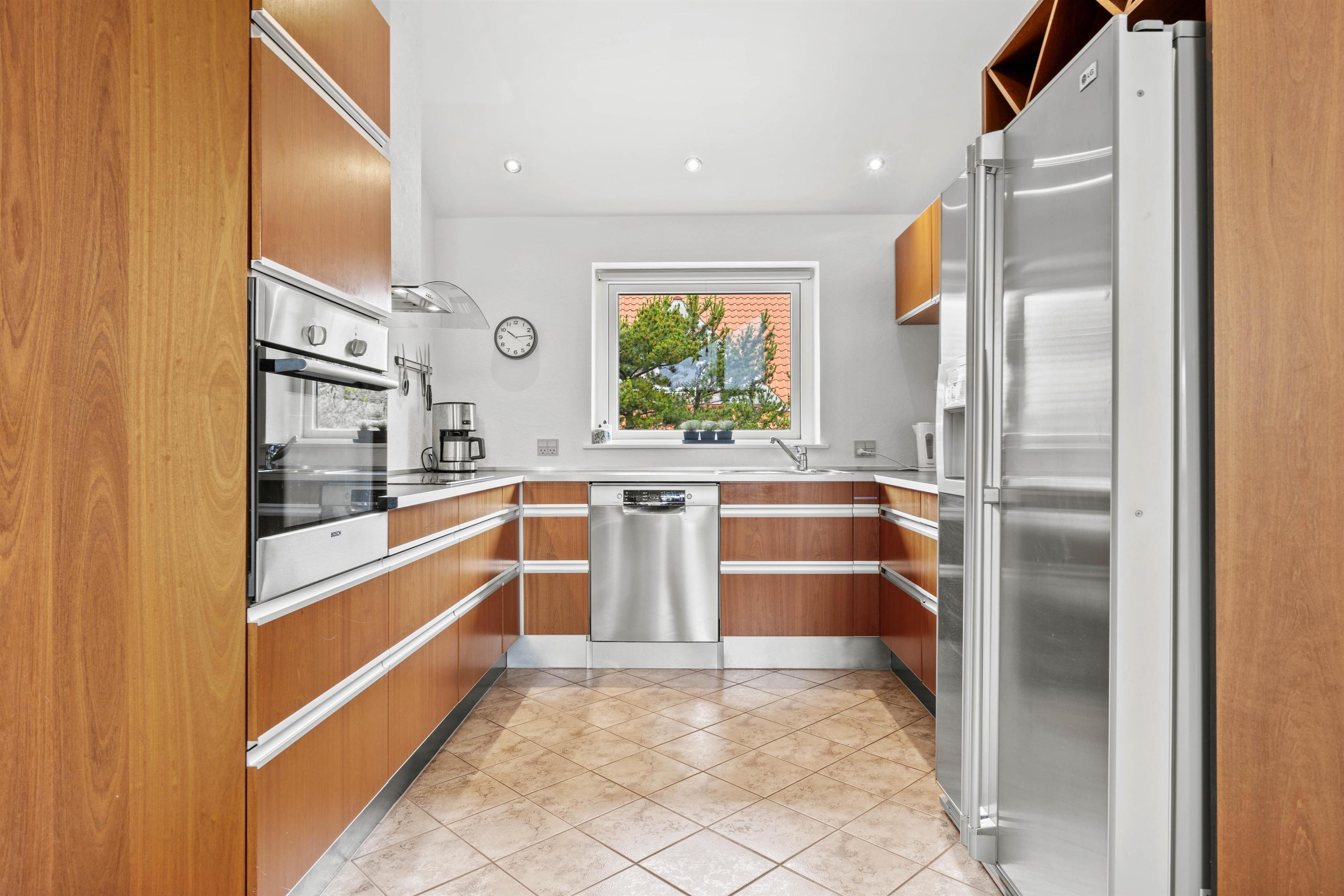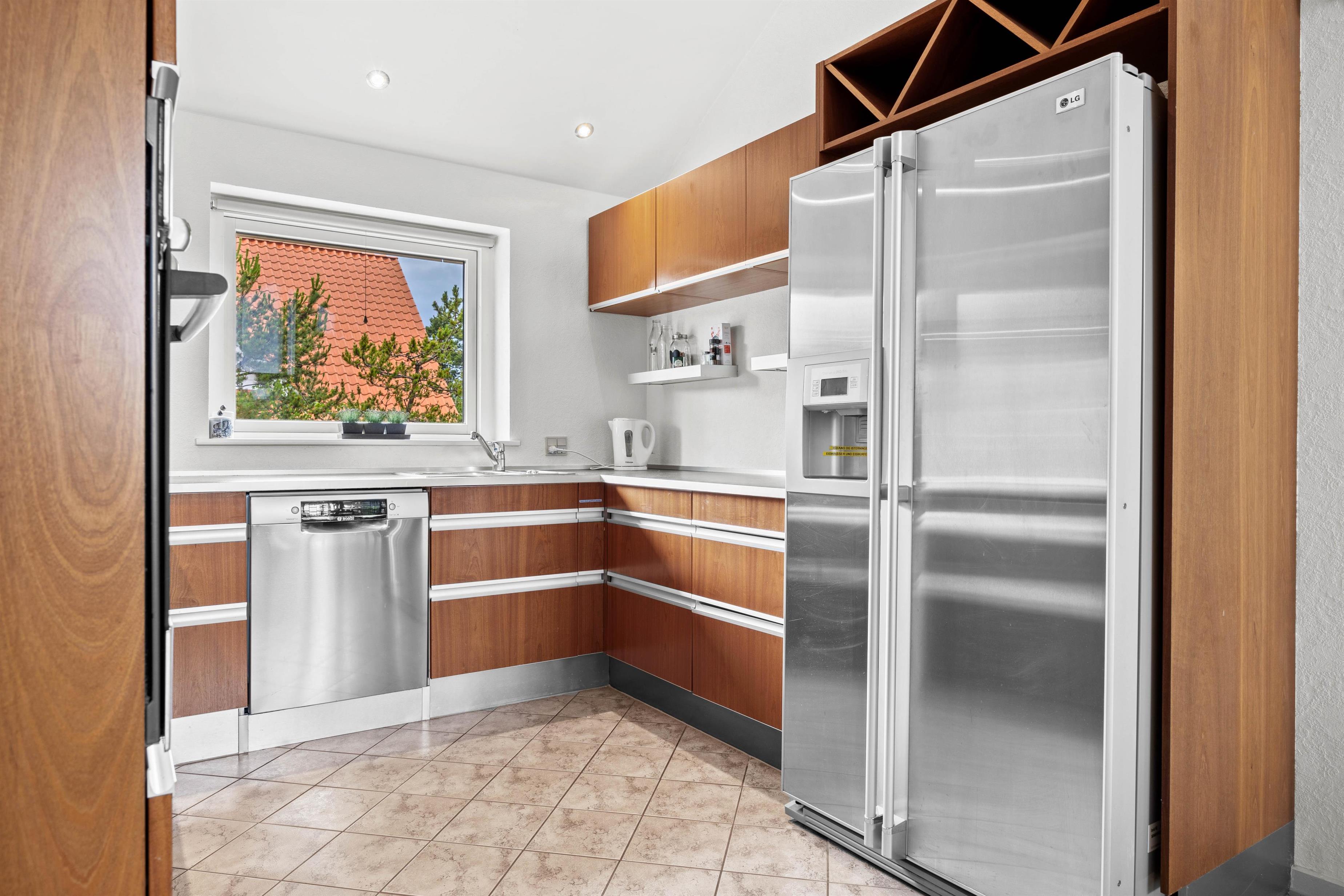De to badeværelser har begge gulvvarme, og på det ene har I adgang til saunaen. Tænd op i saunaen efter en lang gåtur ved havet få at blive varmet ordentlig igennem. Nyd varmen og glem hverdagen for en stund. Praktisk har feriehuset et stort bryggers, hvor der er god plads til overtøjet samt en vaskemaskine. I alle fire soveværelser har I god mulighed for opbevaring. To af soveværelserne er udstyret med dobbeltseng, mens de andre to soveværelser er udstyret med dobbeltsenge.
